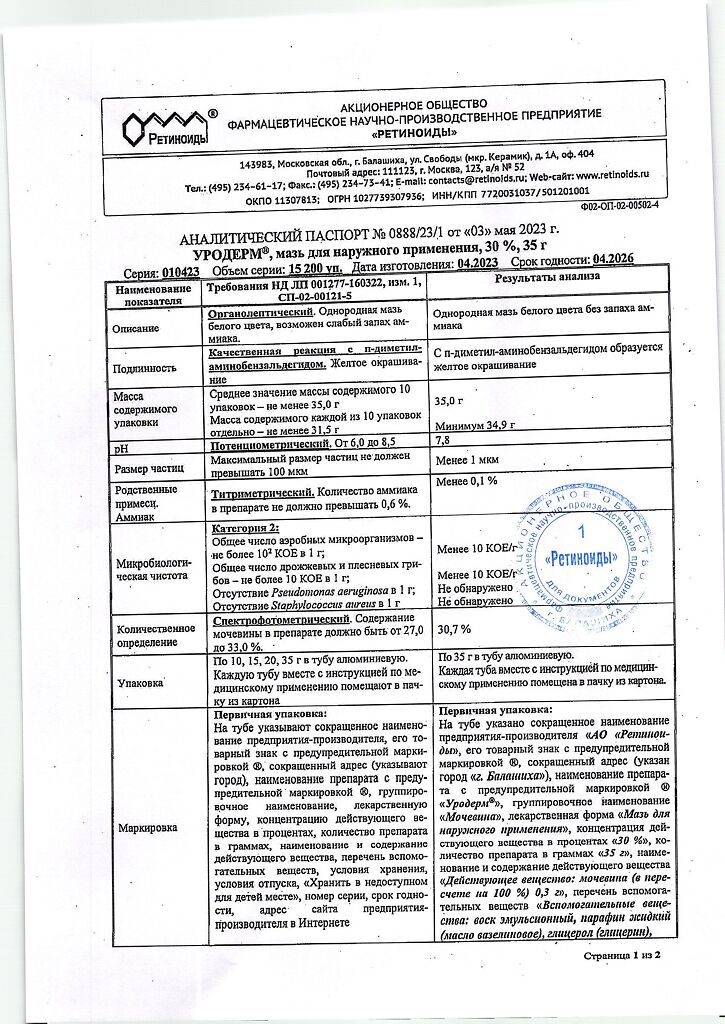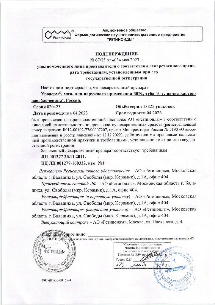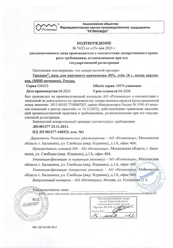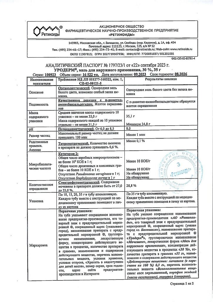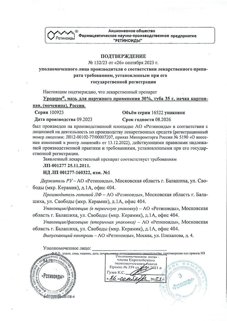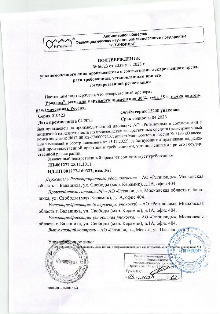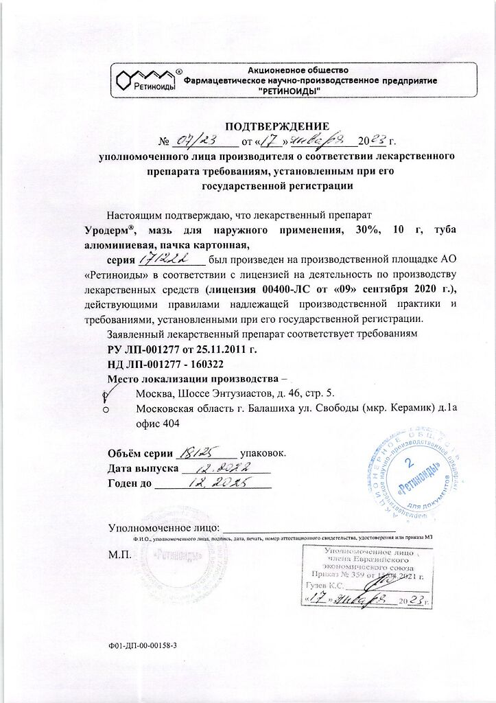 Фармдействие: Уродерм обладает кератолитическим действием, смягчает и увлажняет кожу, повышает ее эластичность.