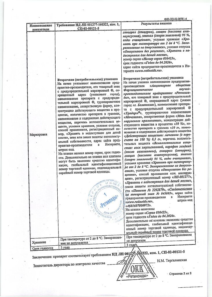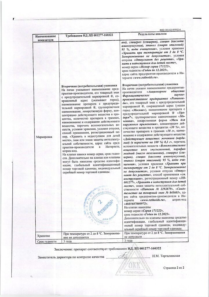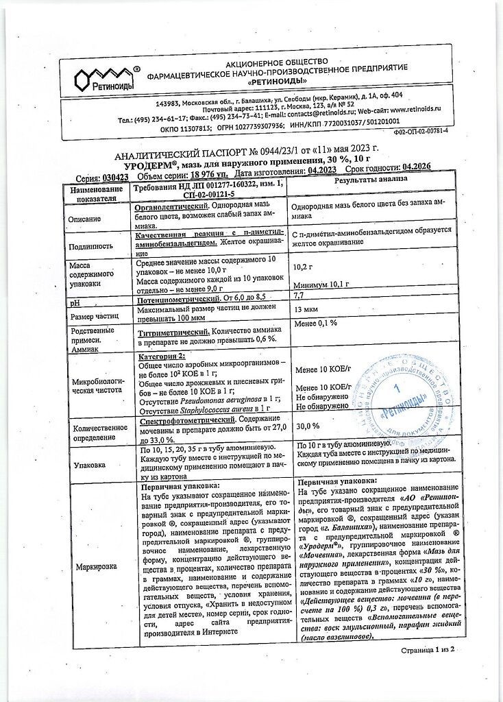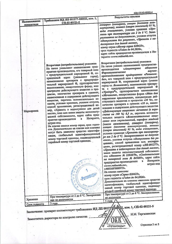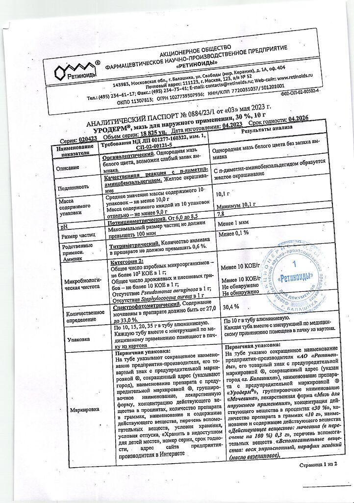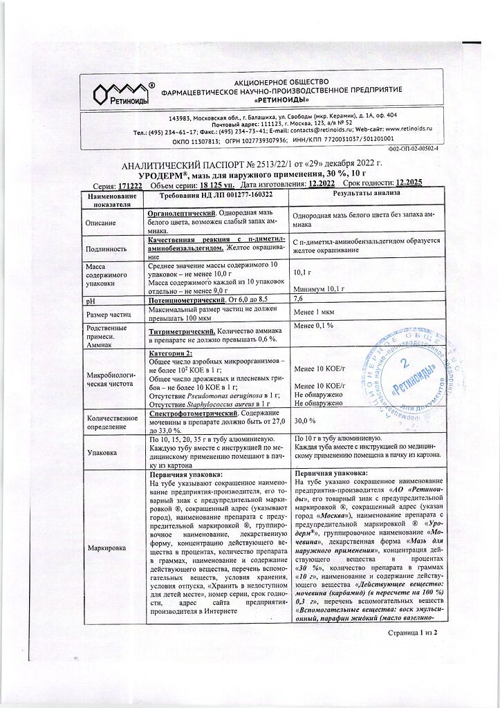 Фармдействие: Уродерм обладает кератолитическим действием, смягчает и увлажняет кожу, повышает ее эластичность.