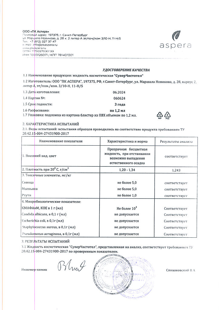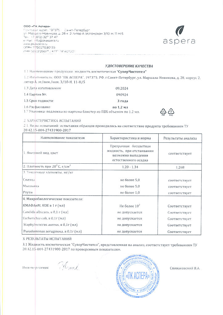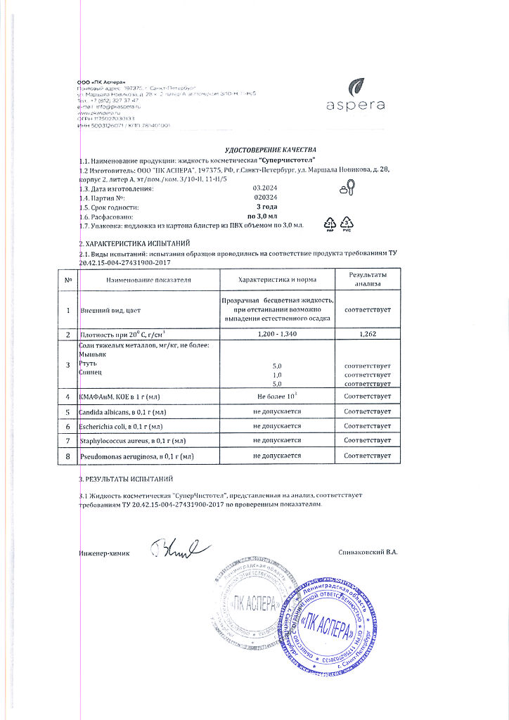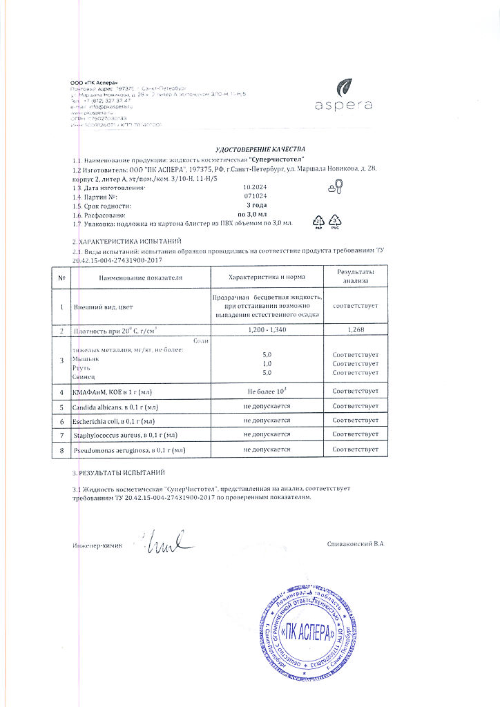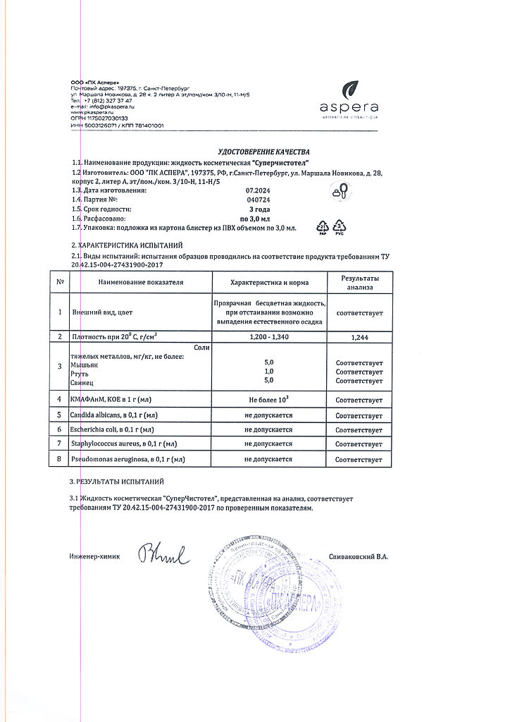 Косметическая жидкость.