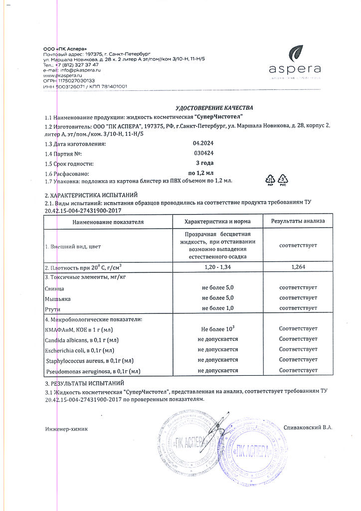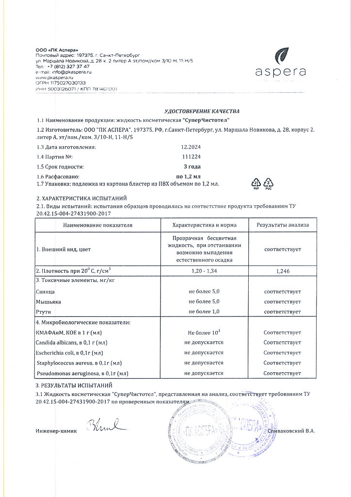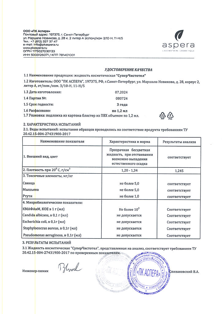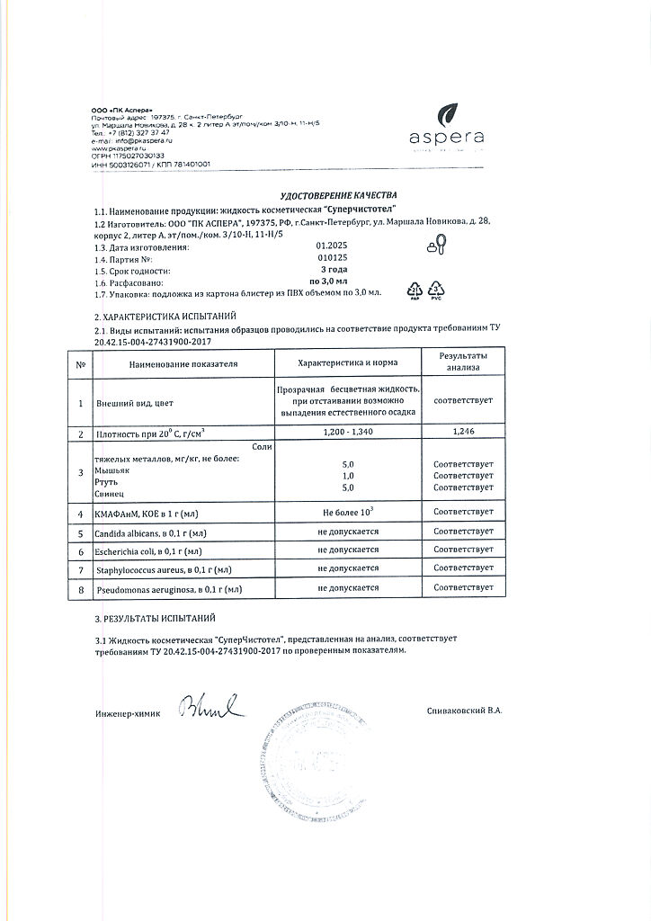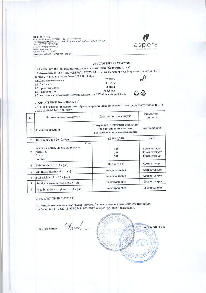 Косметическая жидкость.