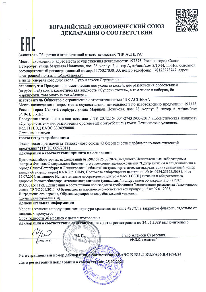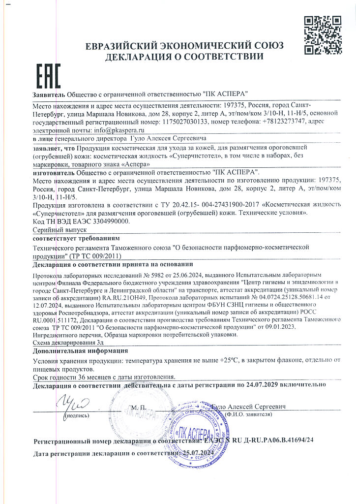 Не применять жидкость для ухода за кожей лица. Не допускать попадания жидкости на здоровые участки и слизистые оболочки. При попадании жидкости на здоровую кожу рекомендовано промывание пораженного участка струей воды в течение 10-15 минут, затем сделать примочку 5% раствором лимонной кислоты.