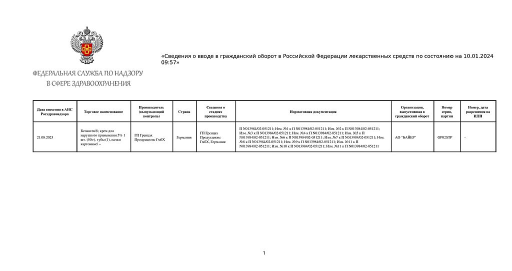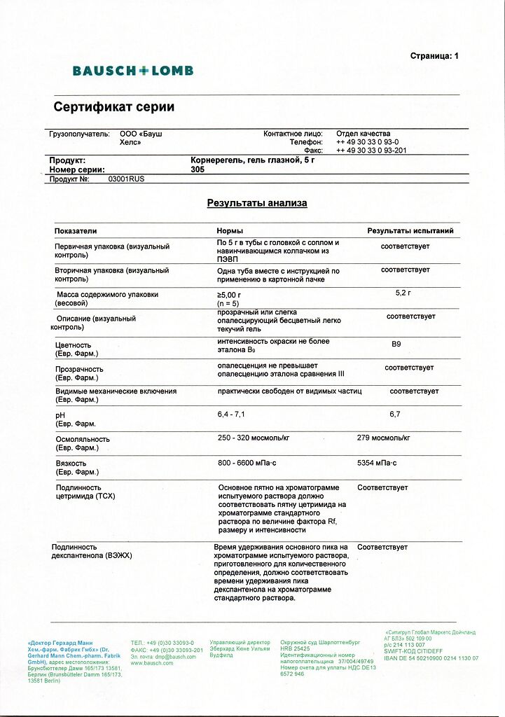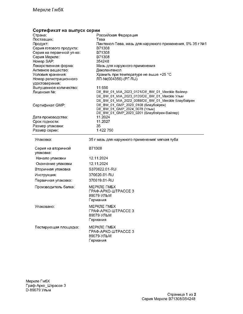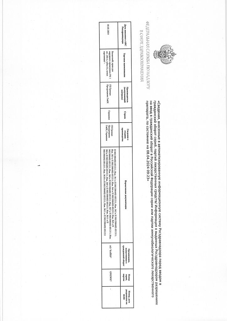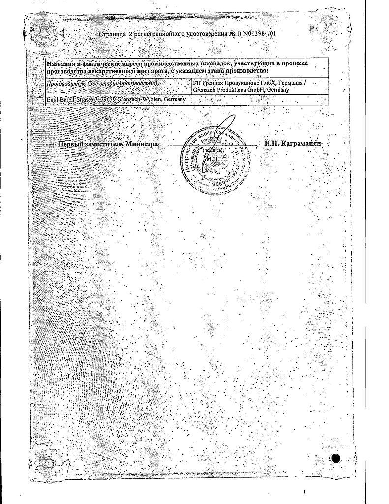 Производитель: ГП Гренцах Продукционс, Германия