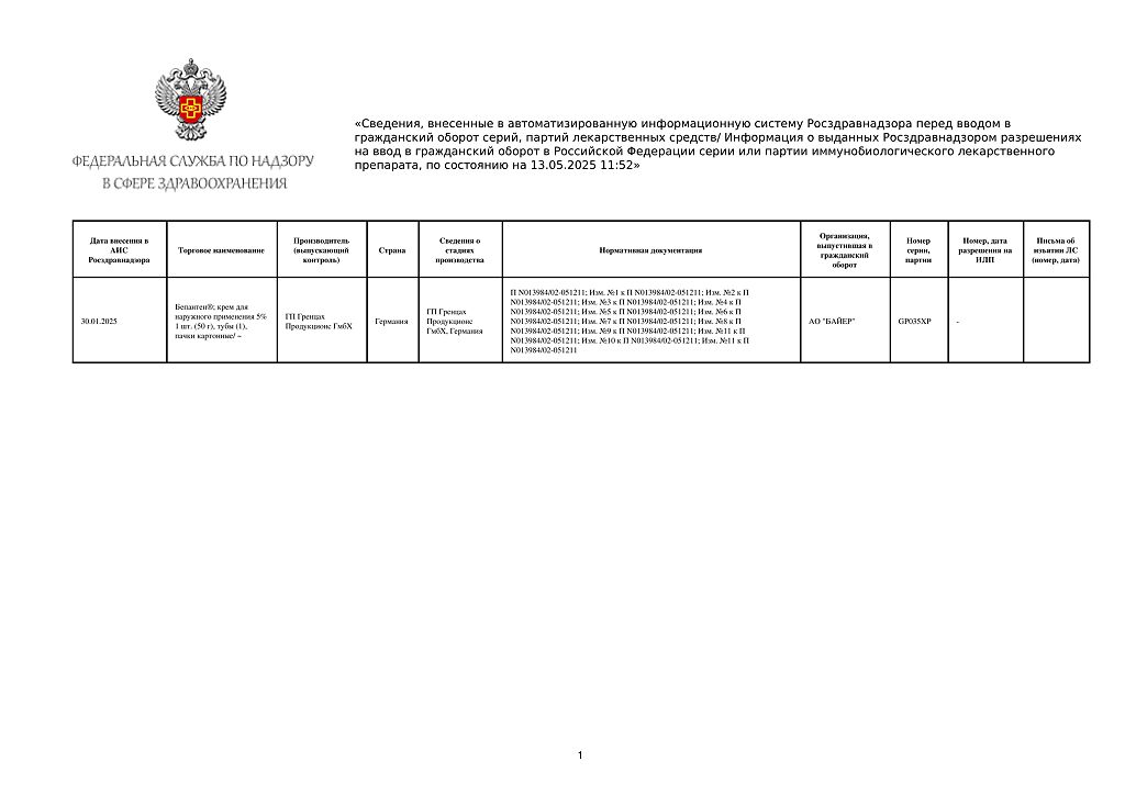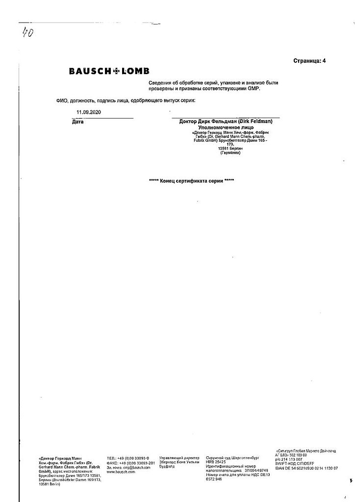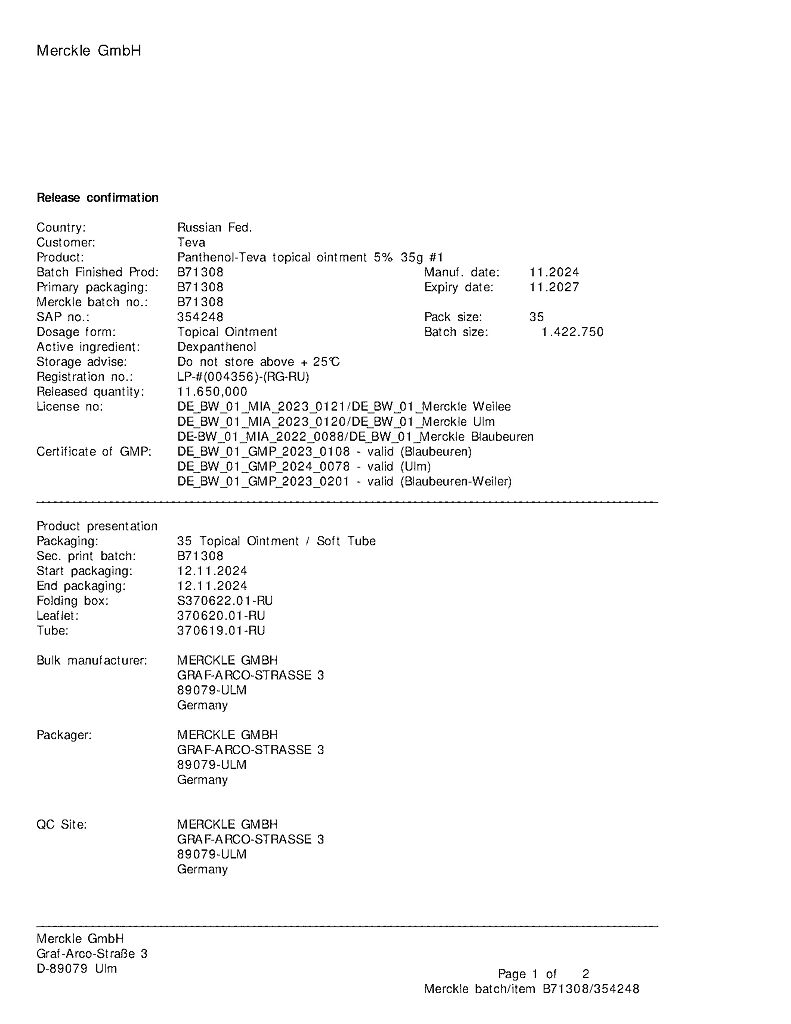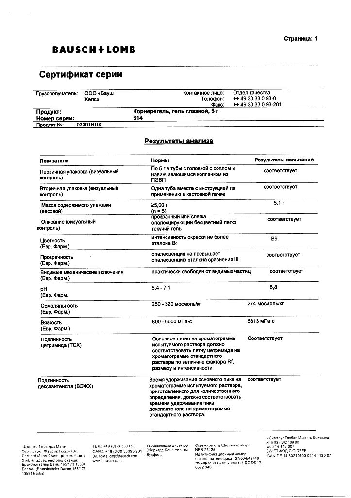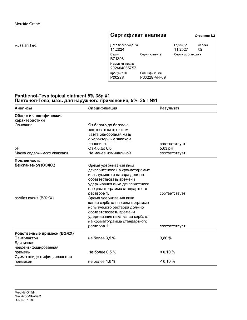 Производитель: ГП Гренцах Продукционс, Германия