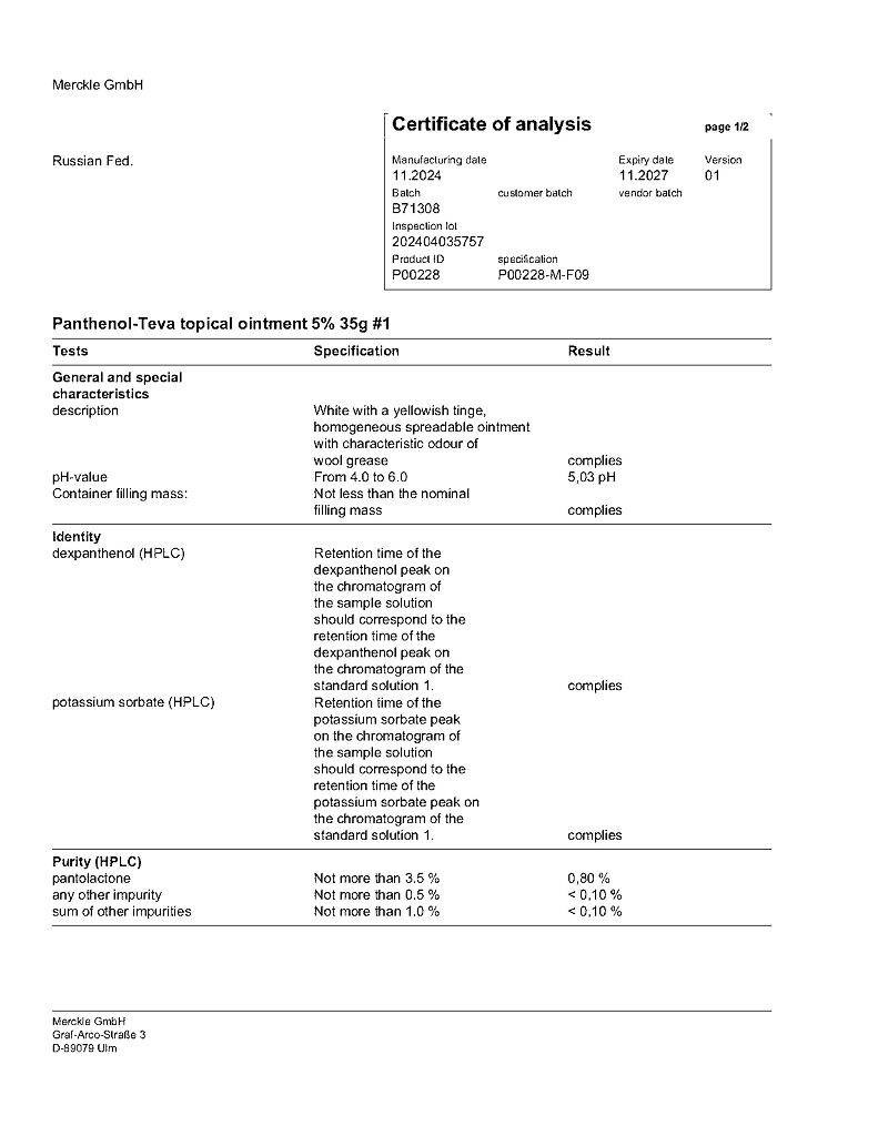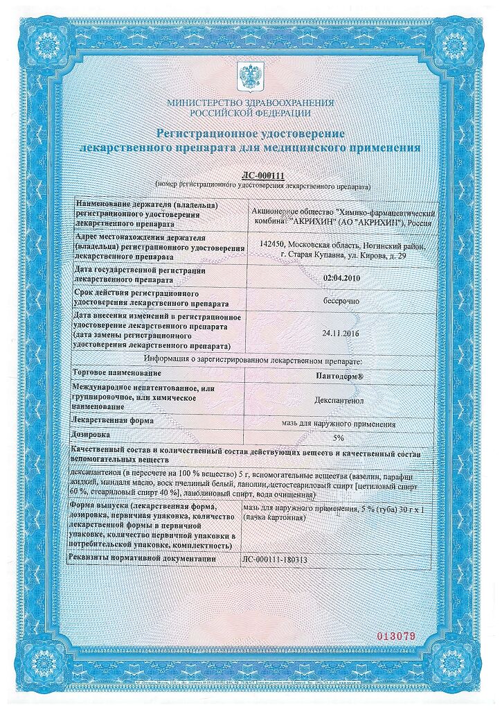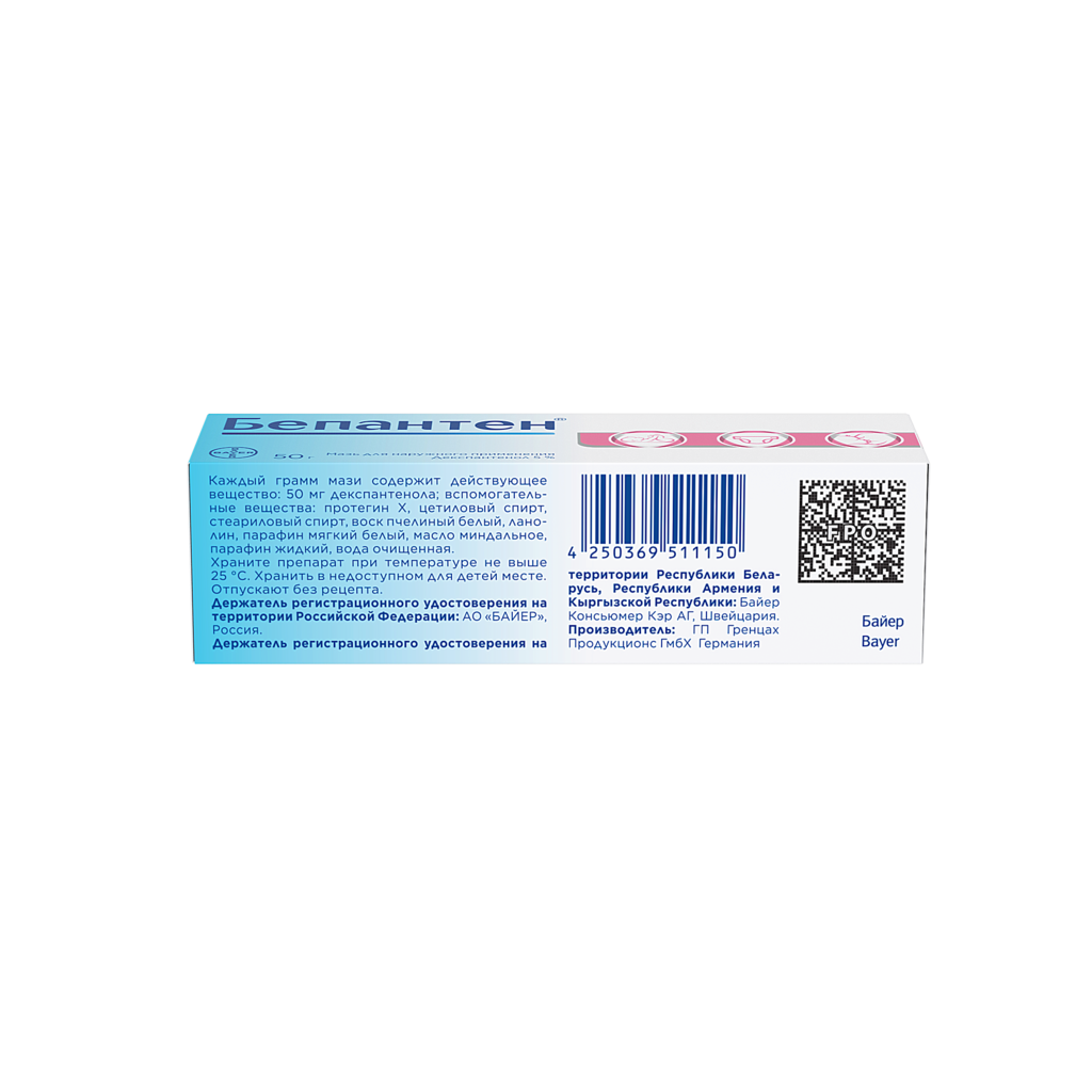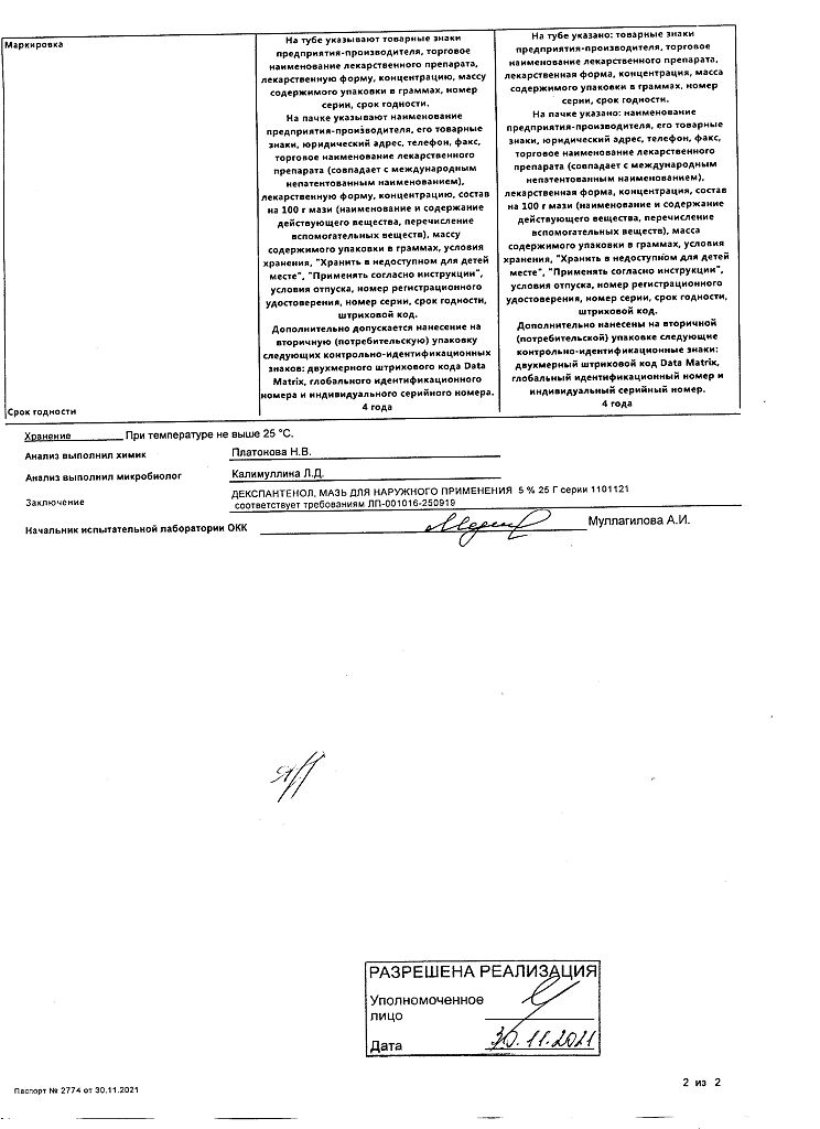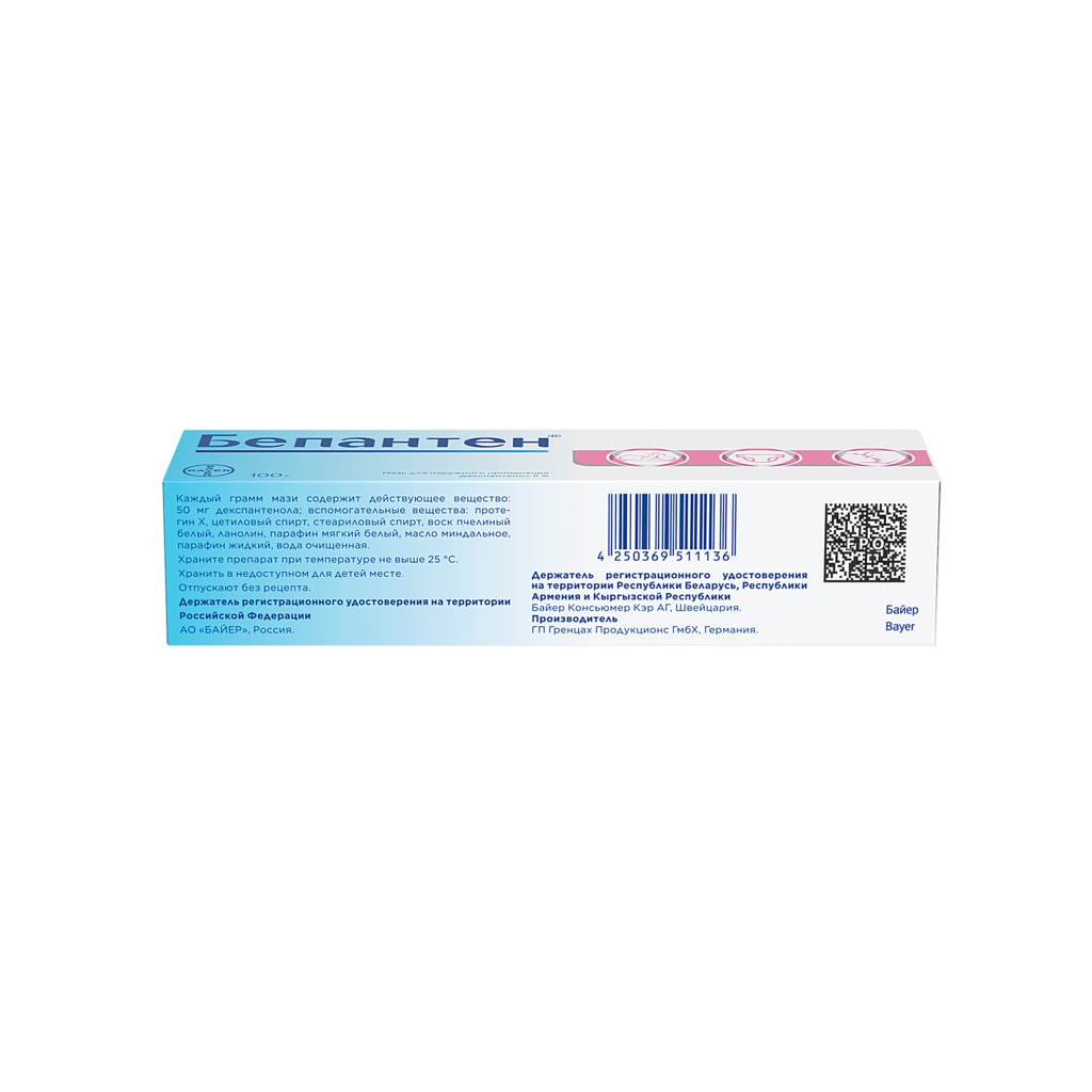действующее вещество :декспантенол – 5,0 г.