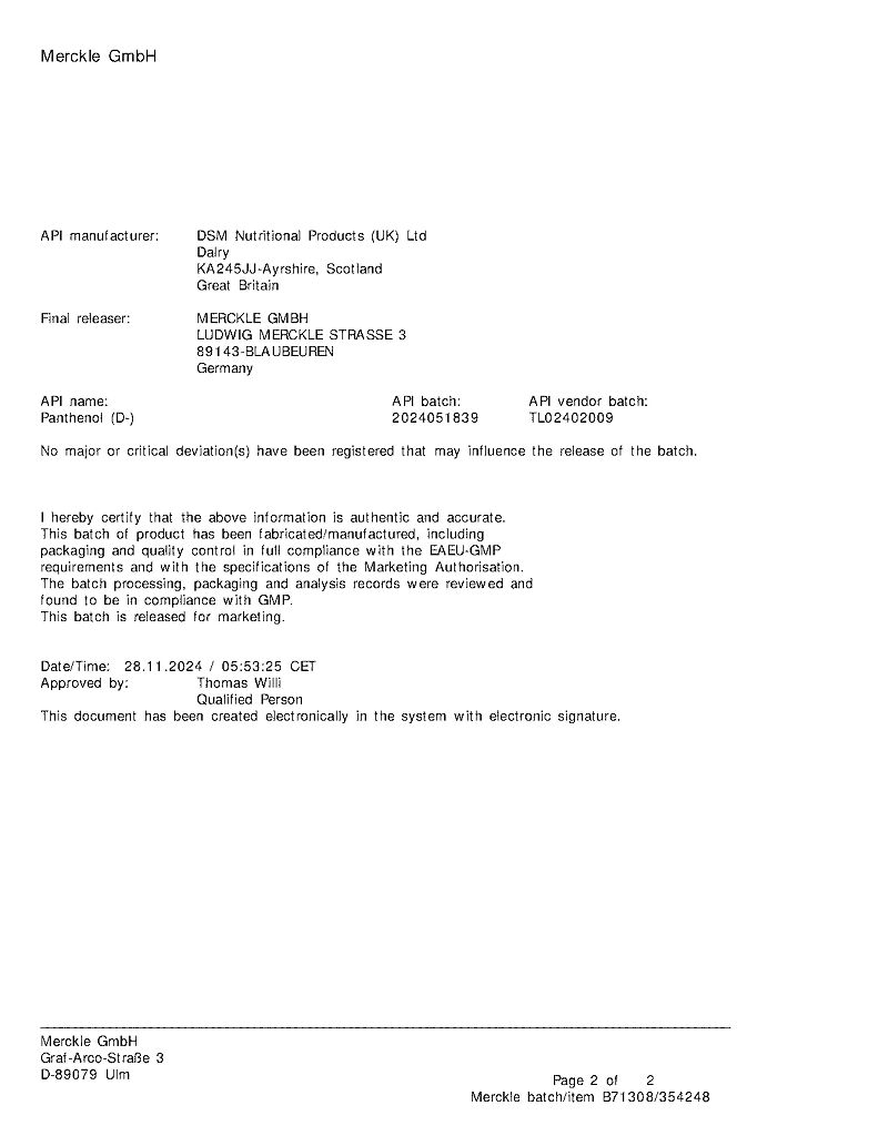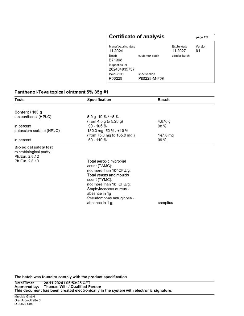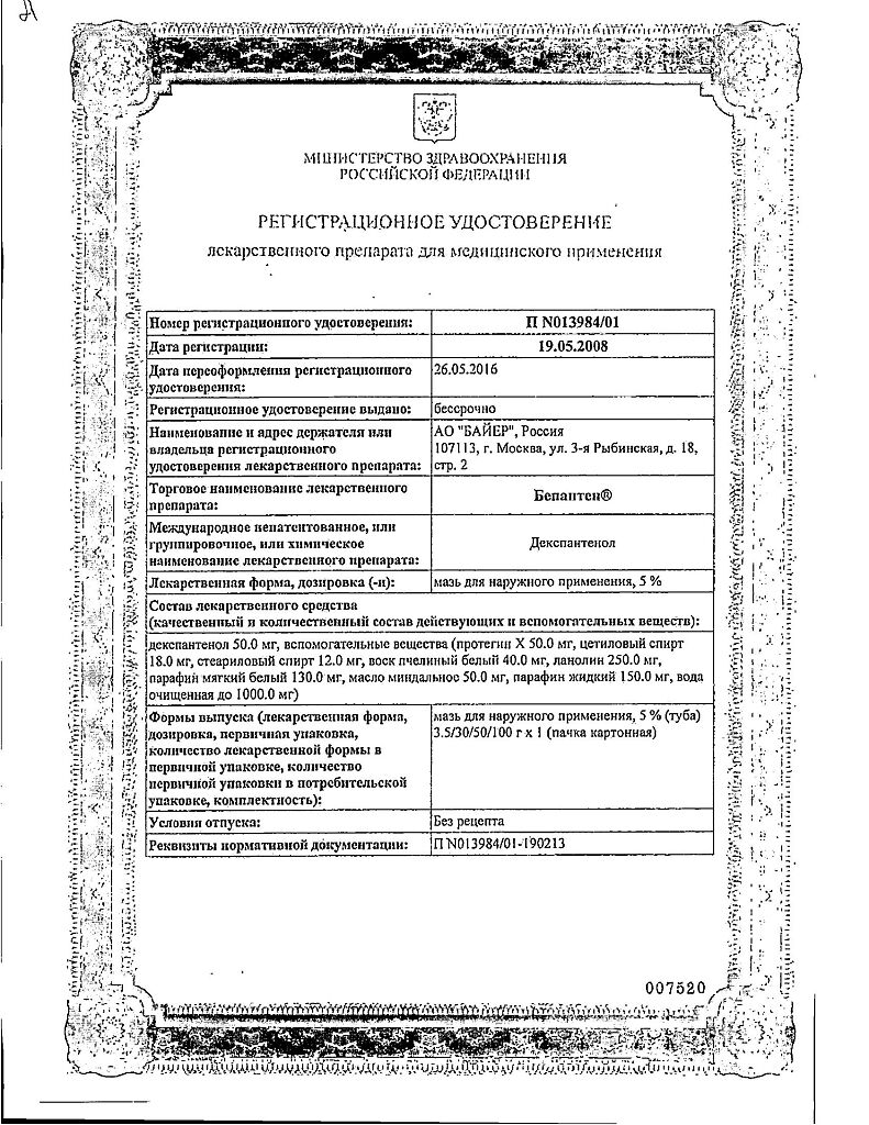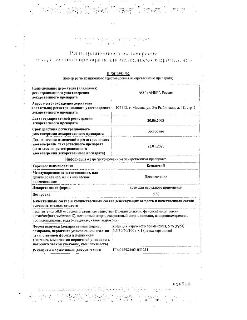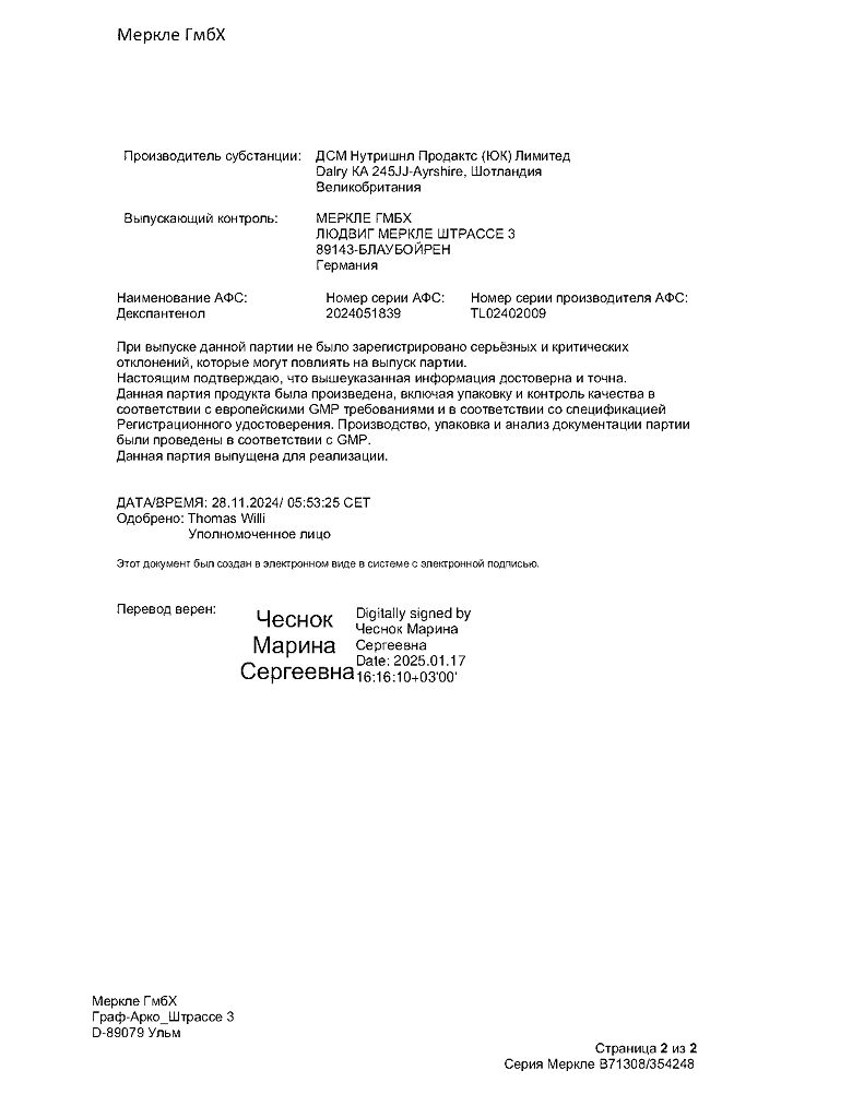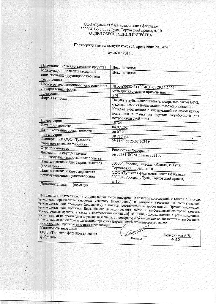 действующее вещество :декспантенол – 5,0 г.