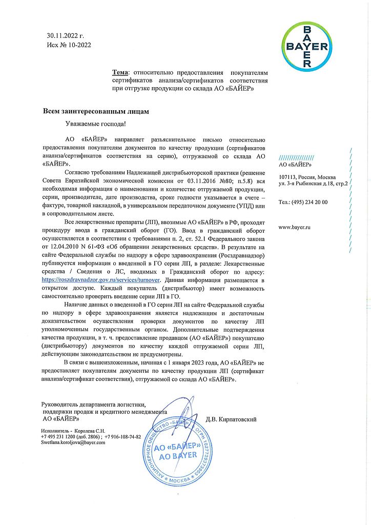 Страница носит информационный характер о наличии препаратов. Перед назначением и применением проконсультируйтесь с врачом