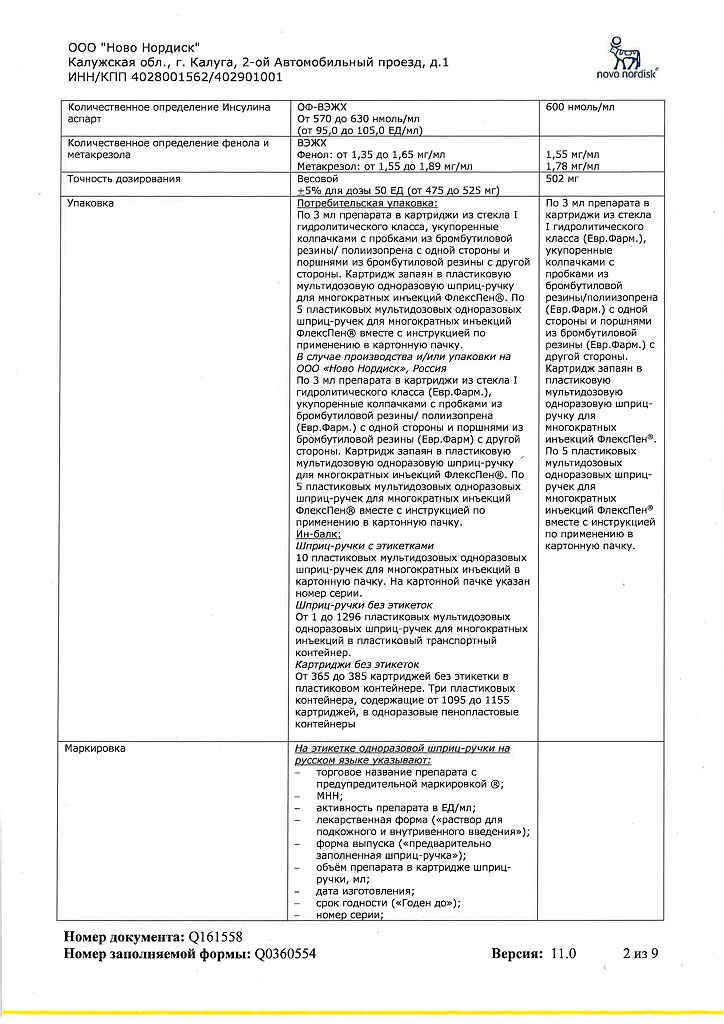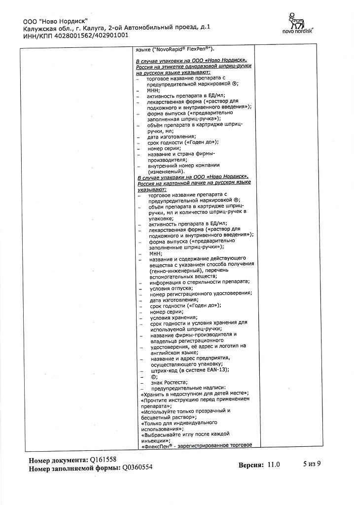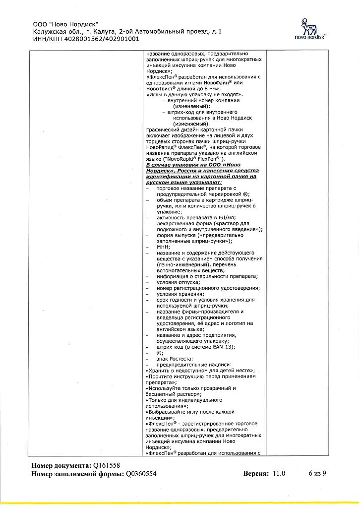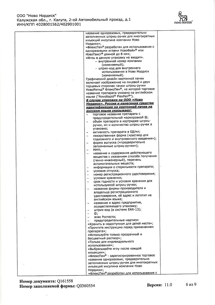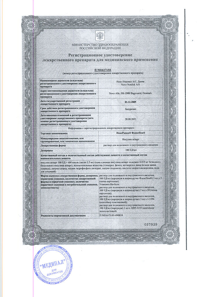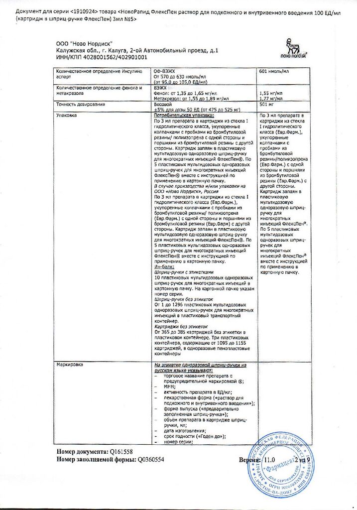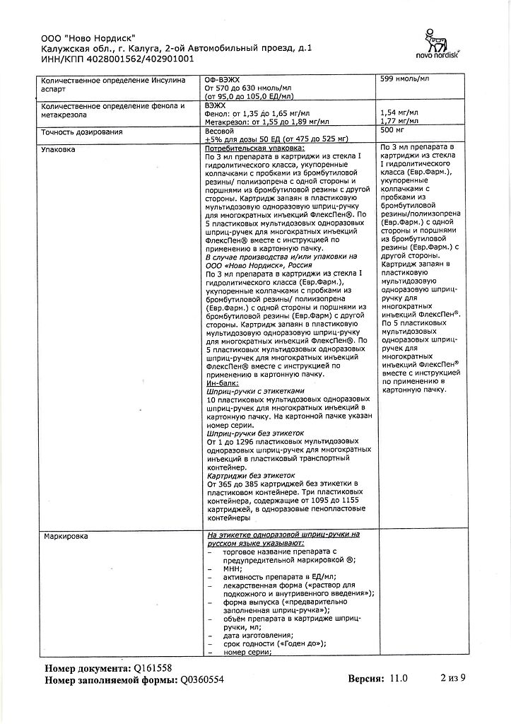 Несовместимость. Некоторые ЛС, например содержащие тиоловую или сульфитную группы, при добавлении к препарату НовоРапид® Пенфилл® могут вызывать разрушение инсулина аспарт. Препарат НовоРапид® Пенфилл® не следует смешивать с другими ЛС. Исключение составляют изофан-инсулин и растворы для инфузий