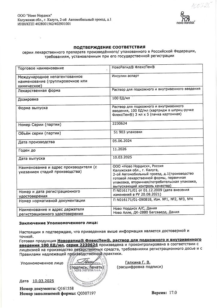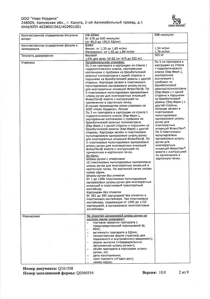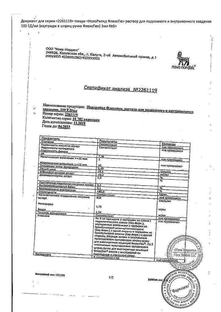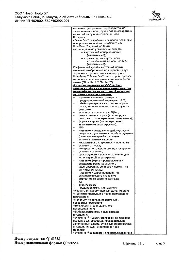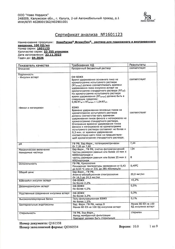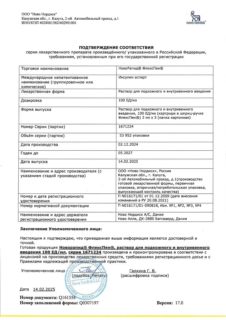 Несовместимость. Некоторые ЛС, например содержащие тиоловую или сульфитную группы, при добавлении к препарату НовоРапид® Пенфилл® могут вызывать разрушение инсулина аспарт. Препарат НовоРапид® Пенфилл® не следует смешивать с другими ЛС. Исключение составляют изофан-инсулин и растворы для инфузий