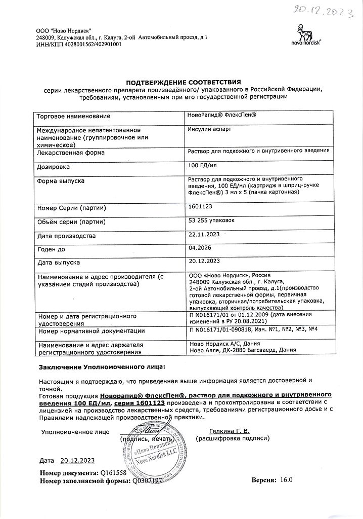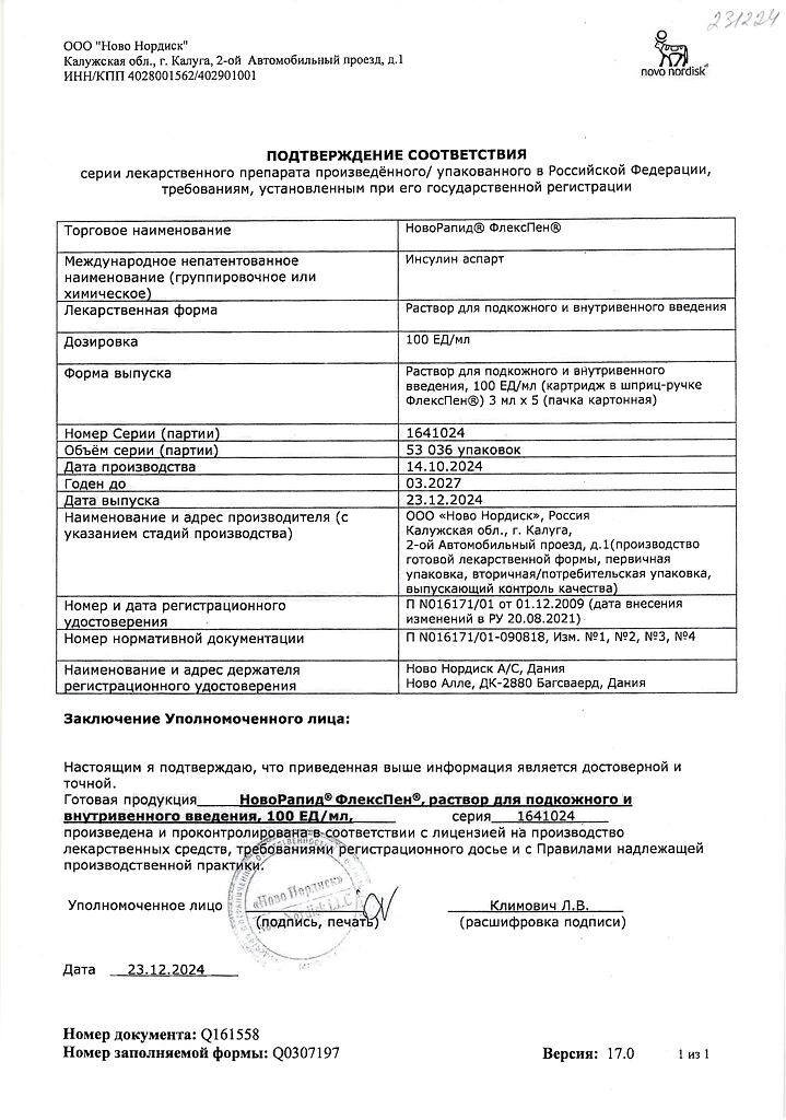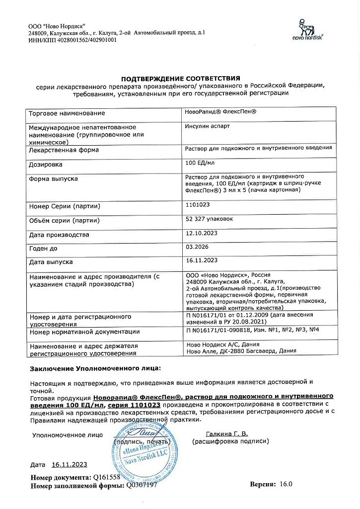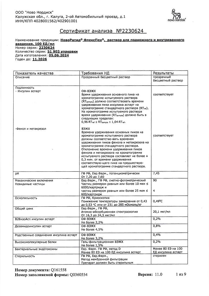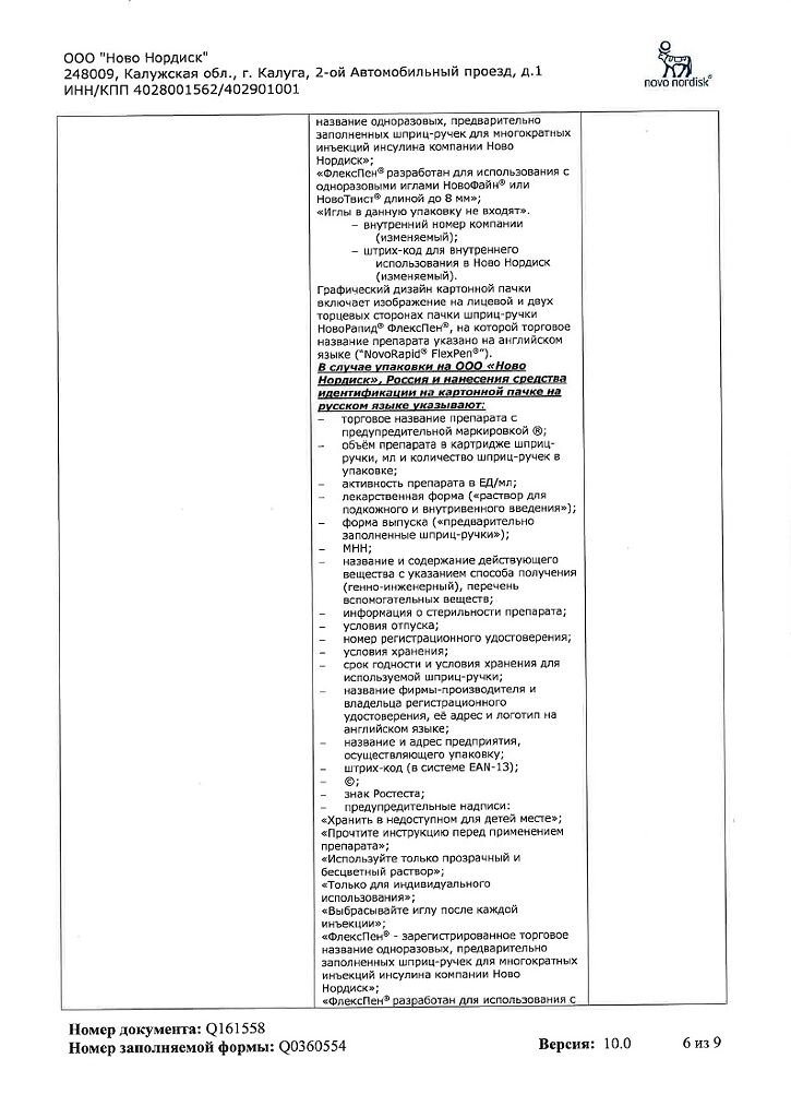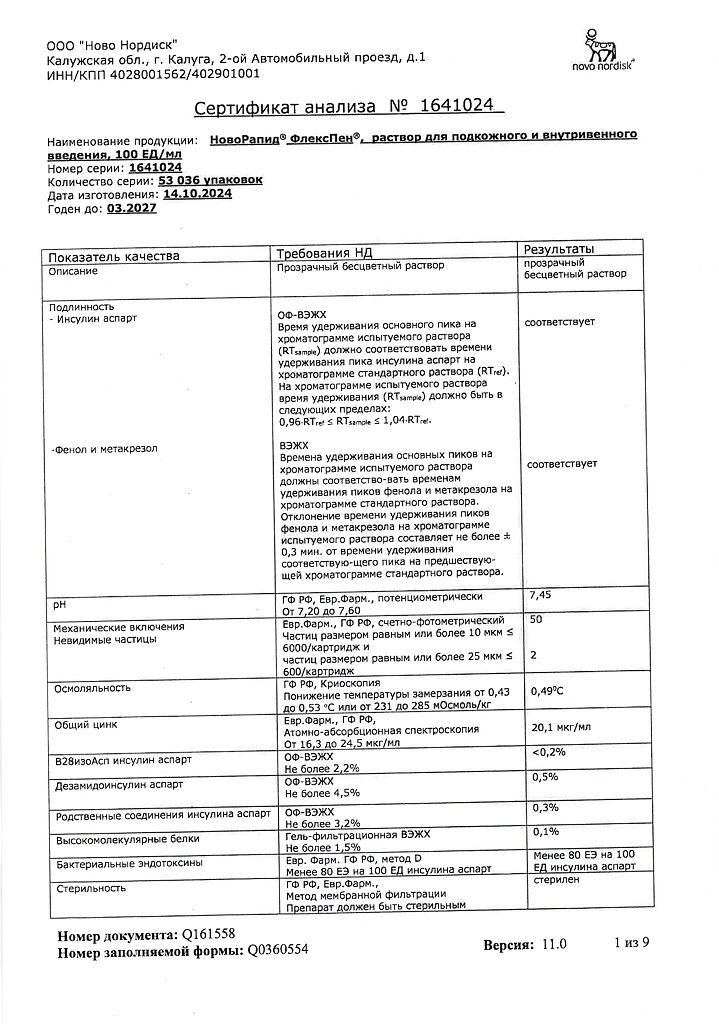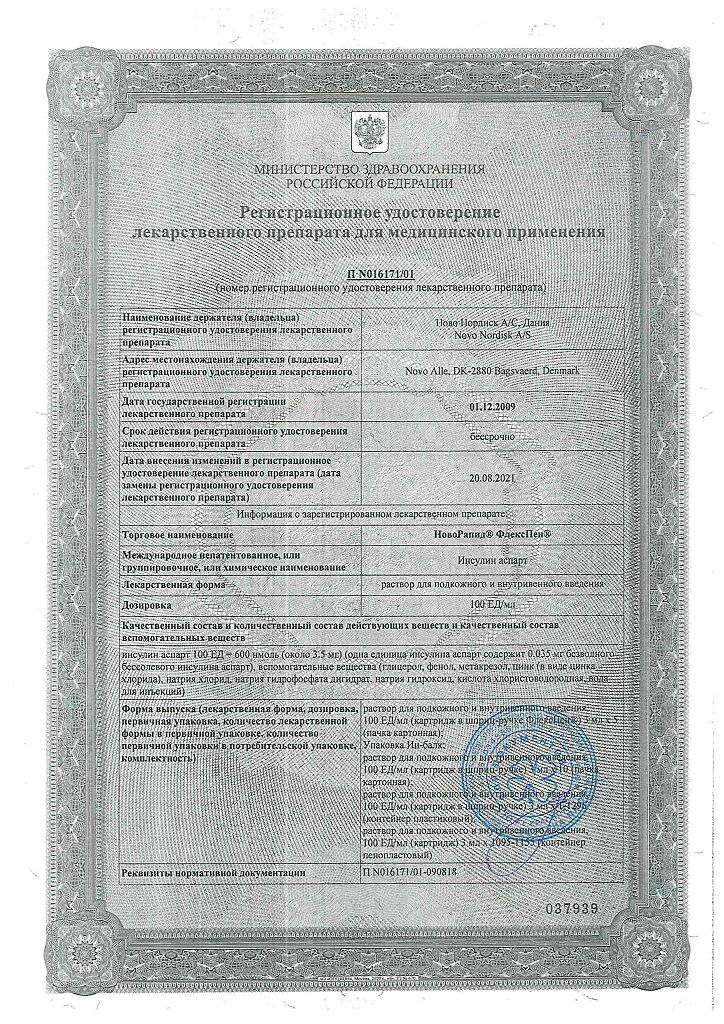 Несовместимость. Некоторые ЛС, например содержащие тиоловую или сульфитную группы, при добавлении к препарату НовоРапид® Пенфилл® могут вызывать разрушение инсулина аспарт. Препарат НовоРапид® Пенфилл® не следует смешивать с другими ЛС. Исключение составляют изофан-инсулин и растворы для инфузий