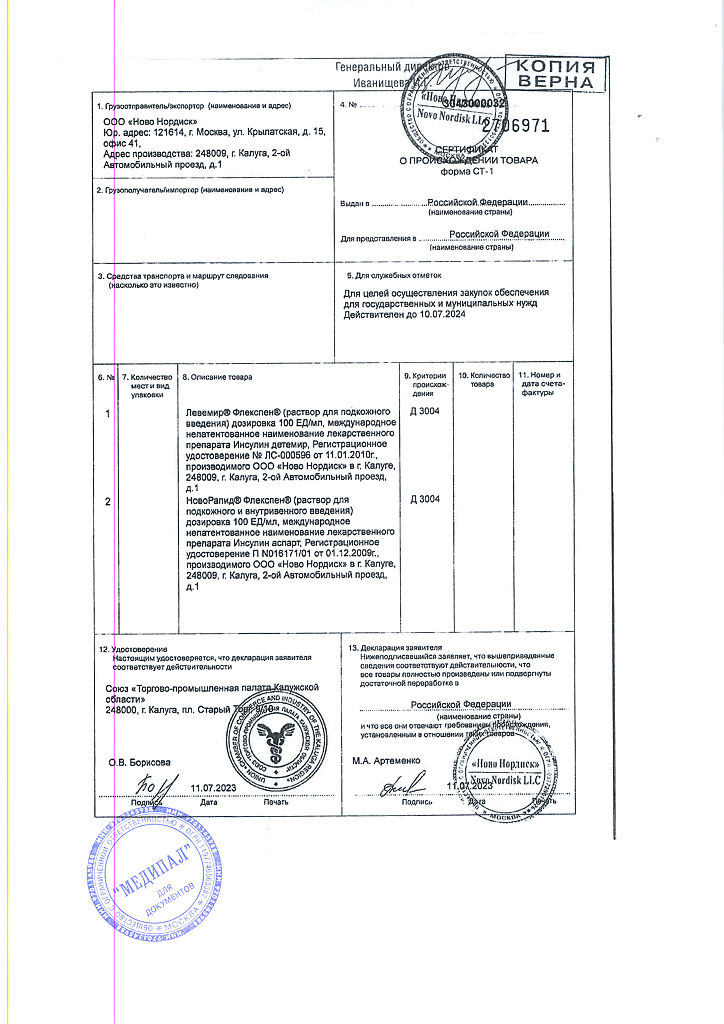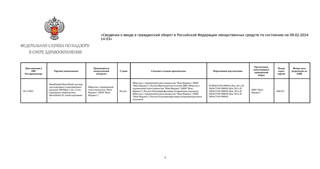 Производитель: Ново Нордиск А/С, Дания