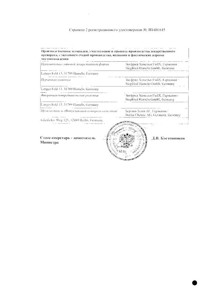 Производитель: Зигфрид Хамельн ГмбХ, Германия