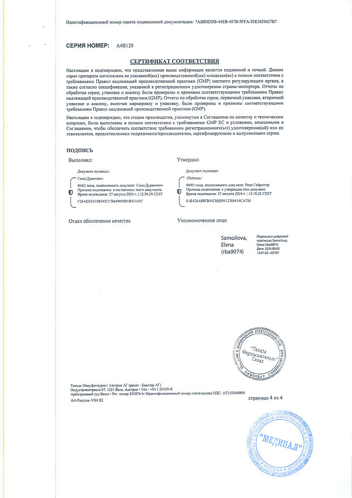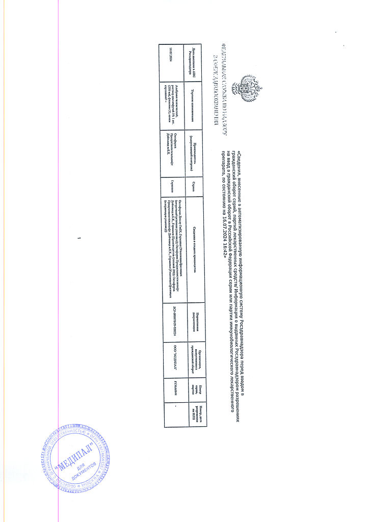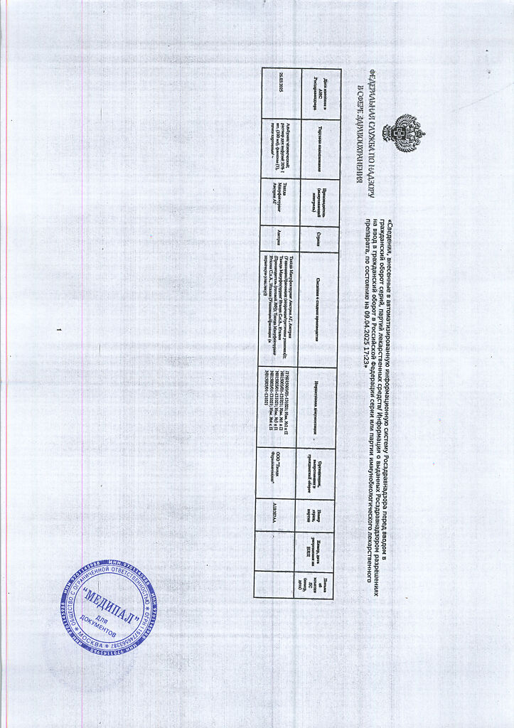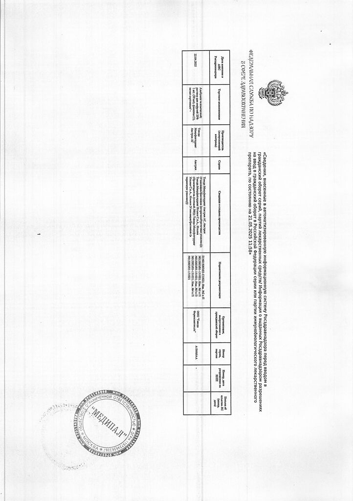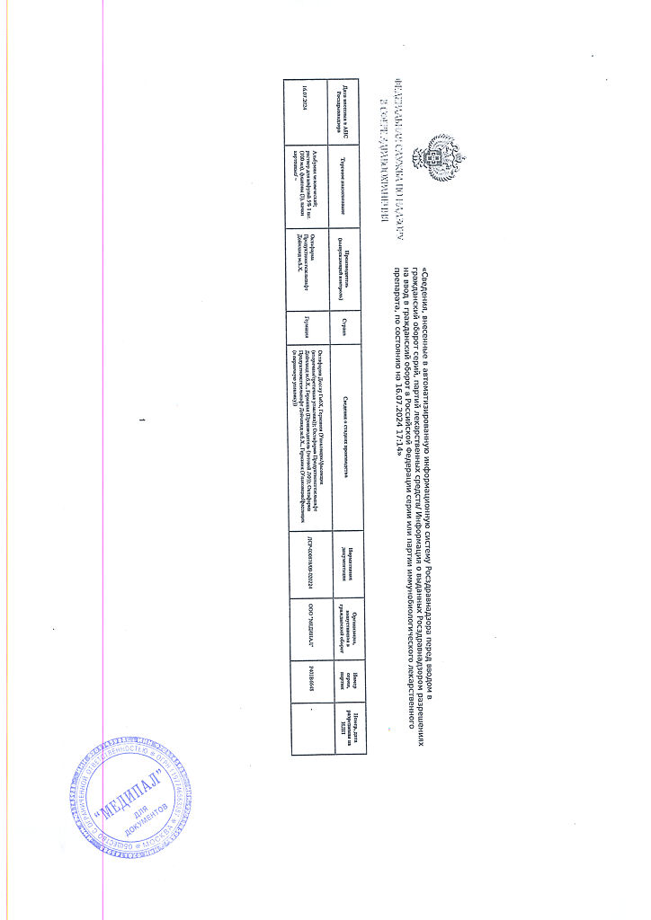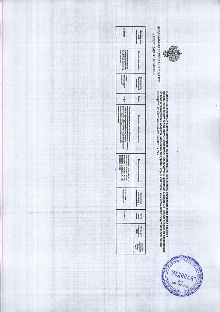 При каждом введении пациенту препарата рекомендуется регистрировать название препарата и номер серии в истории болезни или медицинской карте пациента с тем, чтобы можно было проследить связь состояния пациента с введением препарата конкретной серии.