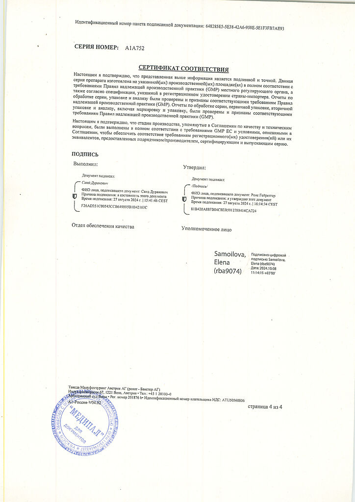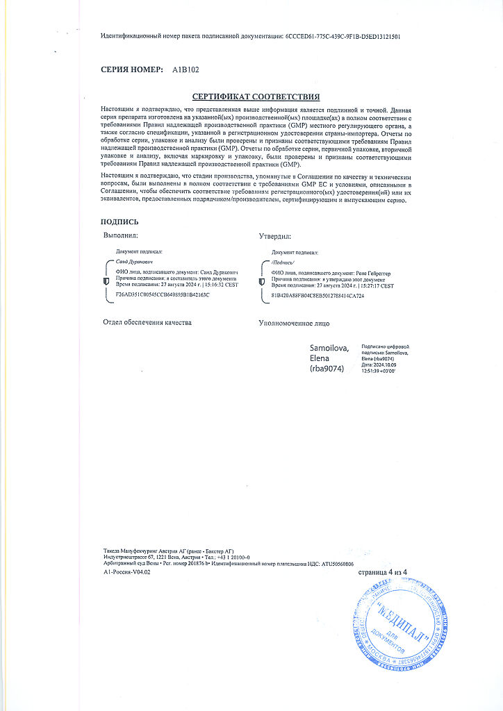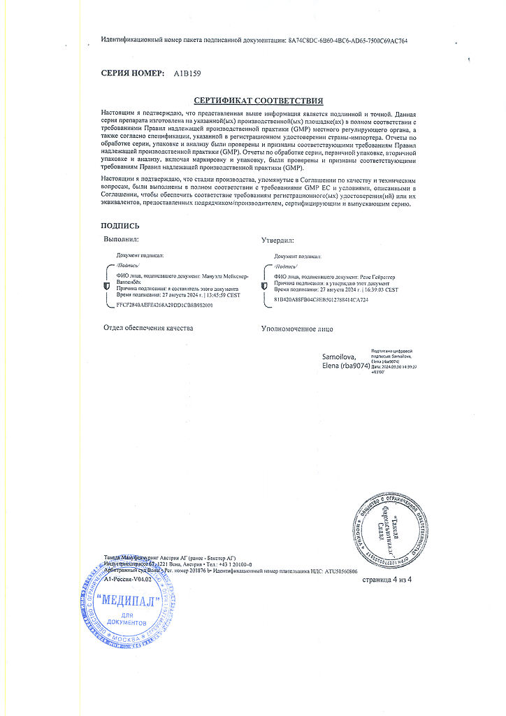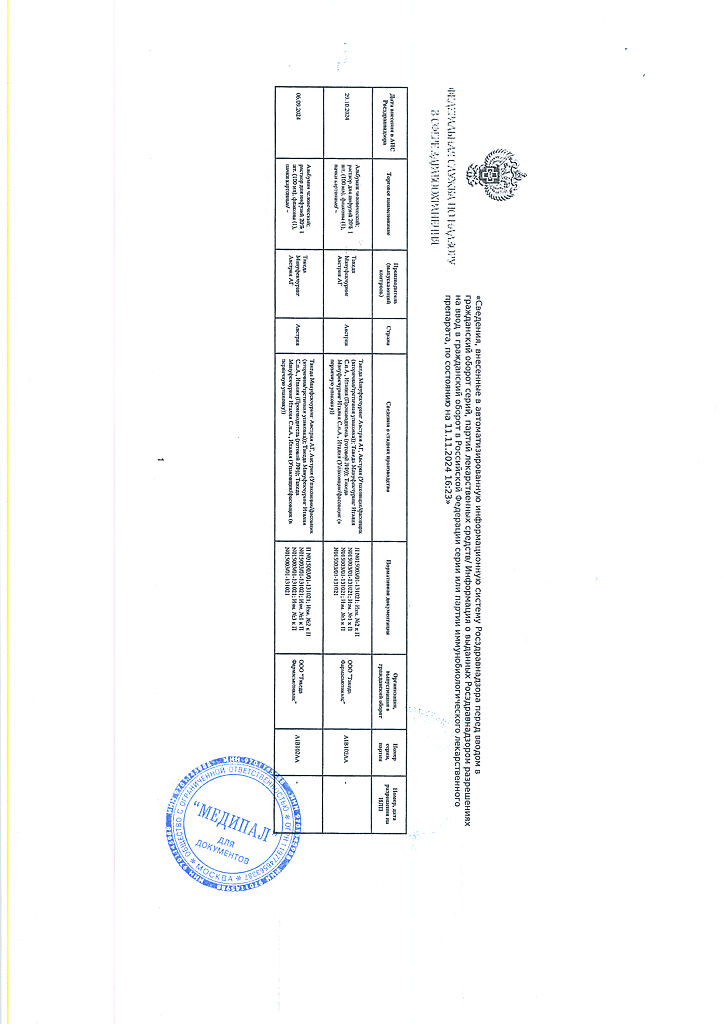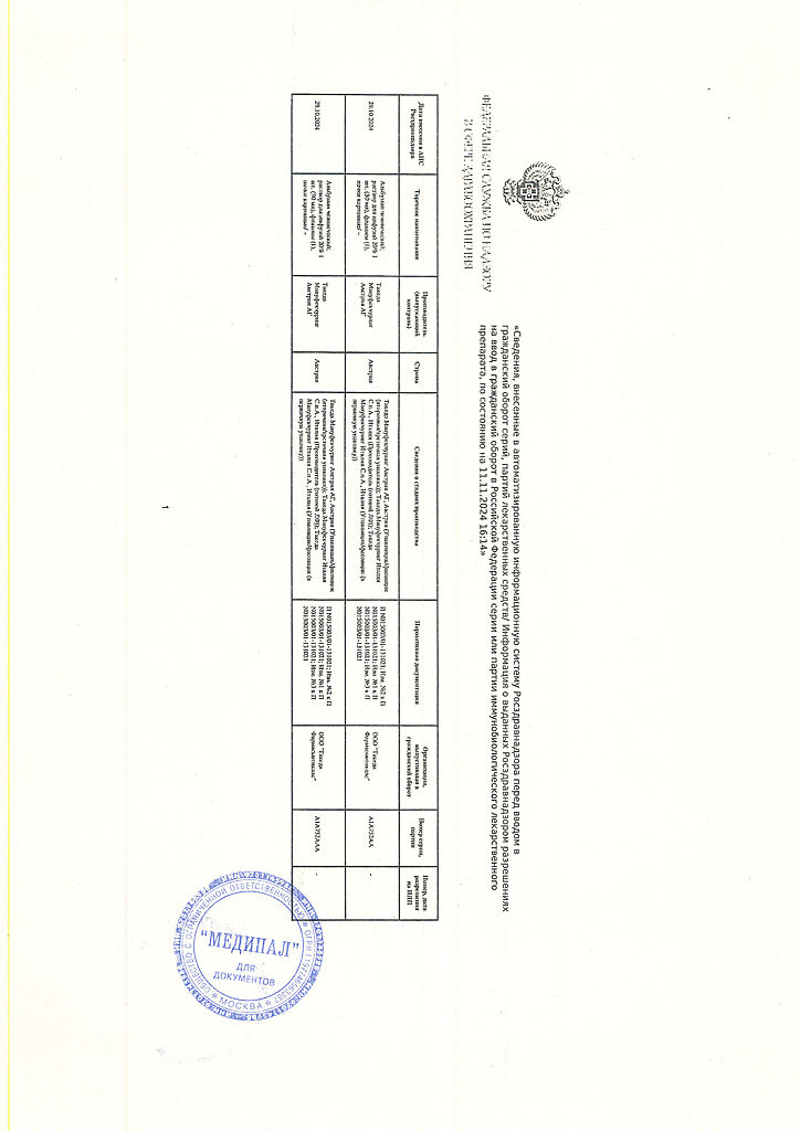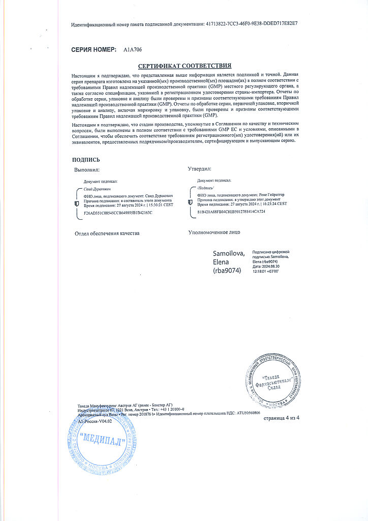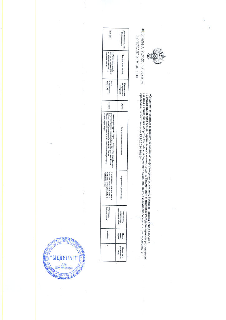 При каждом введении пациенту препарата рекомендуется регистрировать название препарата и номер серии в истории болезни или медицинской карте пациента с тем, чтобы можно было проследить связь состояния пациента с введением препарата конкретной серии.
