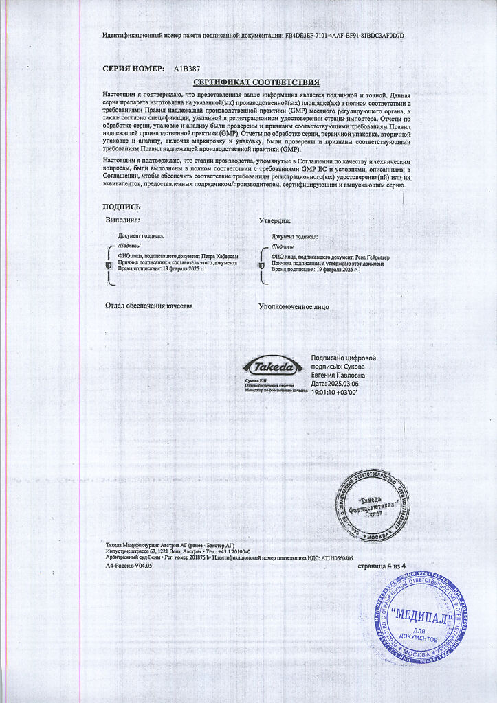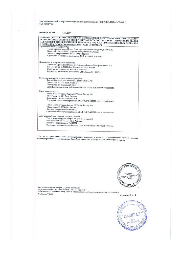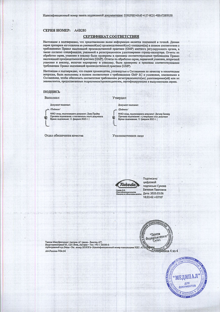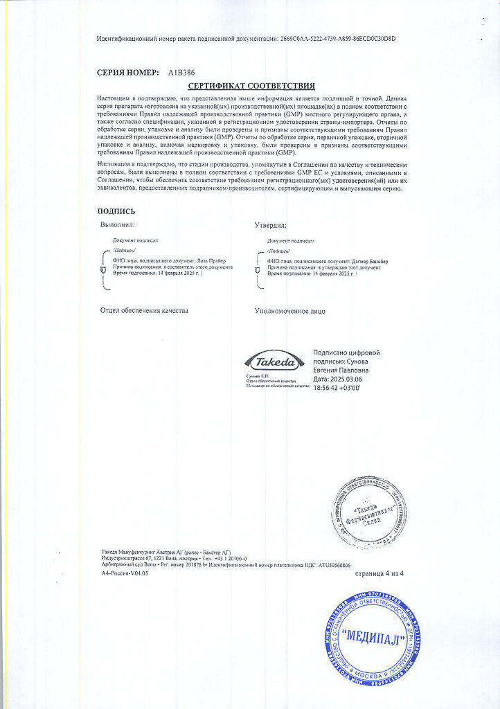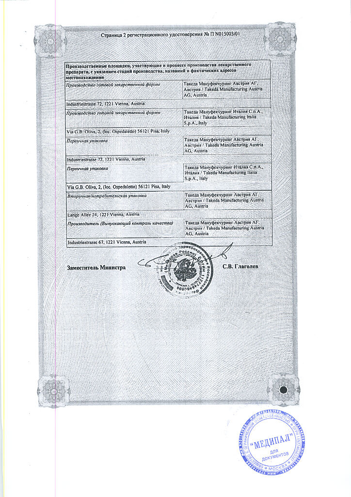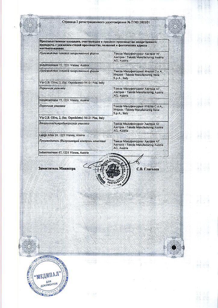 Производитель: Такеда Мануфeкчуринг Австрия АГ, Австрия