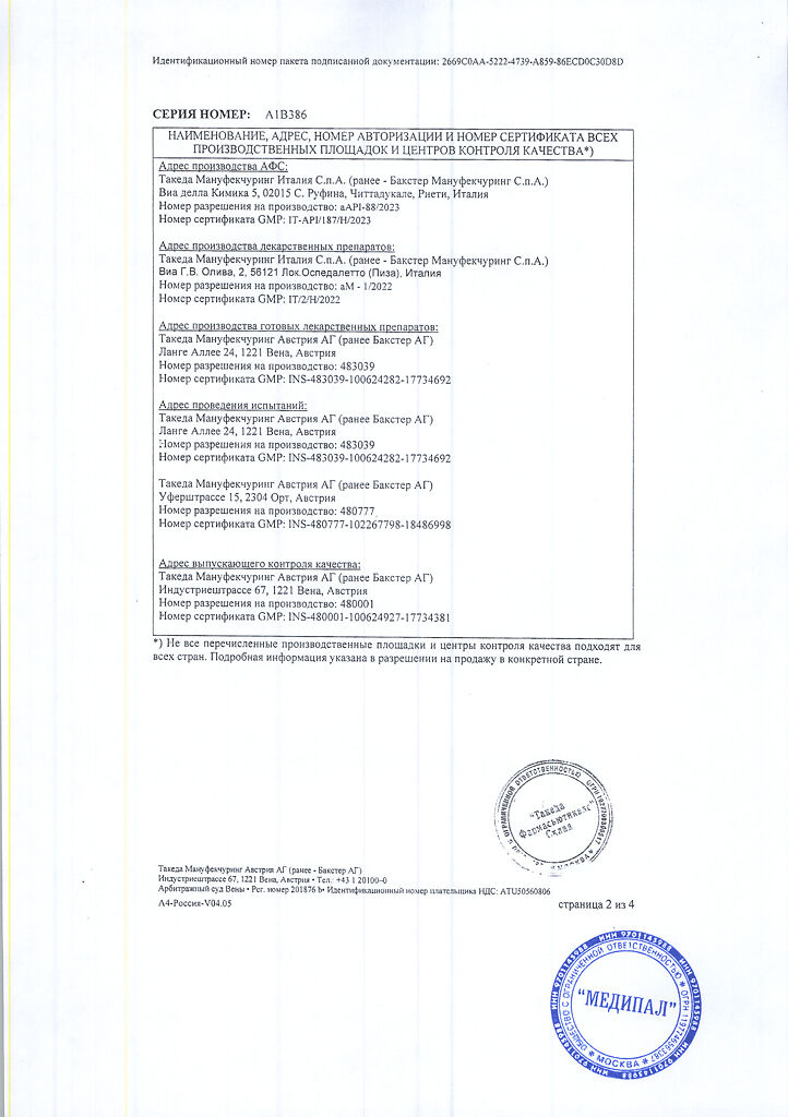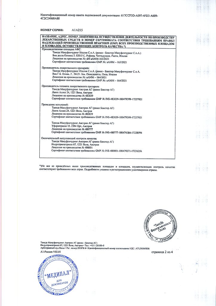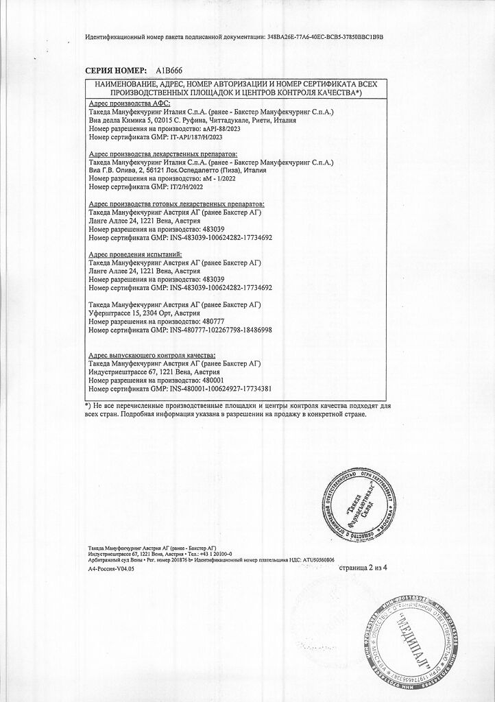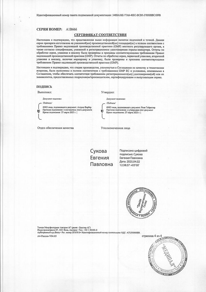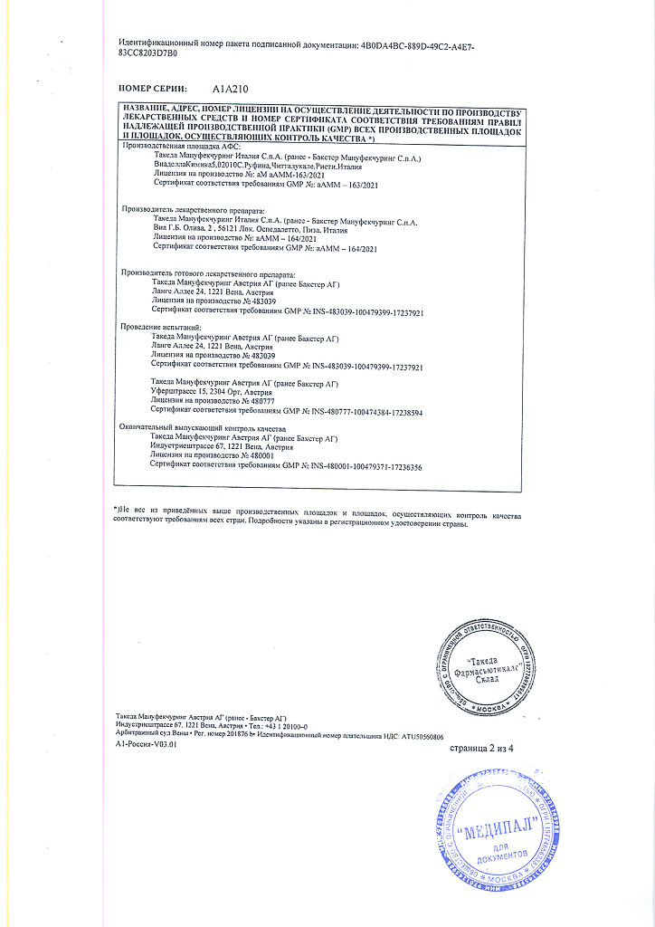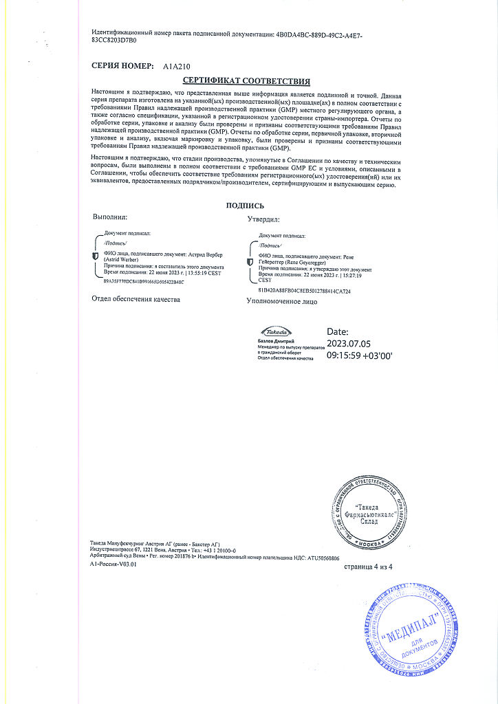 Производитель: Такеда Мануфeкчуринг Австрия АГ, Австрия