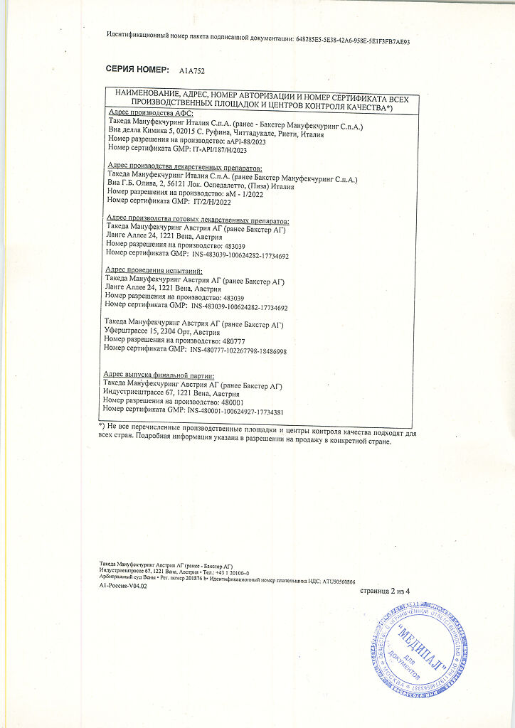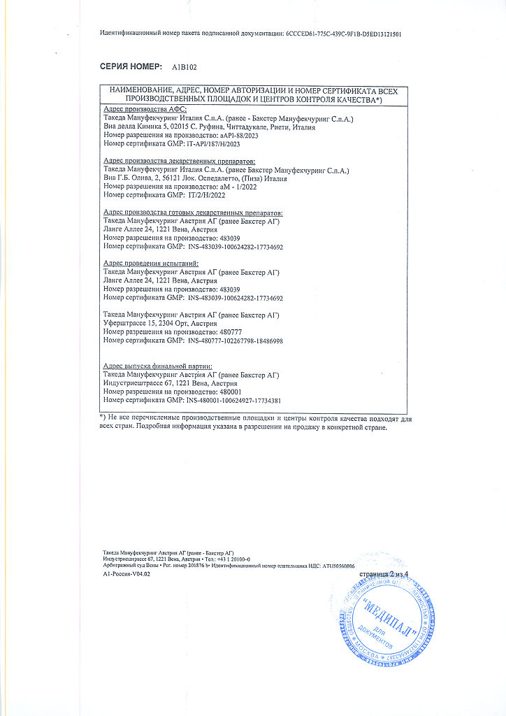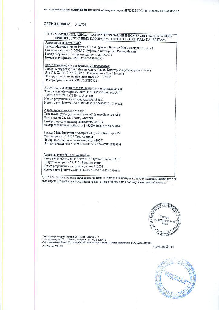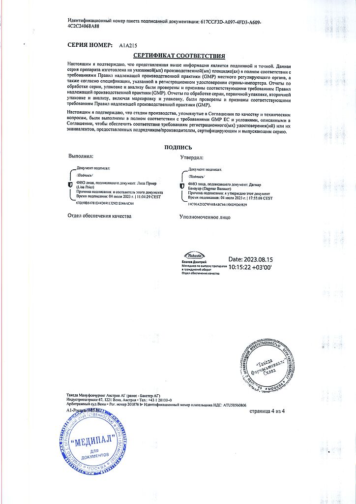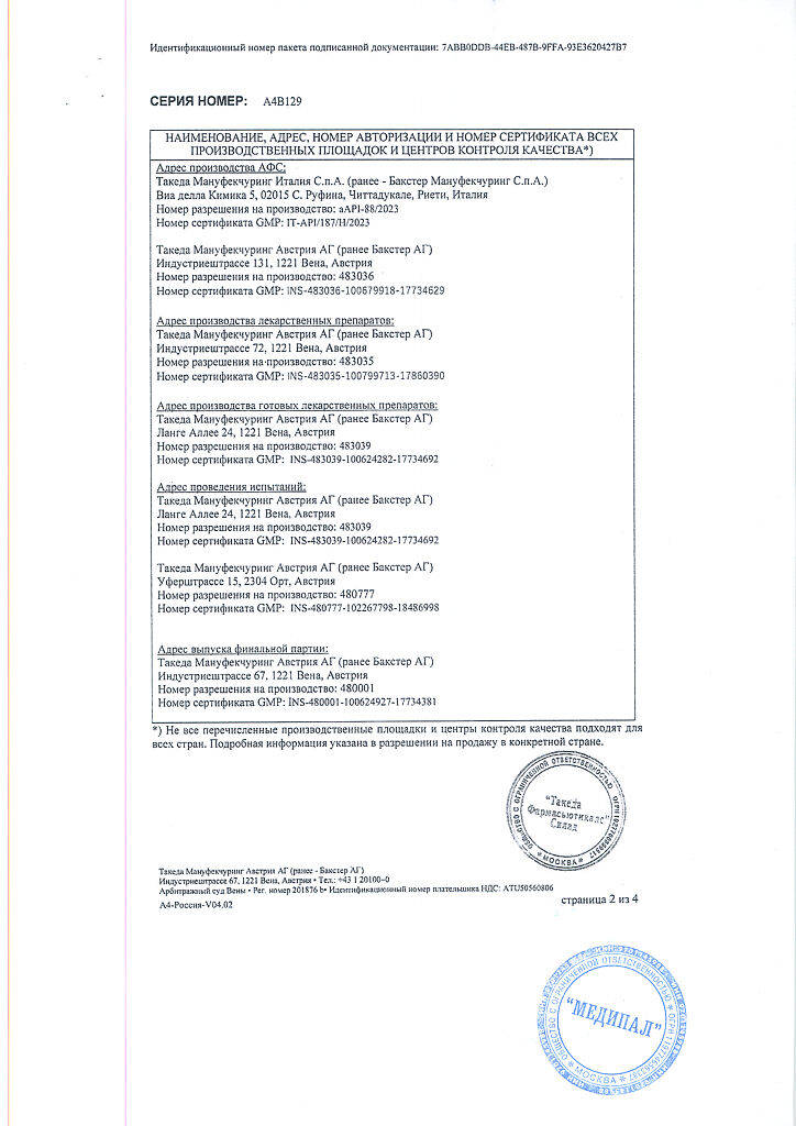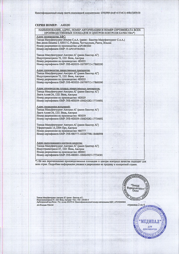 Производитель: Такеда Мануфeкчуринг Австрия АГ, Австрия