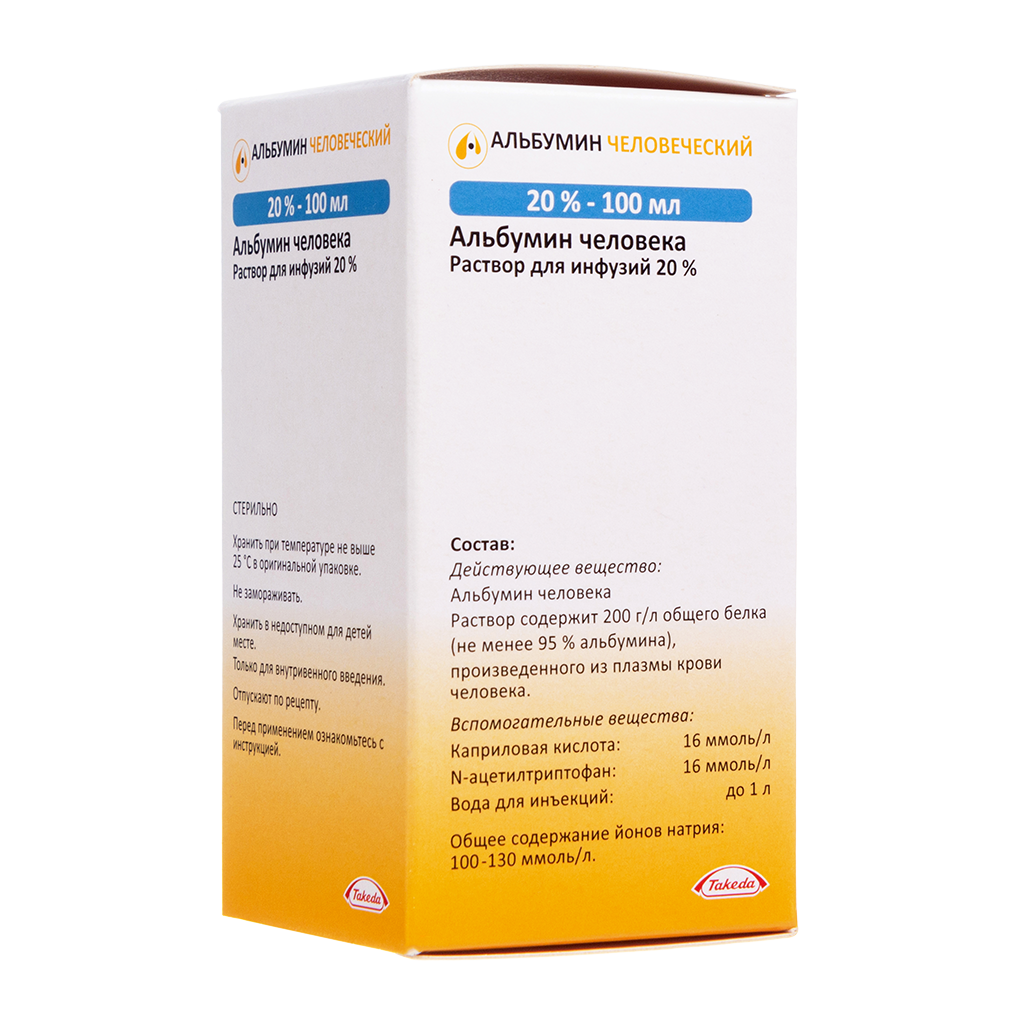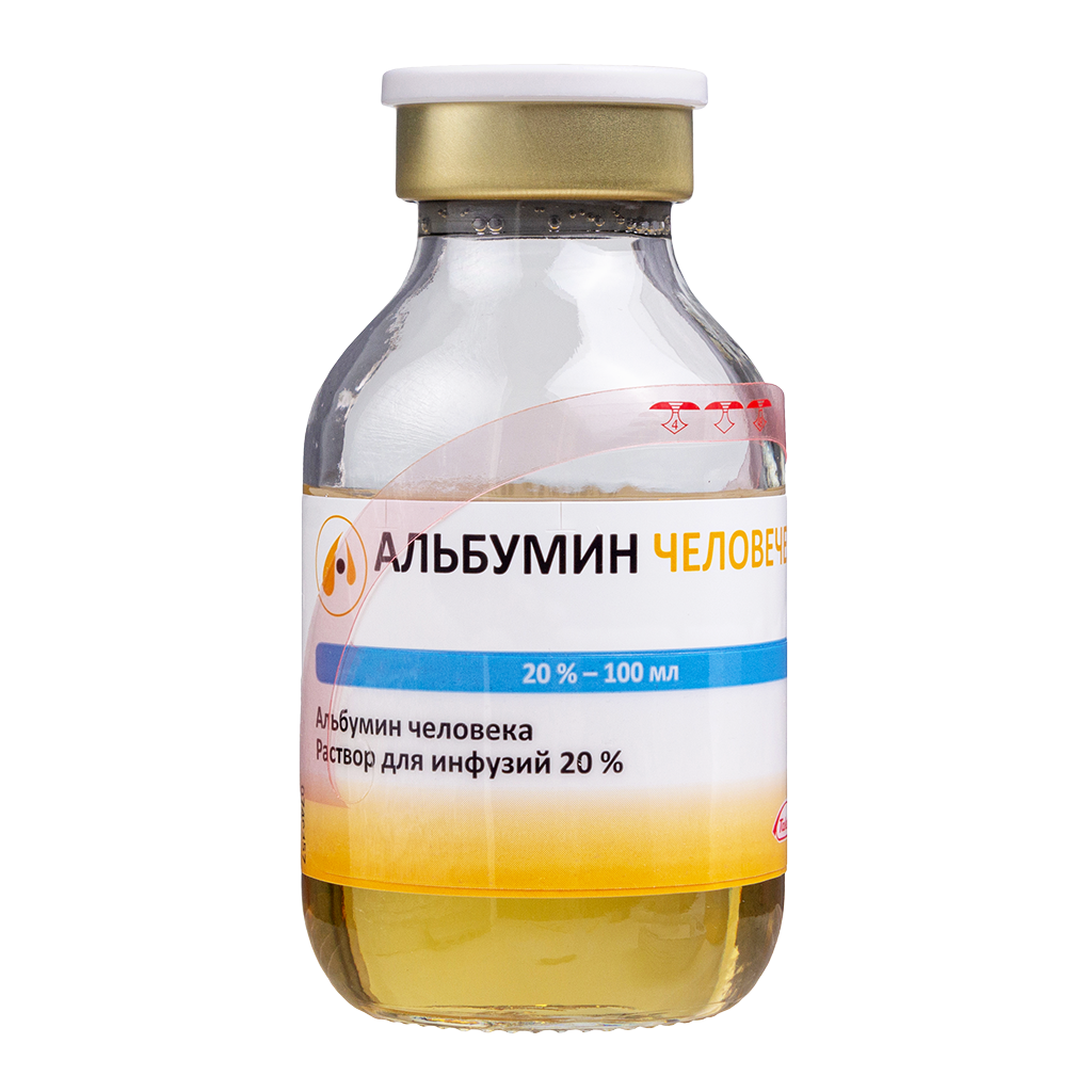 Раствор альбумина 20% при необходимости можно разводить физиологическим раствором или 5% раствором декстрозы (глюкозы). Для этой цели нельзя применять воду для инъекций.