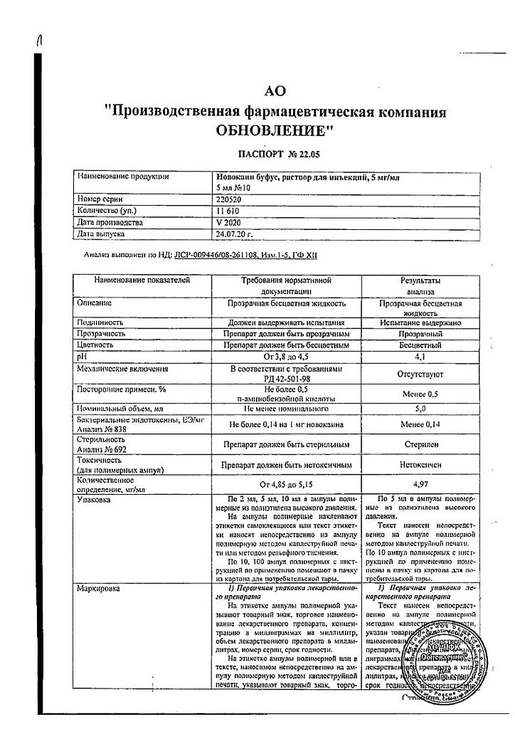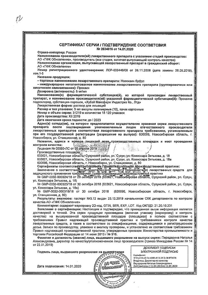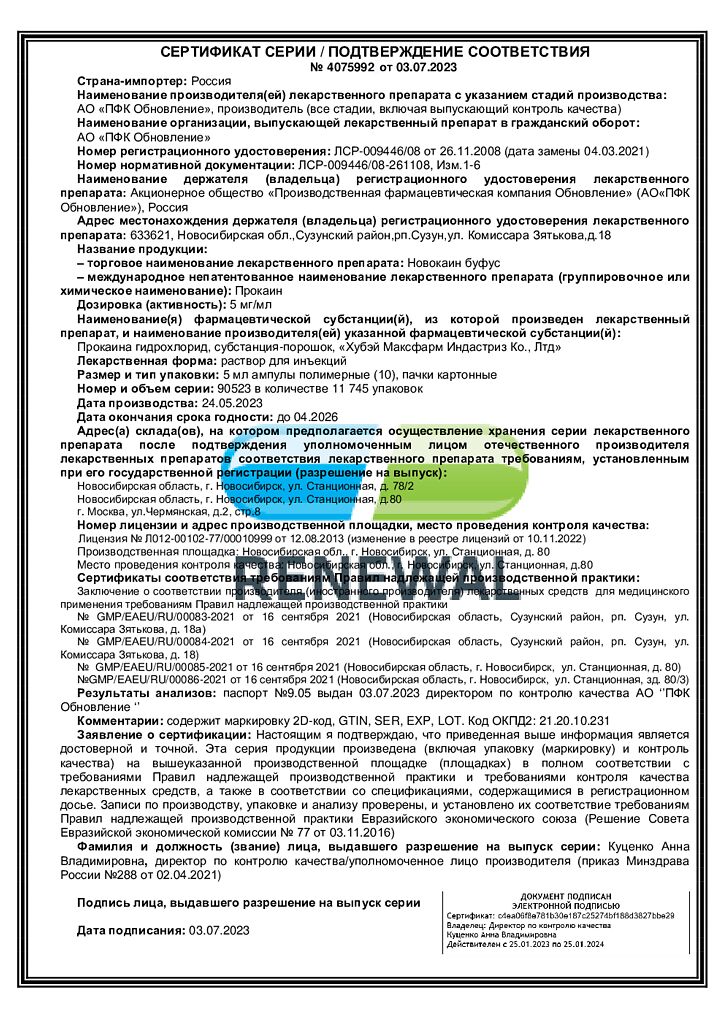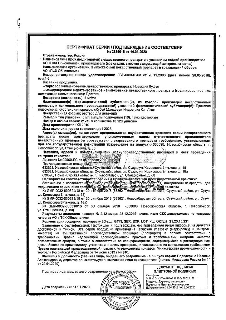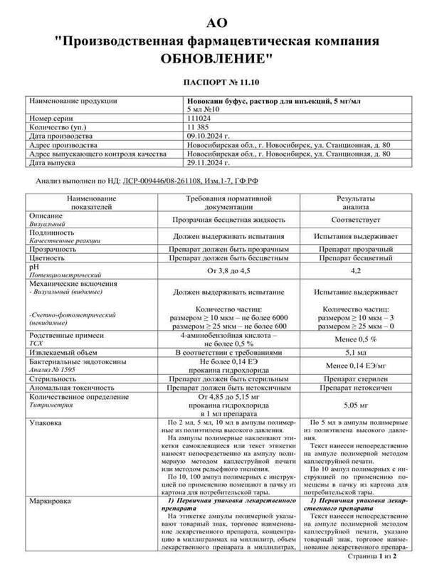 Новокаин Буфус - местноанестезирующее средство с умеренной анестезирующей активностью и большой широтой терапевтического действия.