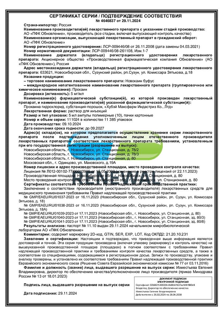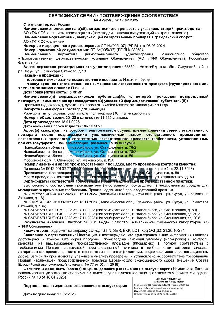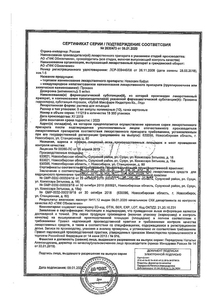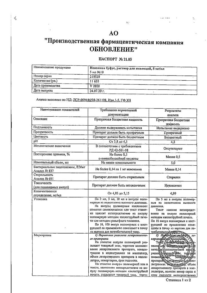 Новокаин Буфус - местноанестезирующее средство с умеренной анестезирующей активностью и большой широтой терапевтического действия.