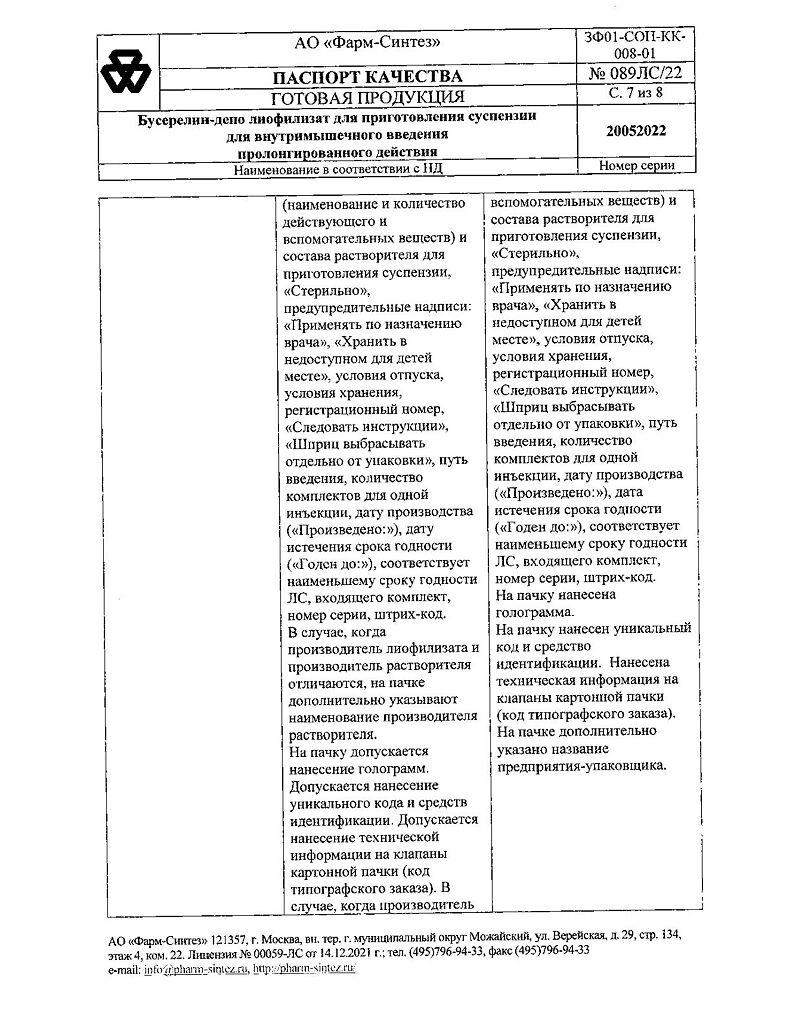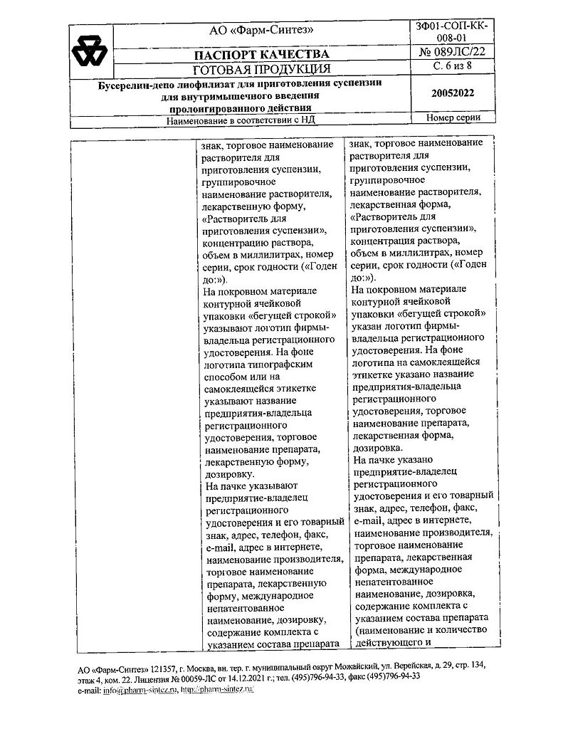 Суспензию Бусерелина-депо следует вводить немедленно после приготовления.