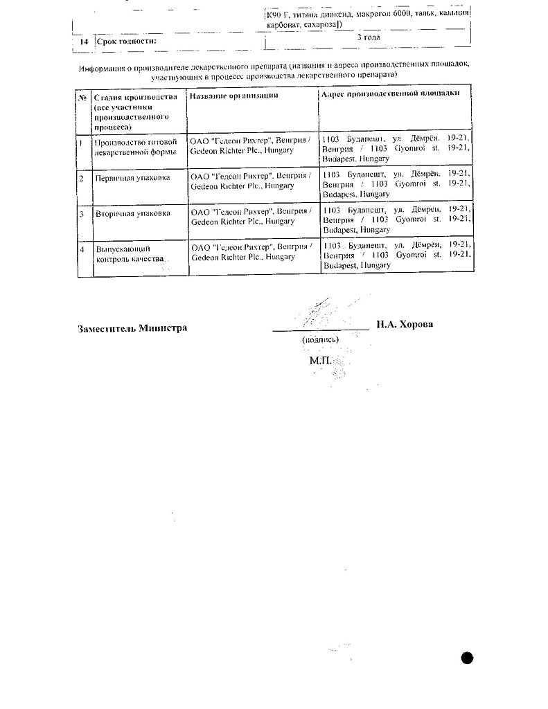 вспомогательные вещества: натрия кальция эдетат, магния стеарат, кремний коллоидный безводный, повидон, крахмал кукурузный, лактозы моногидрат;