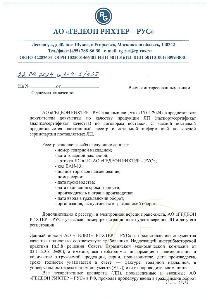Страница носит информационный характер о наличии препаратов. Перед назначением и применением проконсультируйтесь с врачом