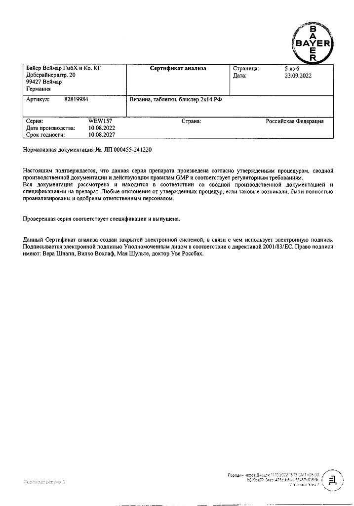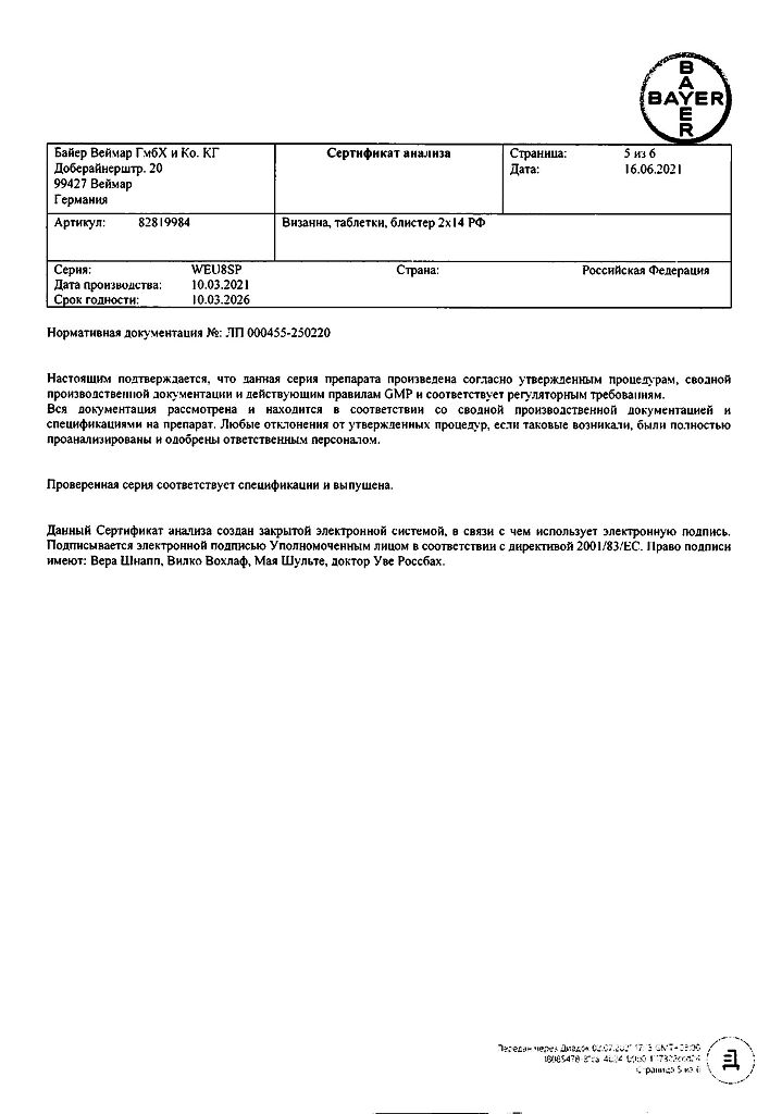 Производитель: Байер Веймар ГмбХ и Ко. КГ, Германия