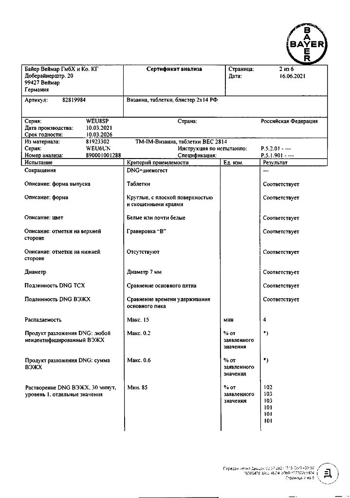 Согласно имеющимся данным, во время приема препарата Визанна у большинства пациенток происходит подавление овуляции. Однако Визанна не является контрацептивом.
