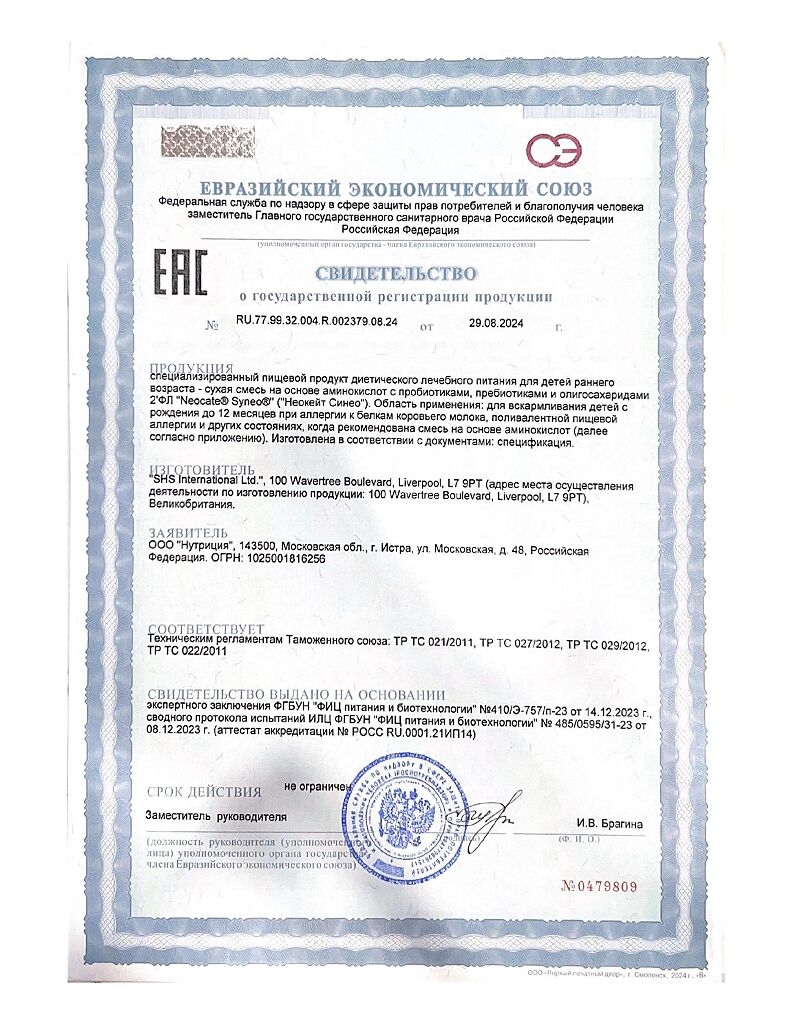 Детская сухая смесь для кормления Neocate разработана как лечебный и диагностический продукт для детей в возрасте от 0 до 12 мес. в следующих ситуациях: