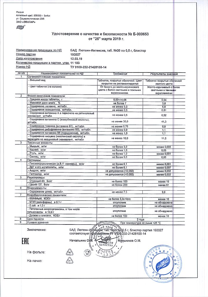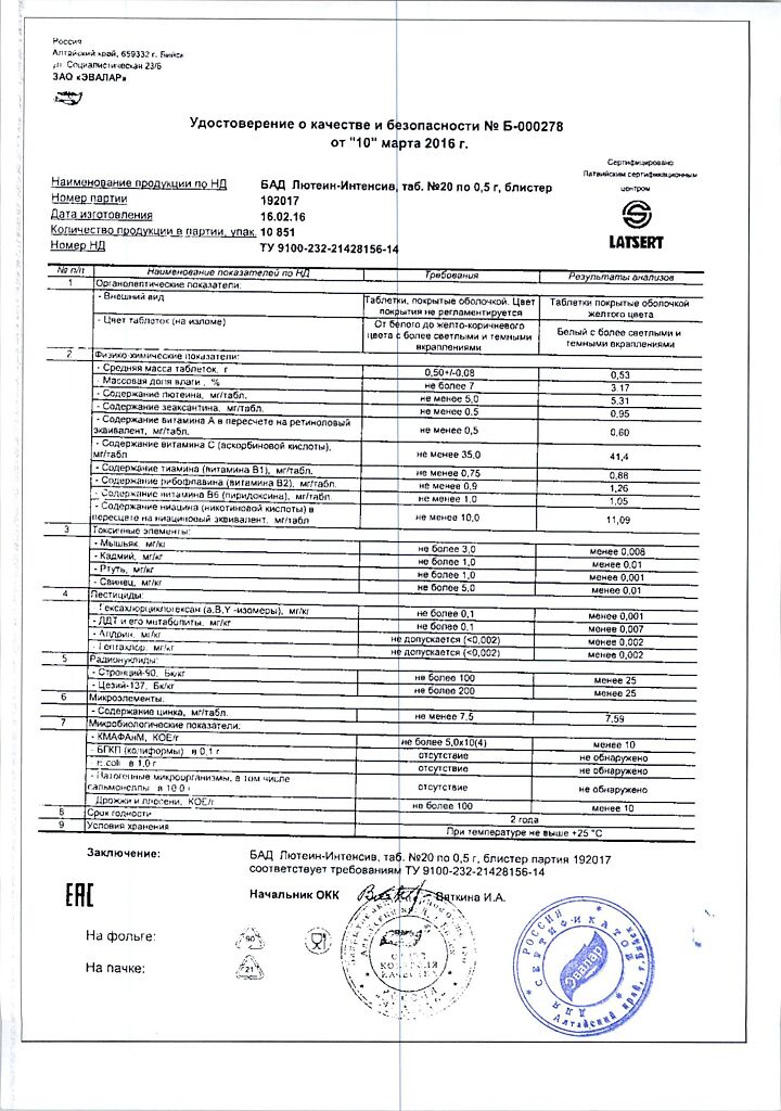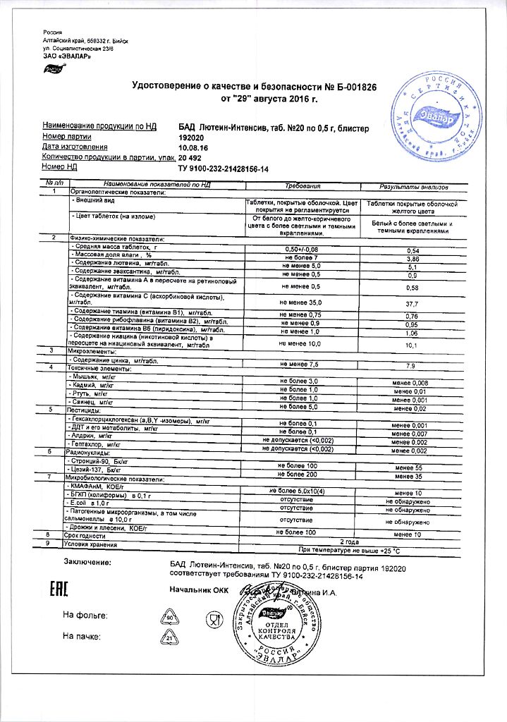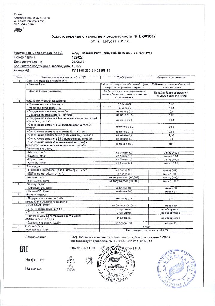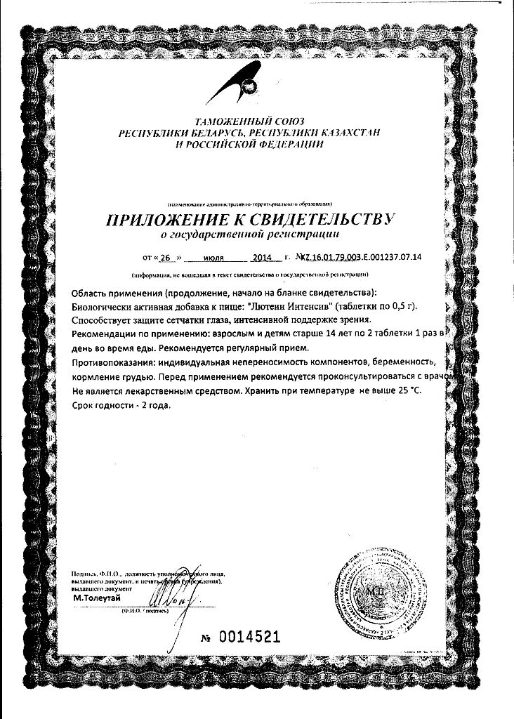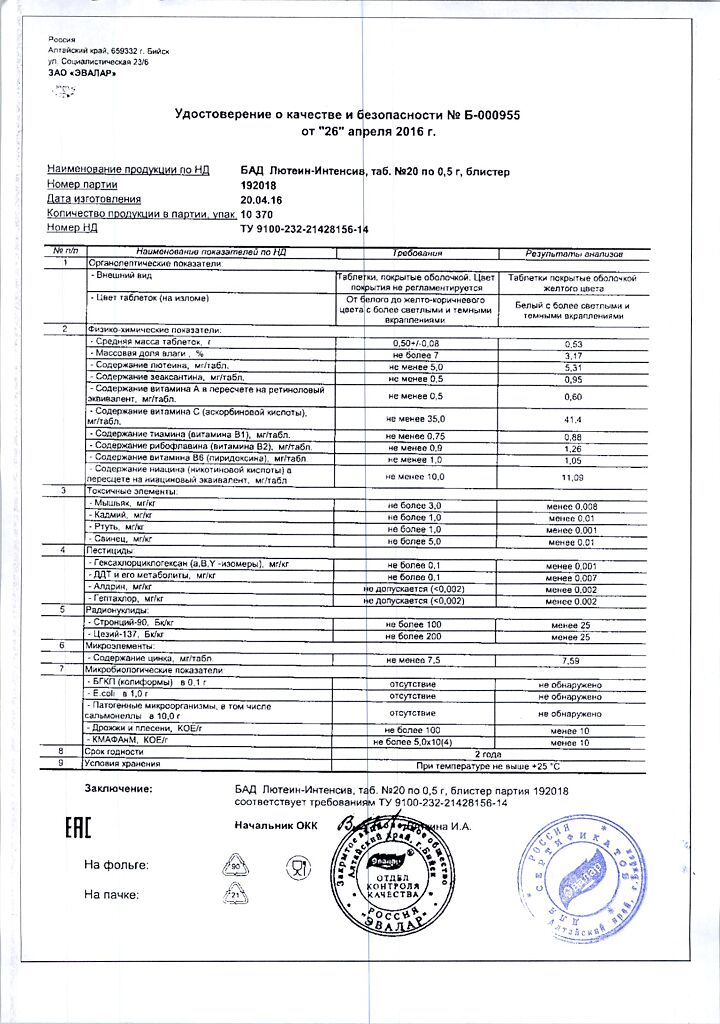 • Срок годности Лютеин-интенсив - 2 года