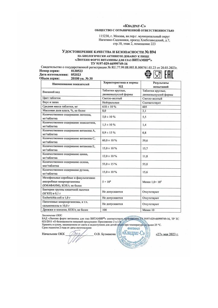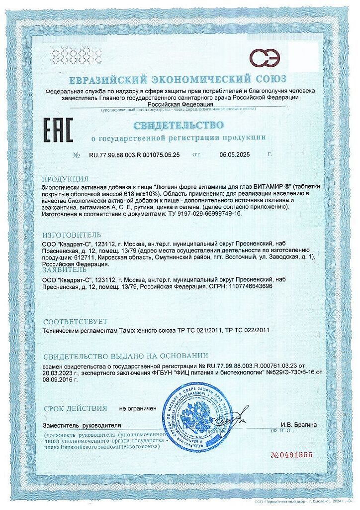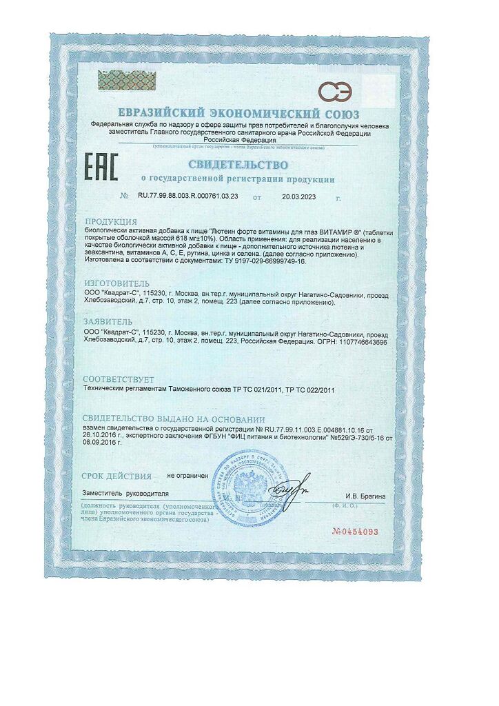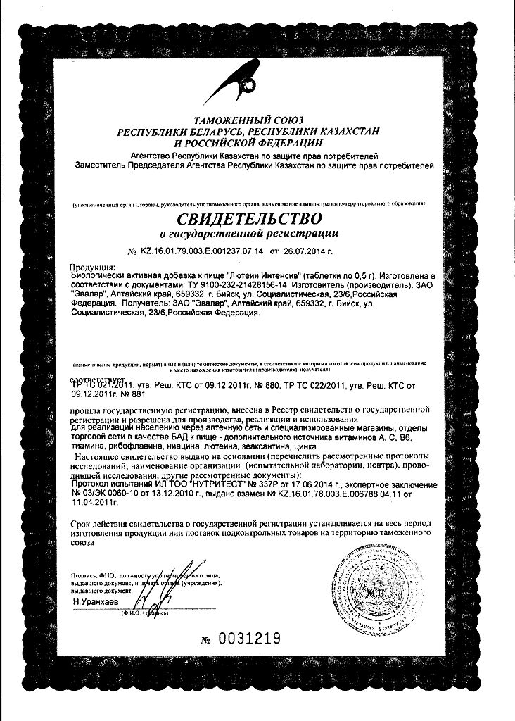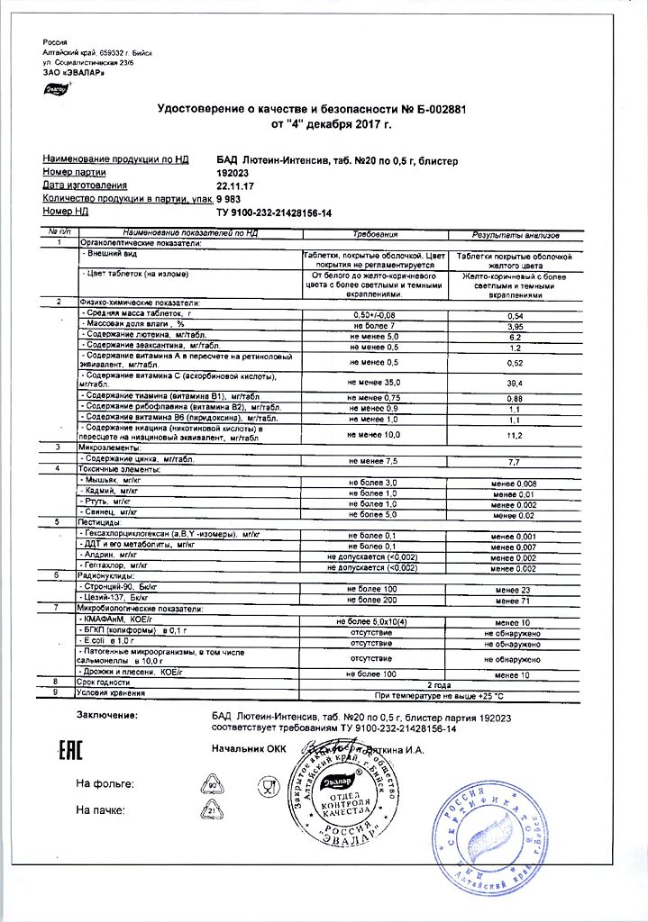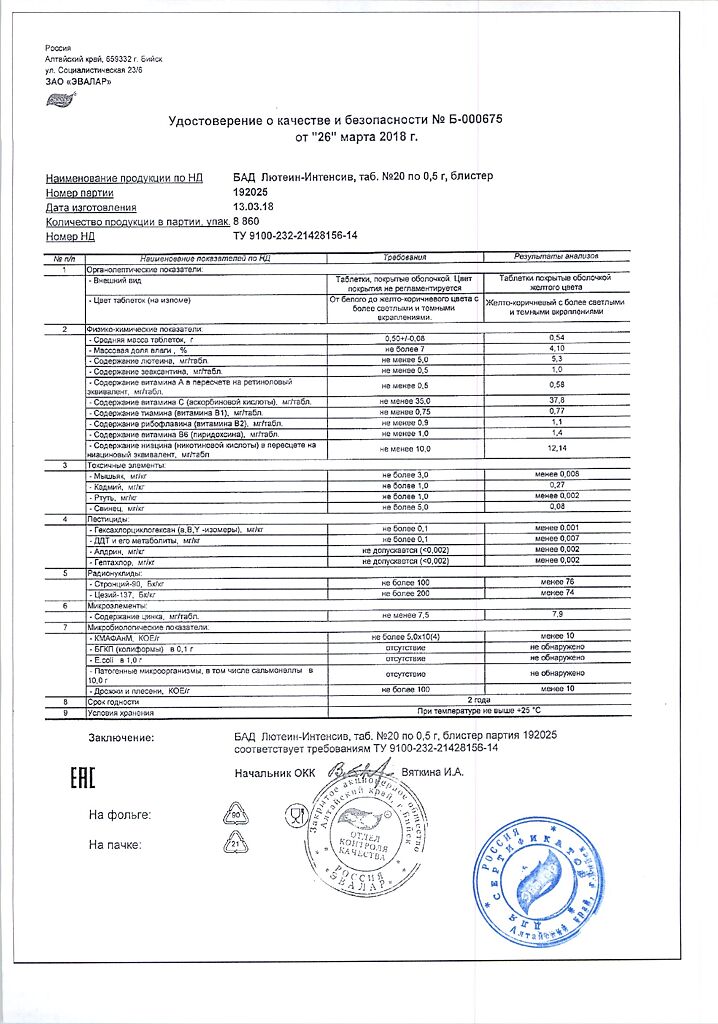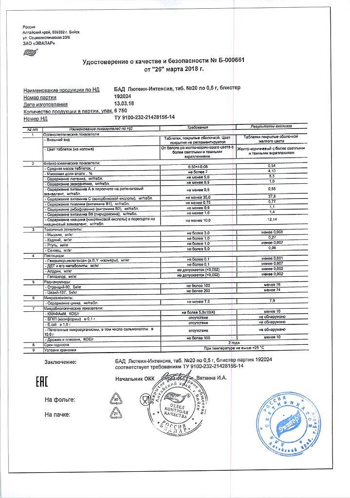 • Срок годности Лютеин-интенсив - 2 года