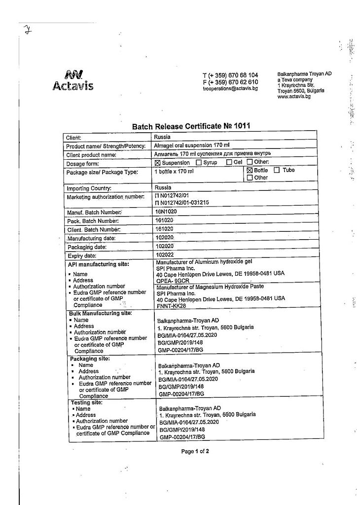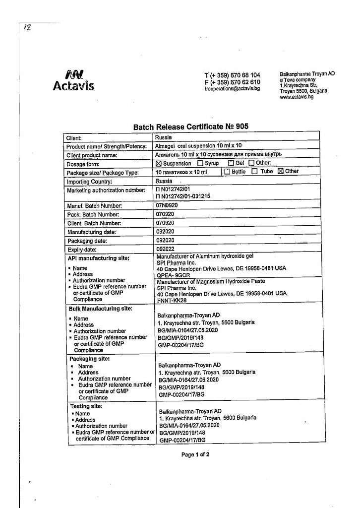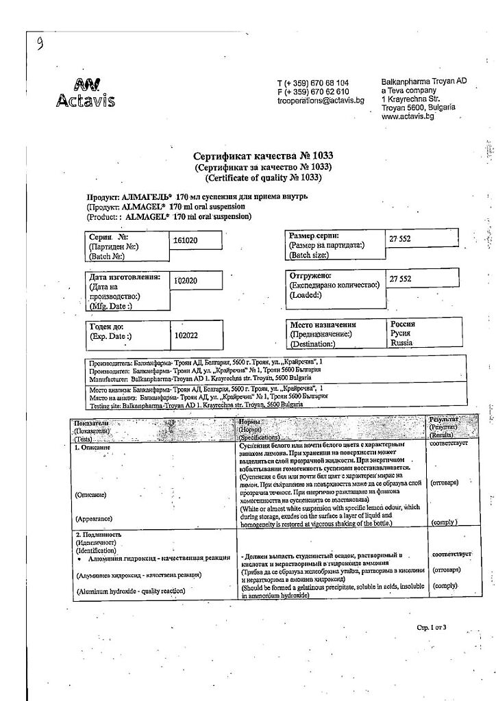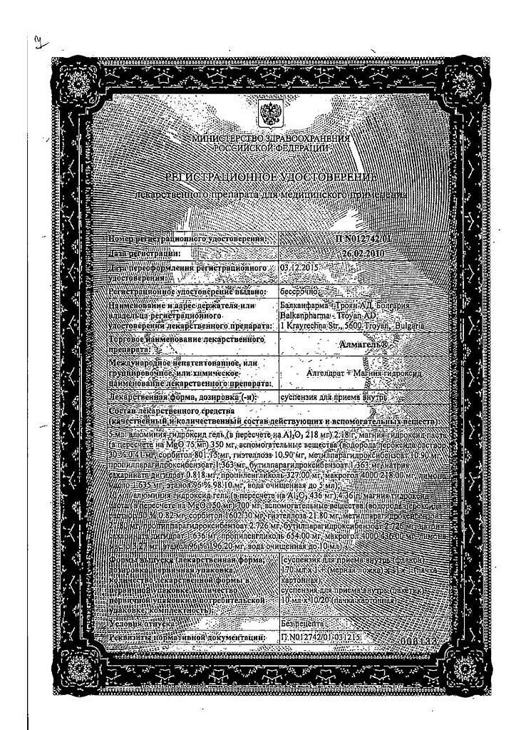 Алмагель не оказывает влияния на способность управлять автомобилем и работать с механизмами. При приеме в рекомендованной суточной дозе содержащийся в препарате этиловый спирт не оказывает влияние на способность управления автомобилем и работу с механизмами.