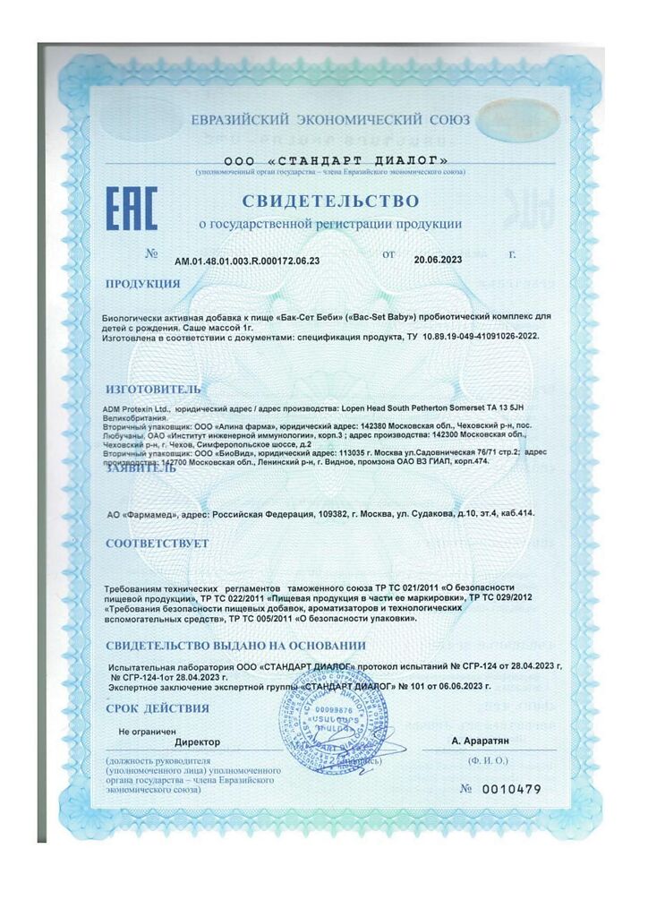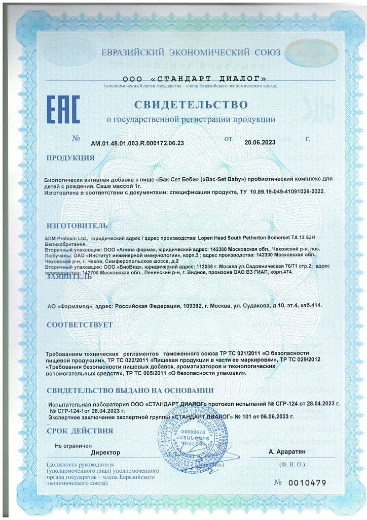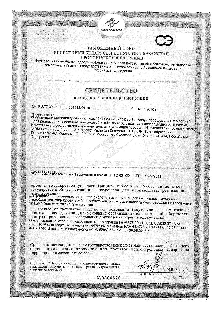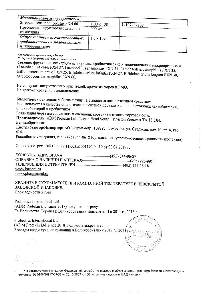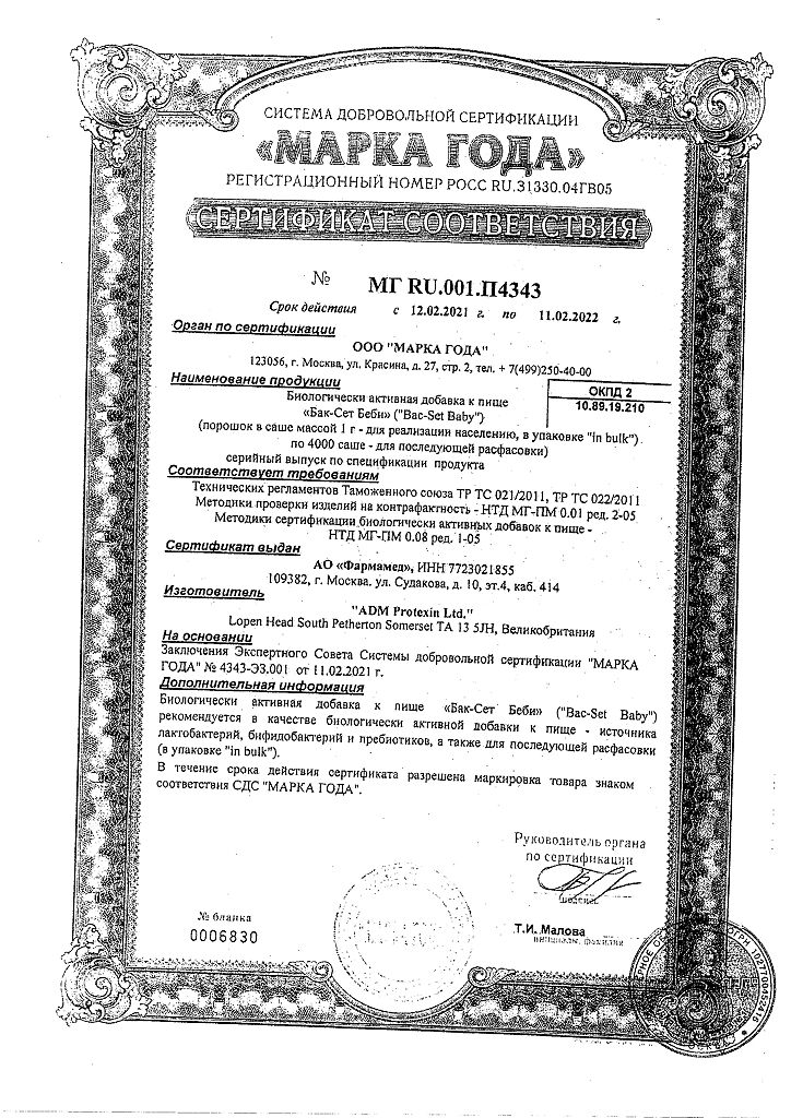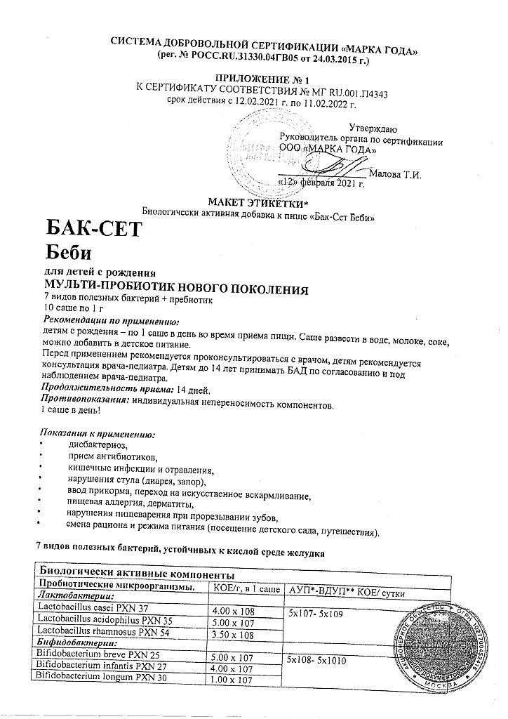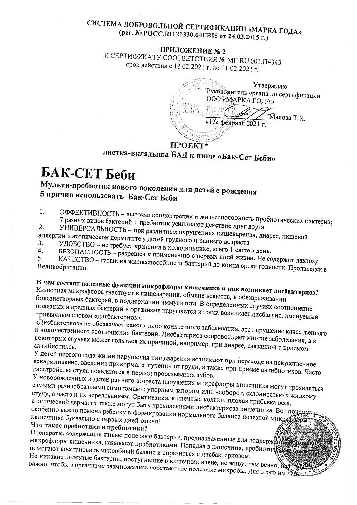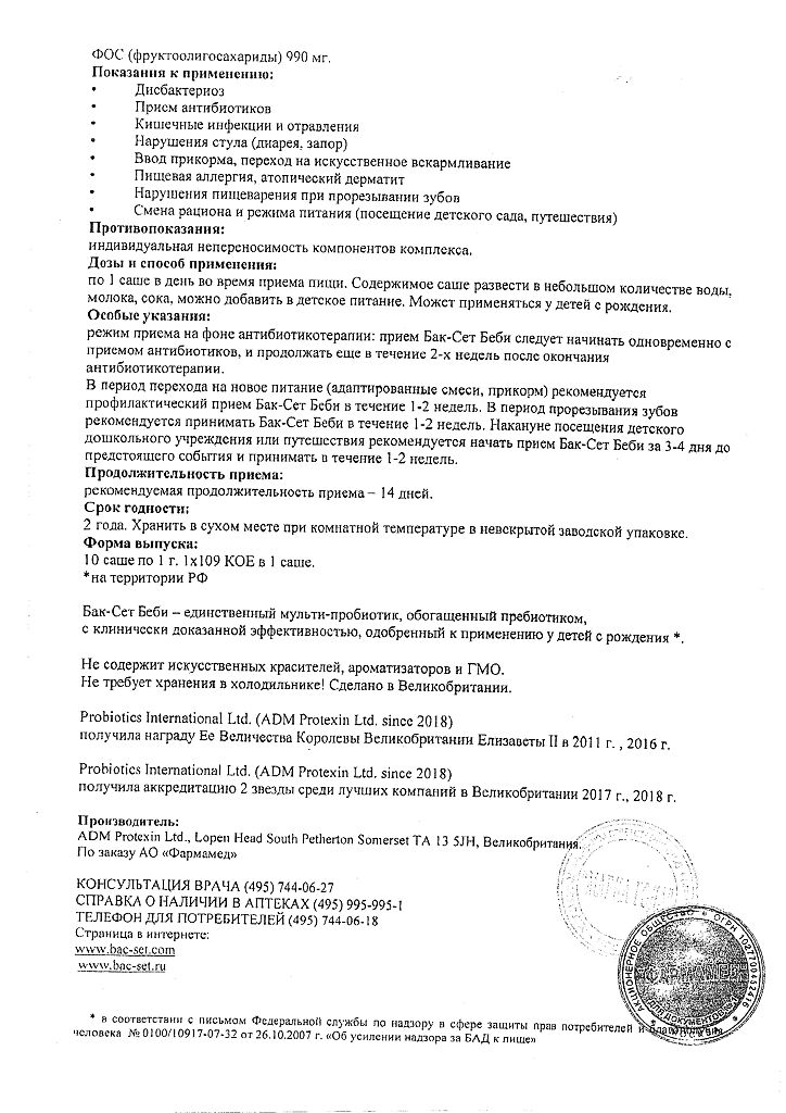 • Производителем Бак-Сет Беби является - Пробиотикс Интернешнл Лтд