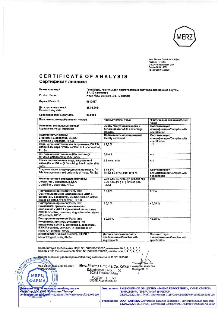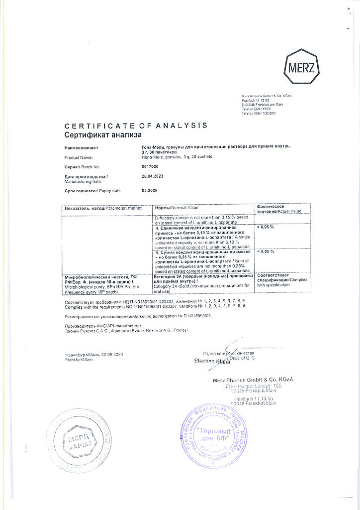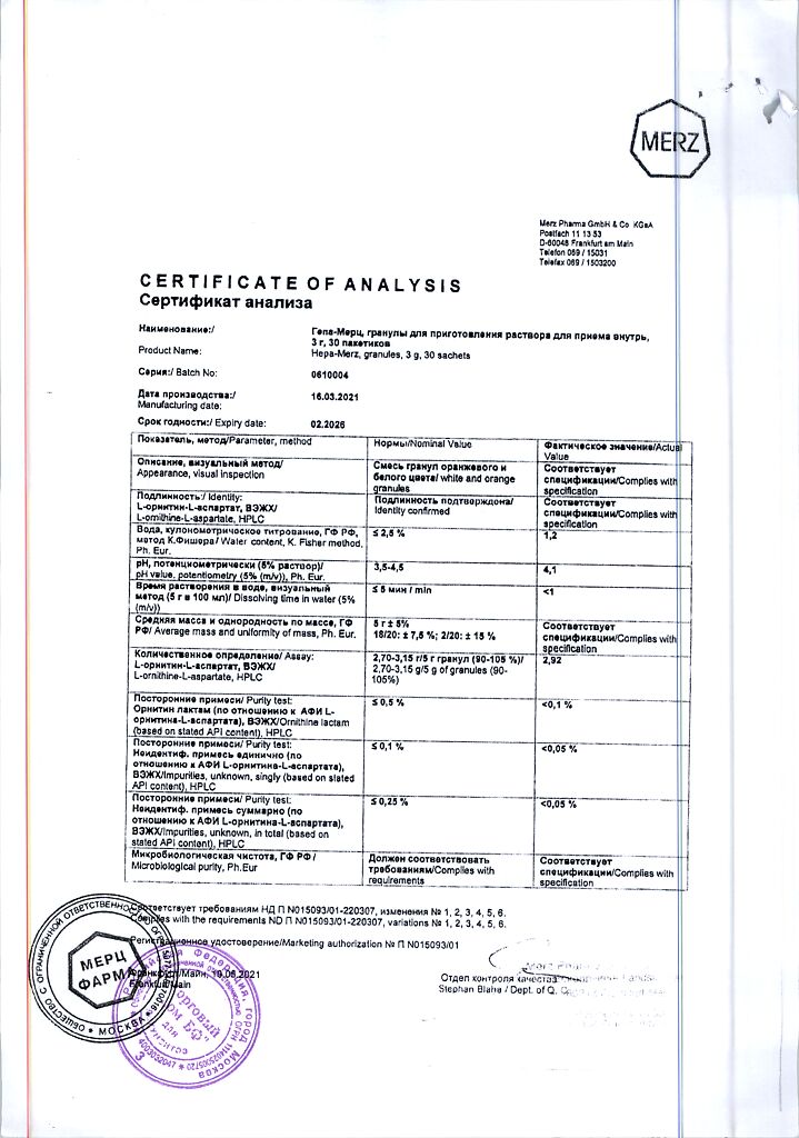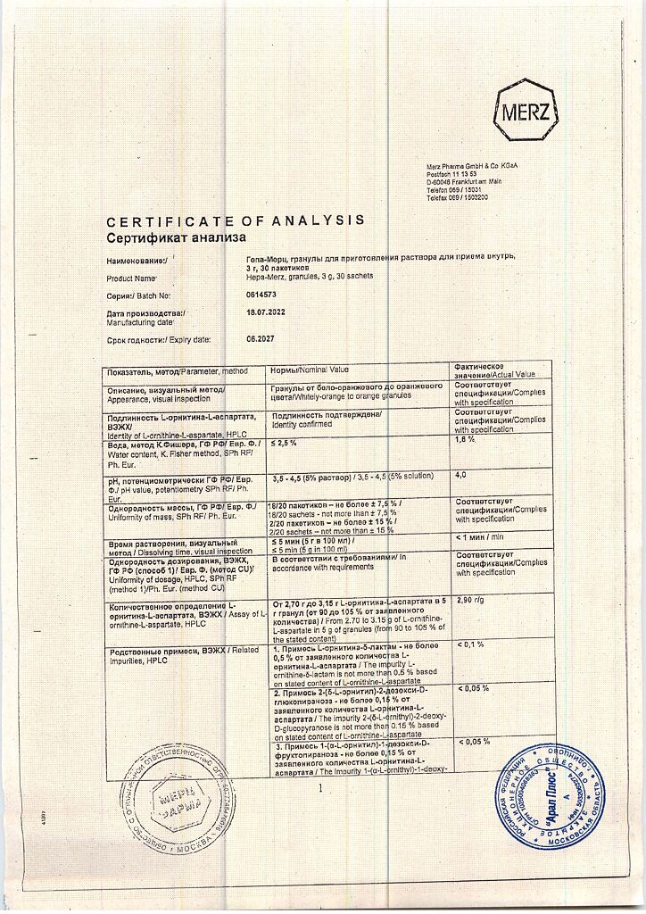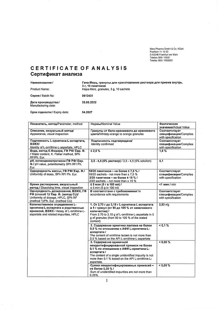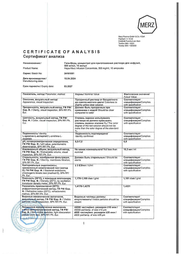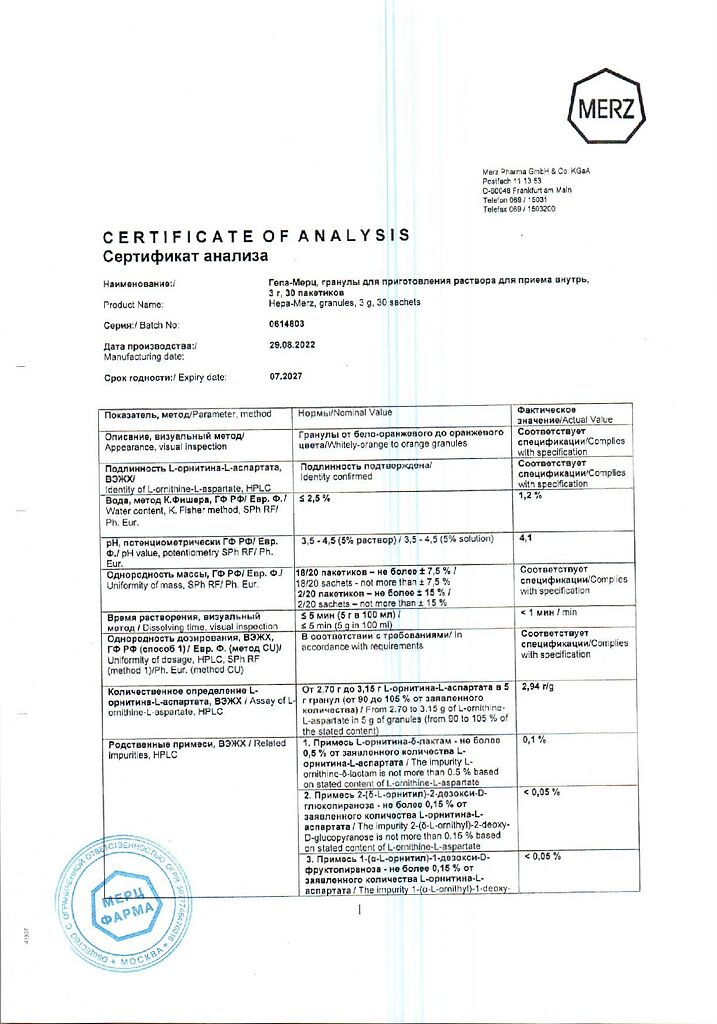 Гепа-Мерц - оказывает гепатопротекторное действие, снижает уровень азота в крови