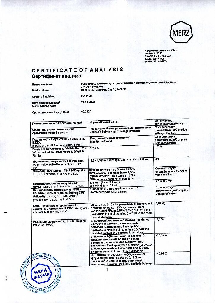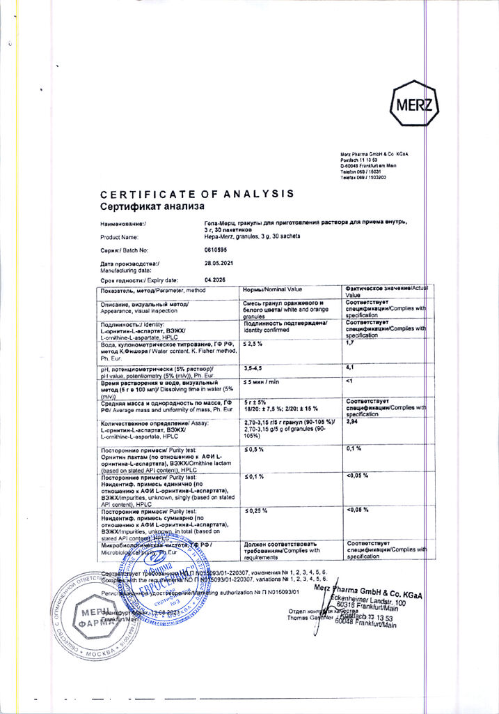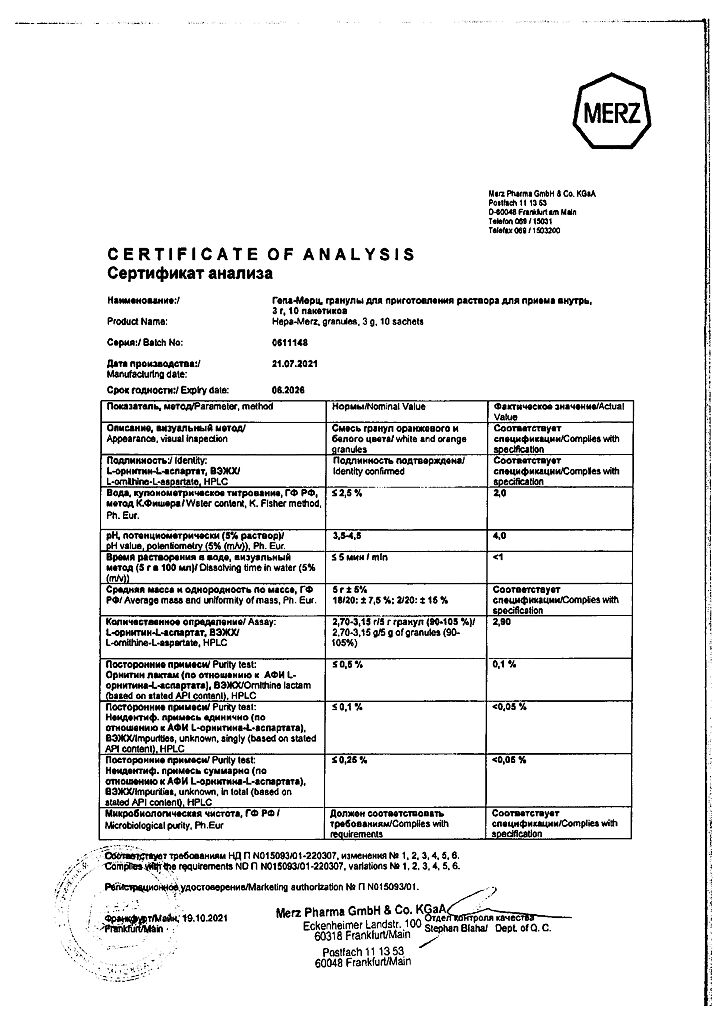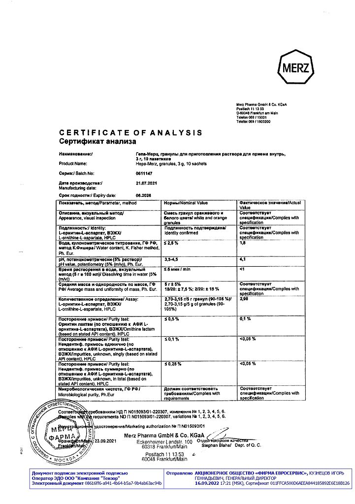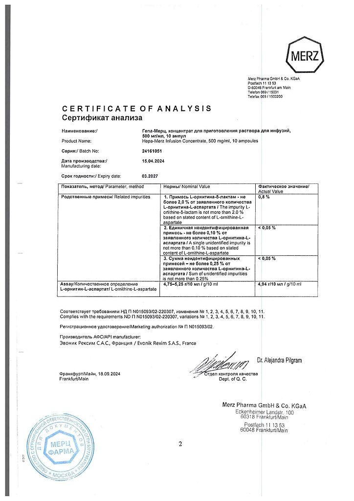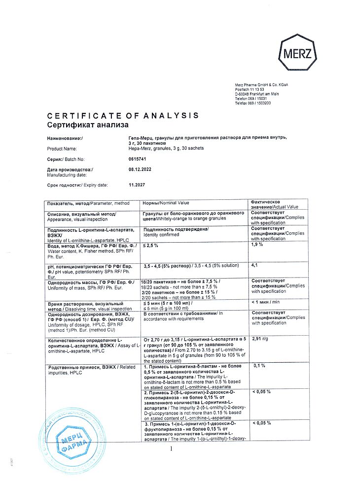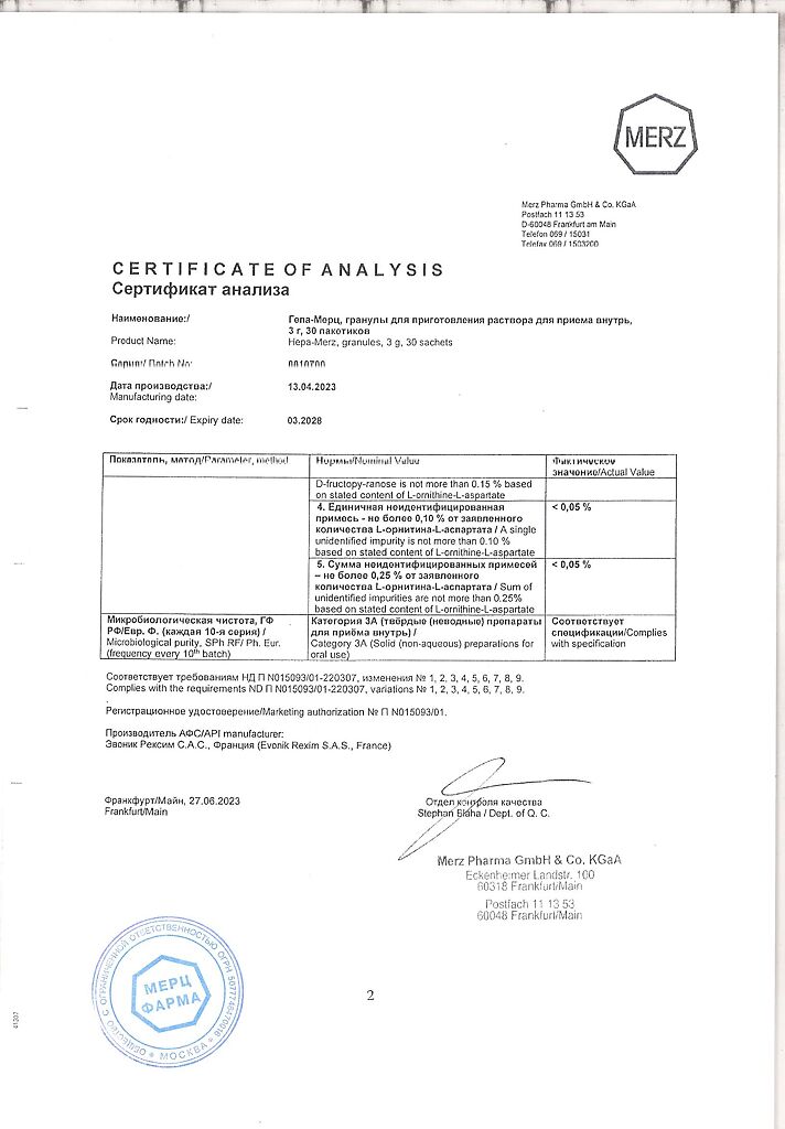 Гепа-Мерц - оказывает гепатопротекторное действие, снижает уровень азота в крови