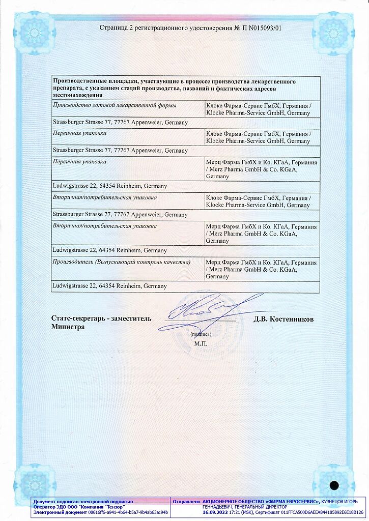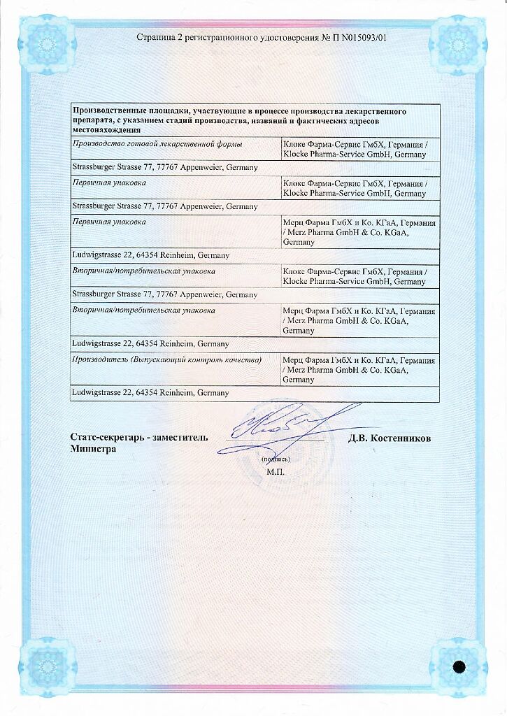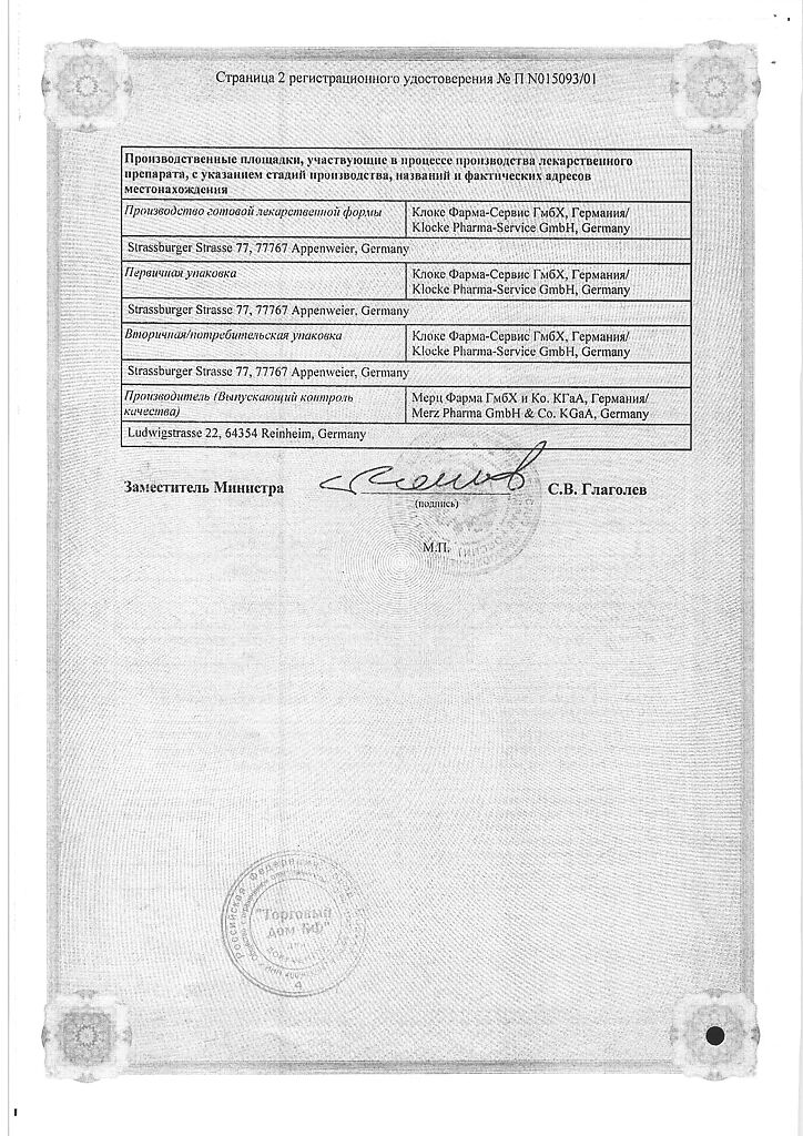 Производитель: Мерц Фарма ГмбХ и Ко.КГаА, Германия