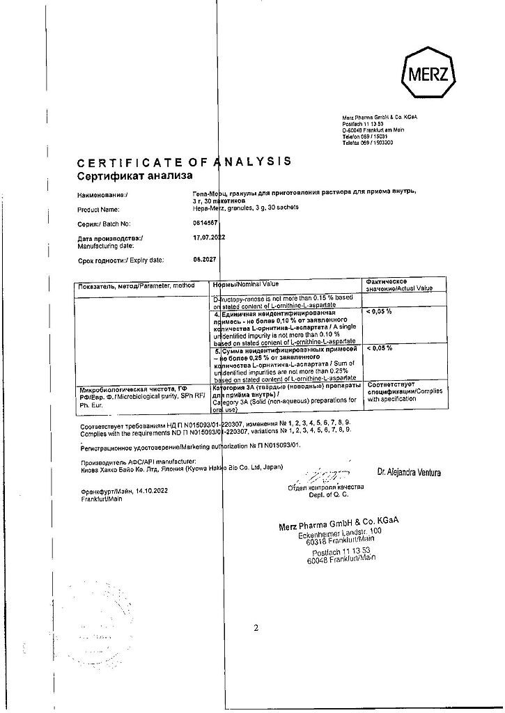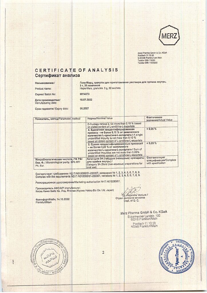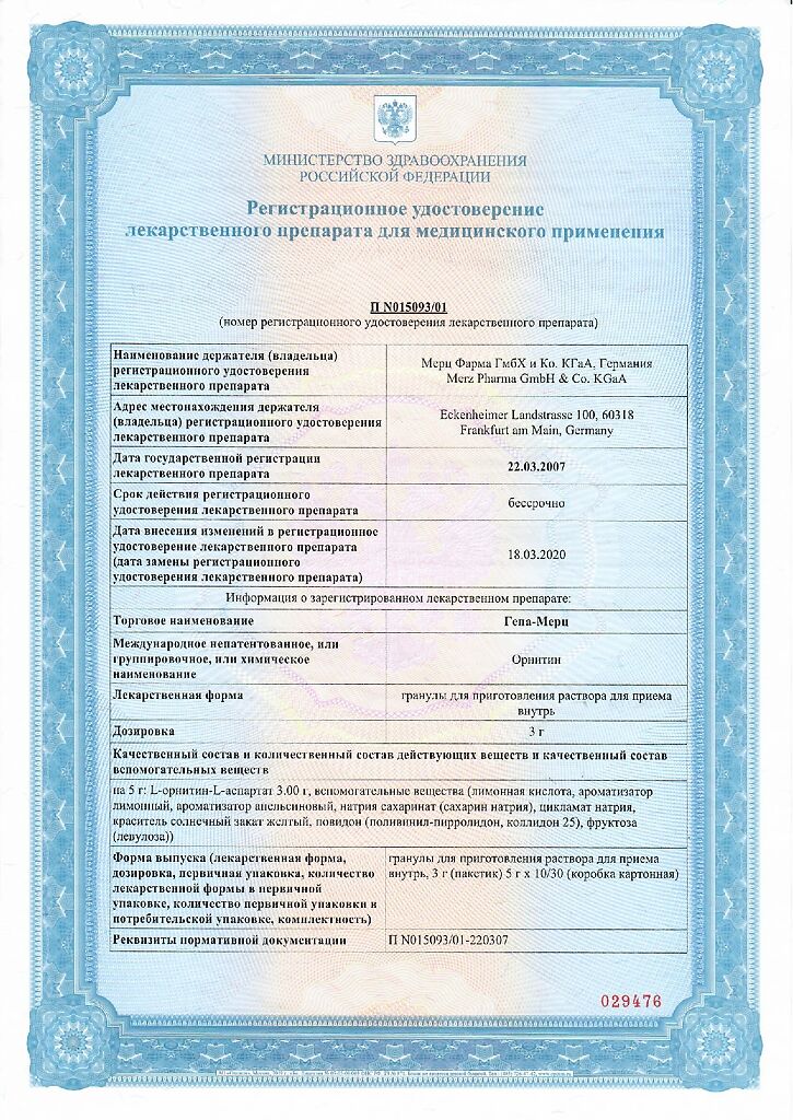 Действующее вещество:орнитина аспартат3 г;