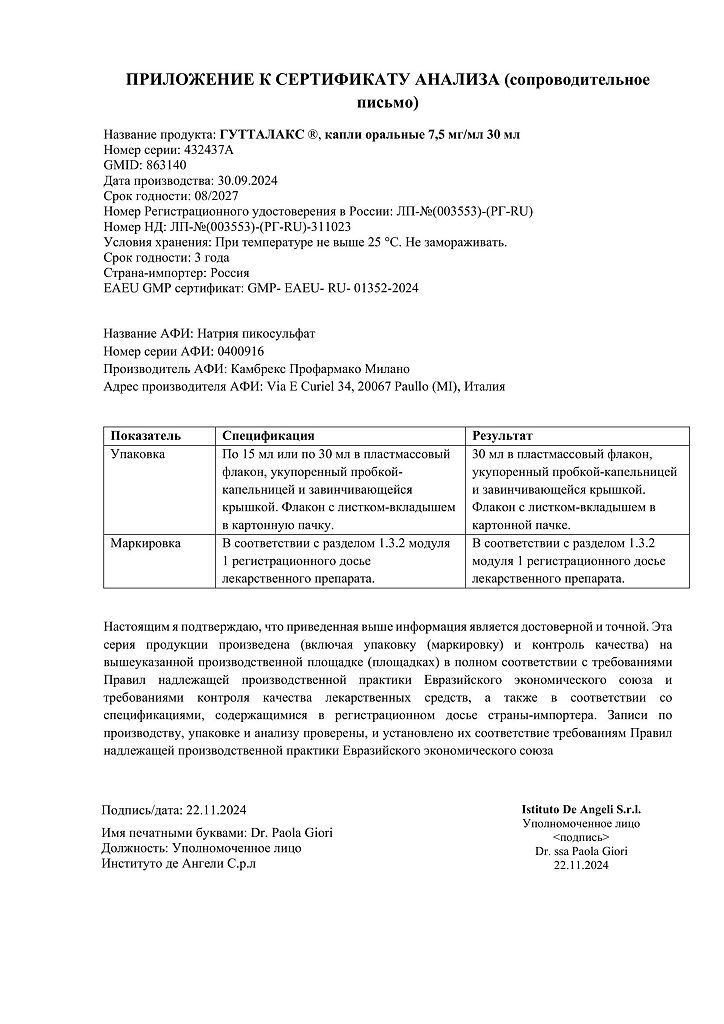 Производитель: Институт де Ангели С.р.Л, Италия