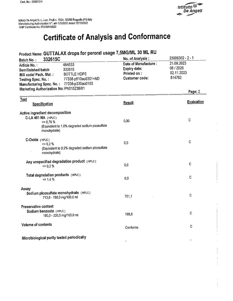 Головокружение и обмороки наблюдались у пациентов принимавших препарат Гутталакс® .Анализ показал, что эти случаи связаны с обмороком при дефекации (или обмороком, вызванным напряжением при дефекации), или с вазовагальным ответом на боль в животе, которая может быть обусловлена запором, и не обязательно связана с приемом препарата.