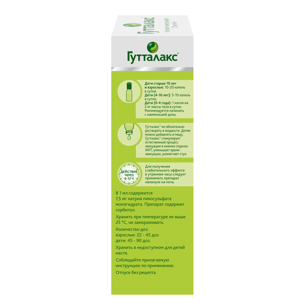 Гутталакс слабительный препарат, действие развивается через 6-12 часов