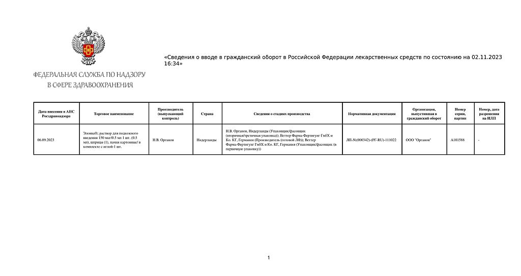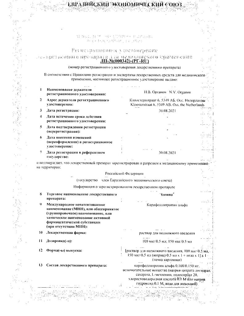 Элонва - фолликулостимулирующий препарат. Корифоллитропин альфа - это гликопротеин, который продуцируется клетками яичников китайских хомячков с помощью рекомбинантной ДНК технологии.