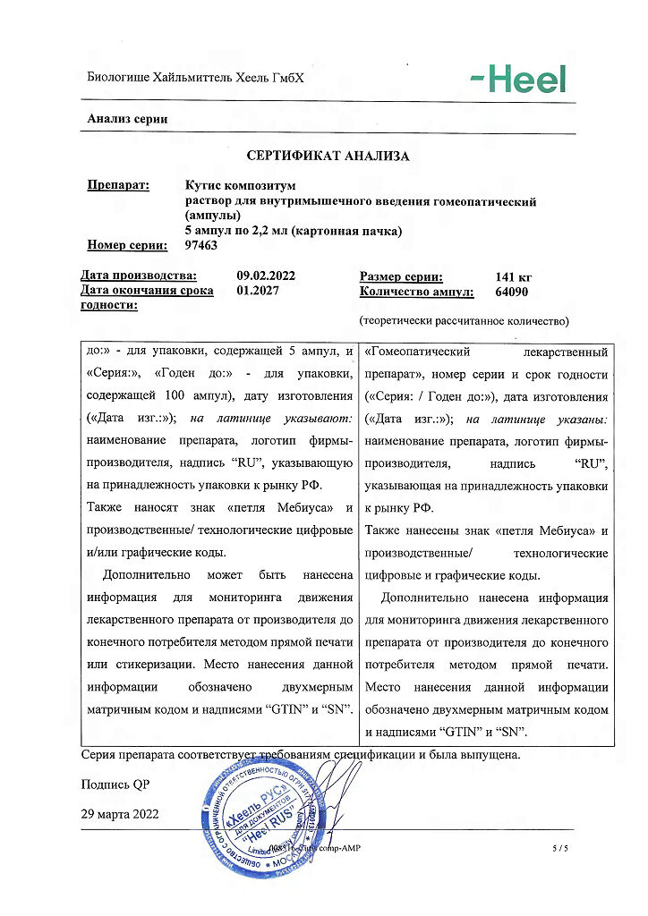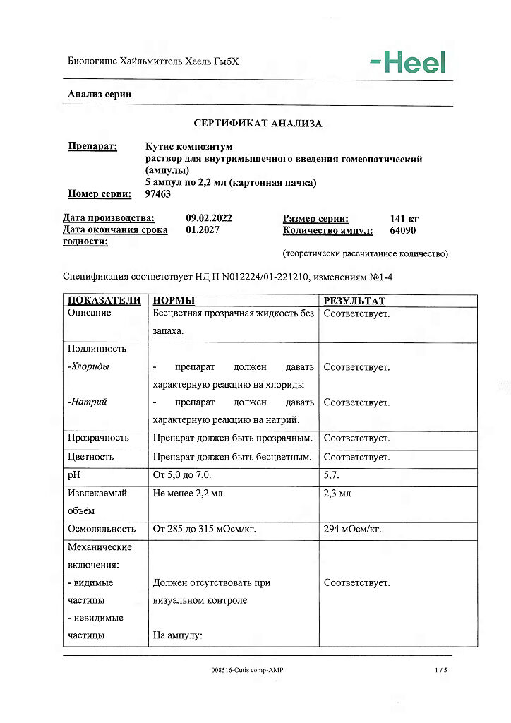 действующие вещества: Cutis suis D8 22 мкл, Hepar suis D10 22 мкл, Splen suis D10 22 мкл, Placenta suis D10 22 мкл, Glandula suprarenalis suis D10 22 мкл, Funiculus umbilicalis suis D10 22 мкл,Thuja occidentalis D8 22 мкл, Galium aparine D6 22 мкл, Selenium D10 22 мкл, Thallium sulfuricum D13 22 мкл, Ignatia D6 22 мкл, Sulfur D10 22 мкл, Cortisonum aceticum D28 22 мкл, Urtica urens D4 22 мкл, Acidum phosphoricum D6 22 мкл, Calcium fluoratum D13 22 мкл, Mercurius solubilis Hahnemanni D13 22 мкл, Aesculus hippocastanum D6 22 мкл, Ichthyolum D28 22 мкл, Sanguinarinum nitricum D6 22 мкл, Ledum palustre D4 22 мкл, Arctium lappa D6 22 мкл, Acidum formicicum D198 22 мкл, Pyrogenium-Nosode D198 22 мкл, Acidum alpha-ketoglutaricum D10 22 мкл, Acidum fumaricum D10 22 мкл, Natrium diethyloxalaceticum D10 22 мкл;