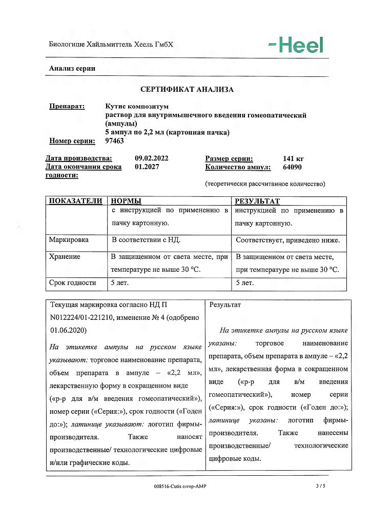 Кутис композитум вводят внутримышечно по 2,2 мл 1-3 раза в неделю.
