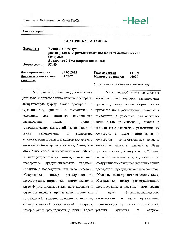 Кутис композитум оказывает противовоспалительное, репаративное, противомикробное действие.