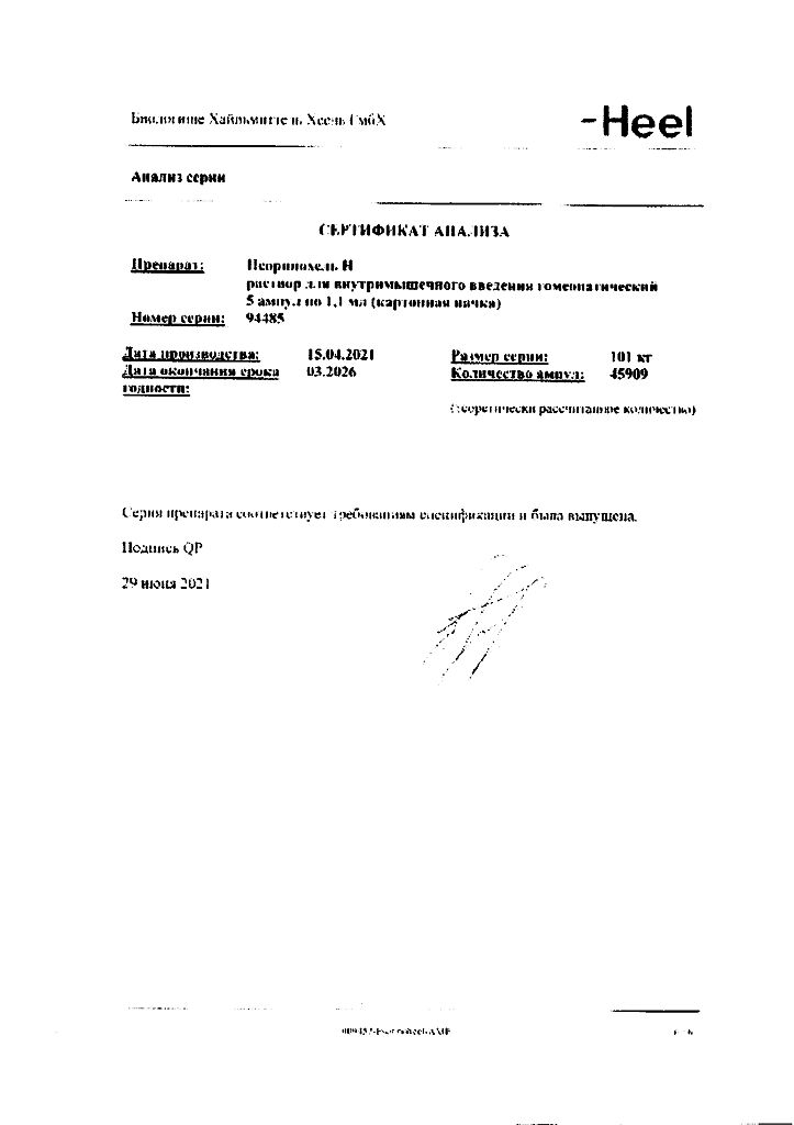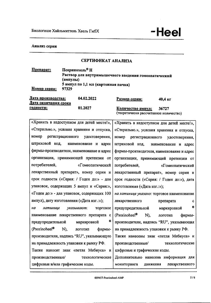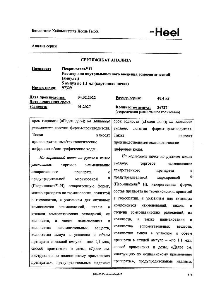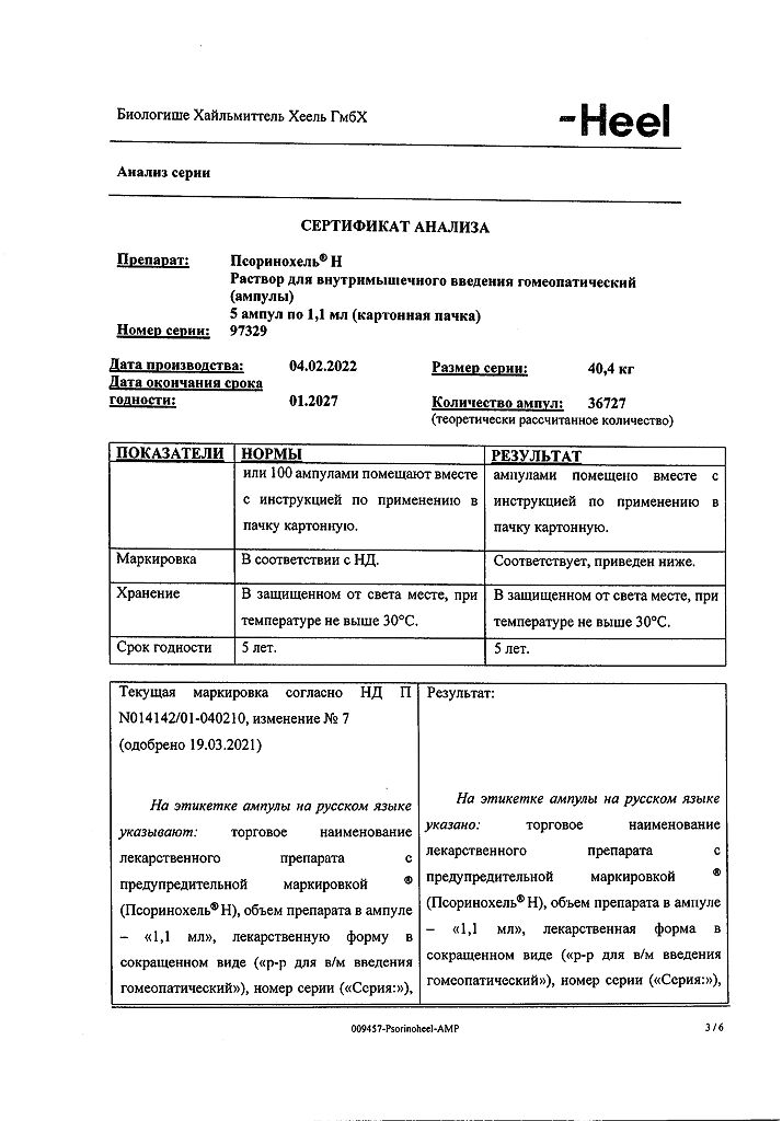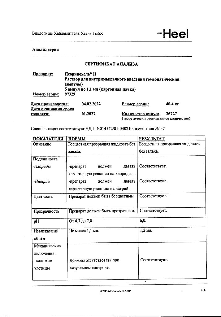 Псоринохель Н - комплексный гомеопатический препарат, его действие обусловлено входящими в состав компонентами: конституциональное дезинтоксикационное, биостимулирующее, дренажное (на матрикс), кератолитическое, репаративное, противоэкссудативное, противовоспалительное, иммуномодулирующее.