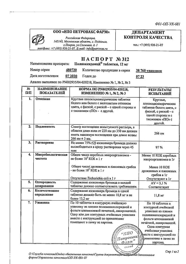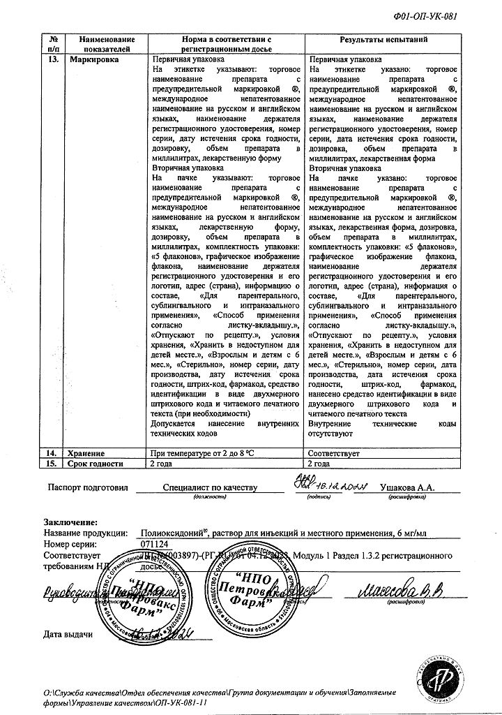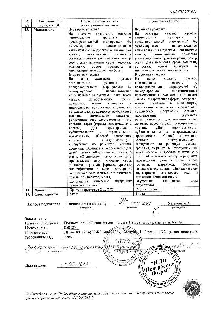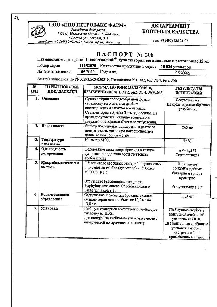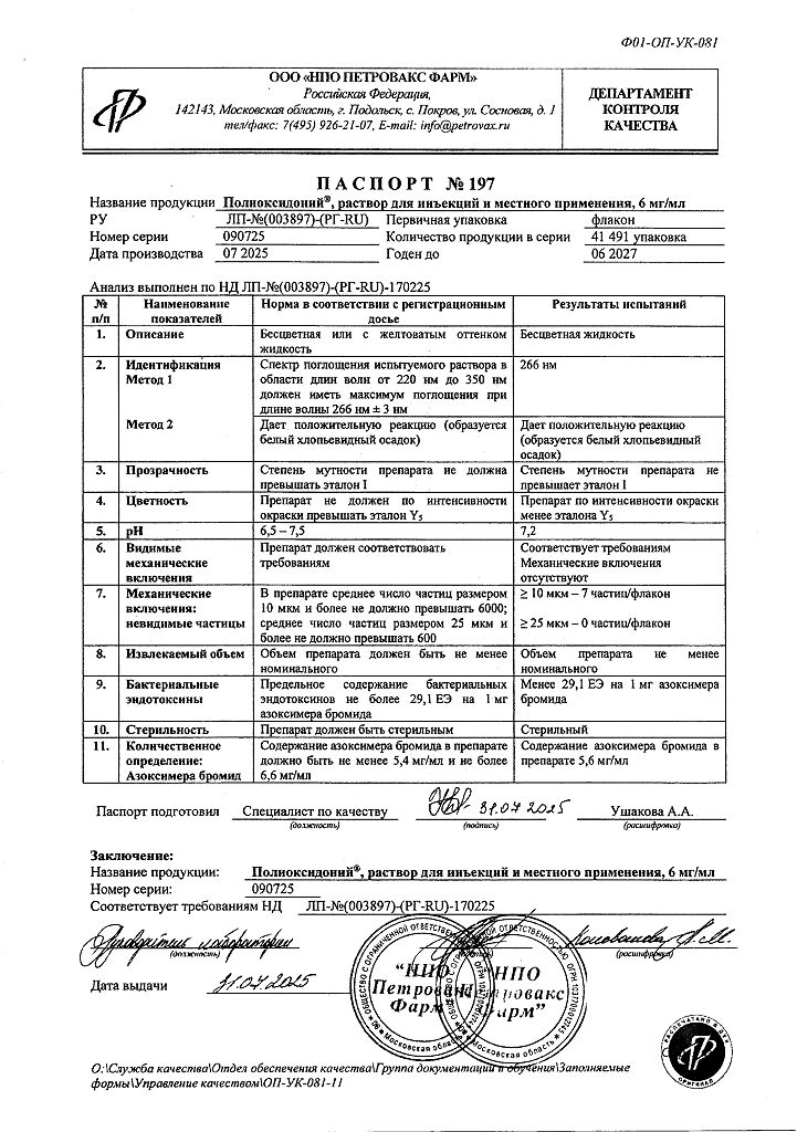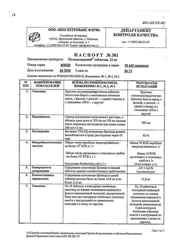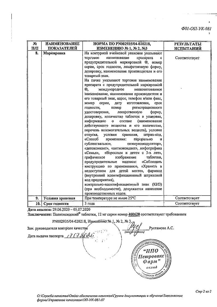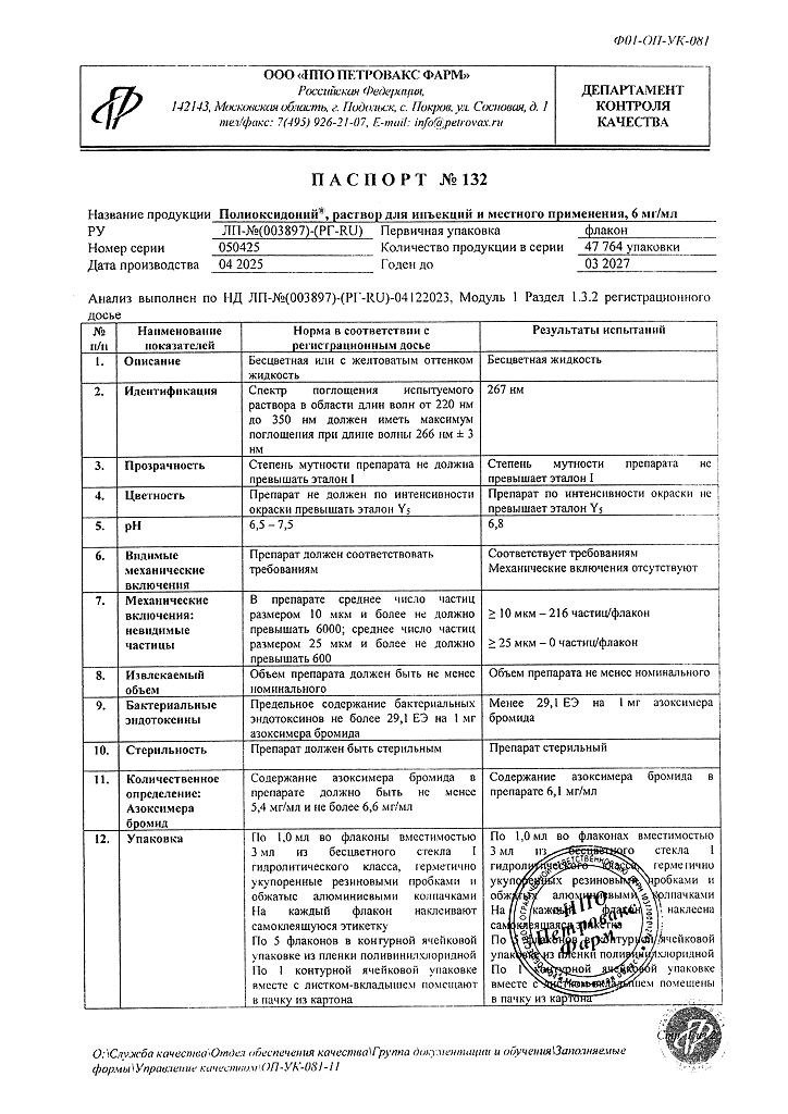 Полиоксидоний совместим с антибиотиками, противовирусными, противогрибковыми и антигистаминными препаратами, бронхолитиками, ГКС, цитостатиками.