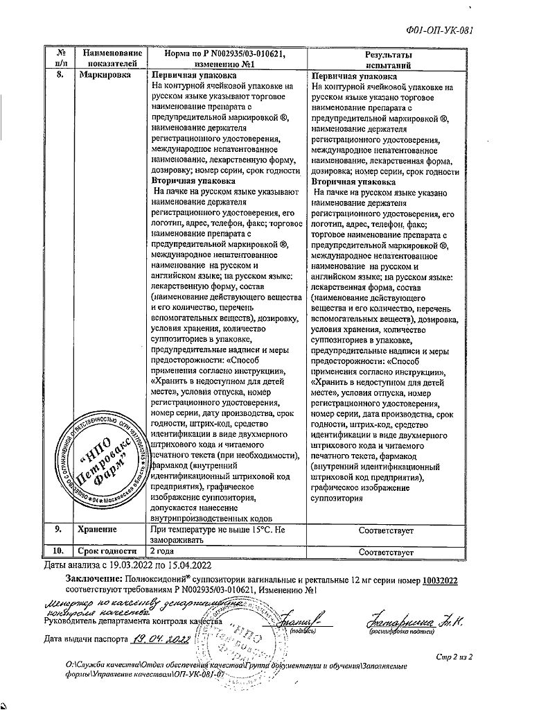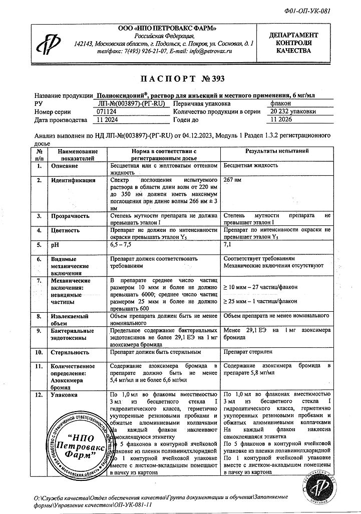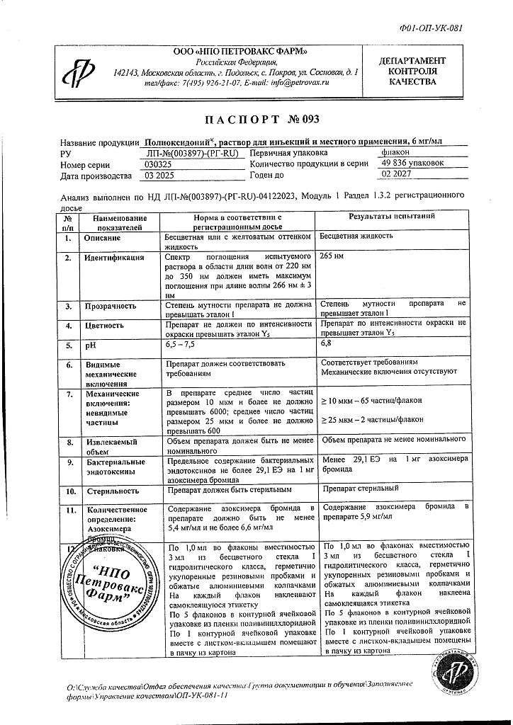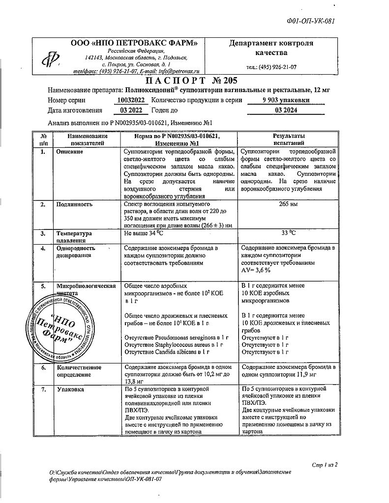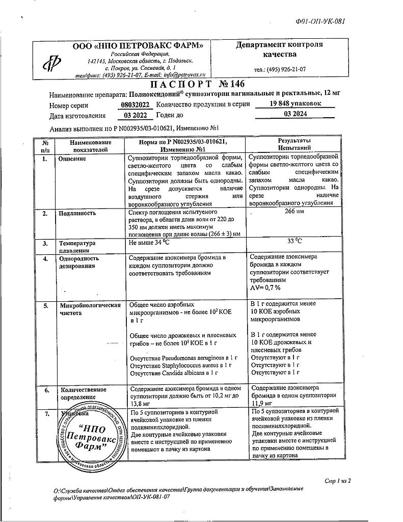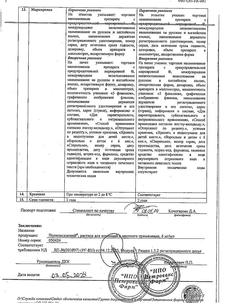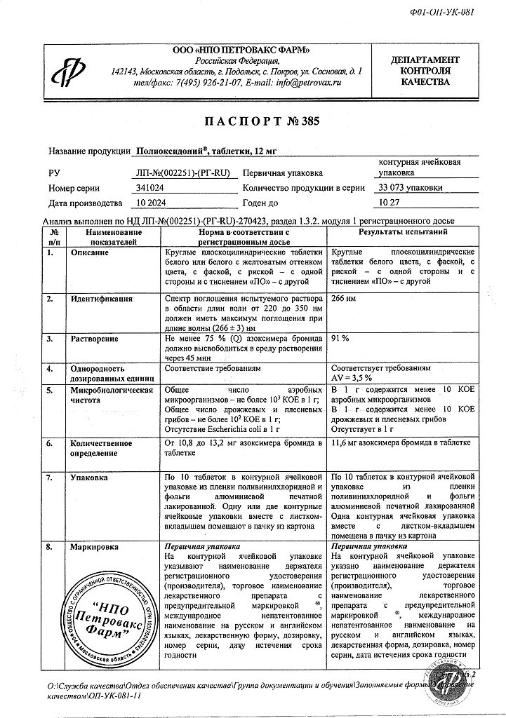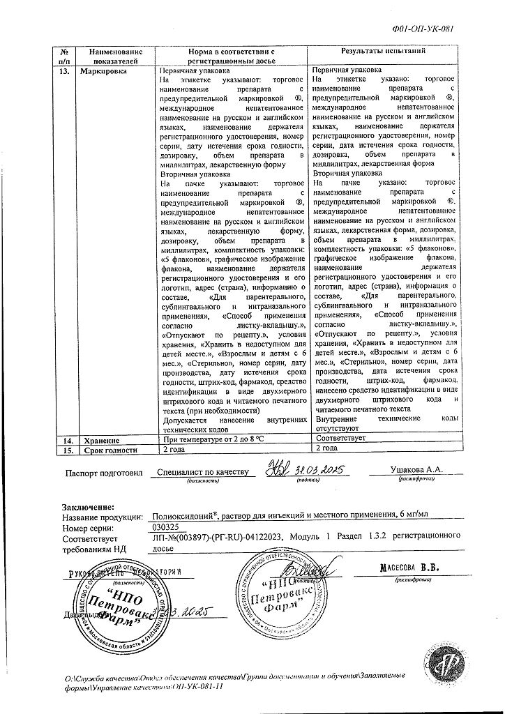 Полиоксидоний совместим с антибиотиками, противовирусными, противогрибковыми и антигистаминными препаратами, бронхолитиками, ГКС, цитостатиками.