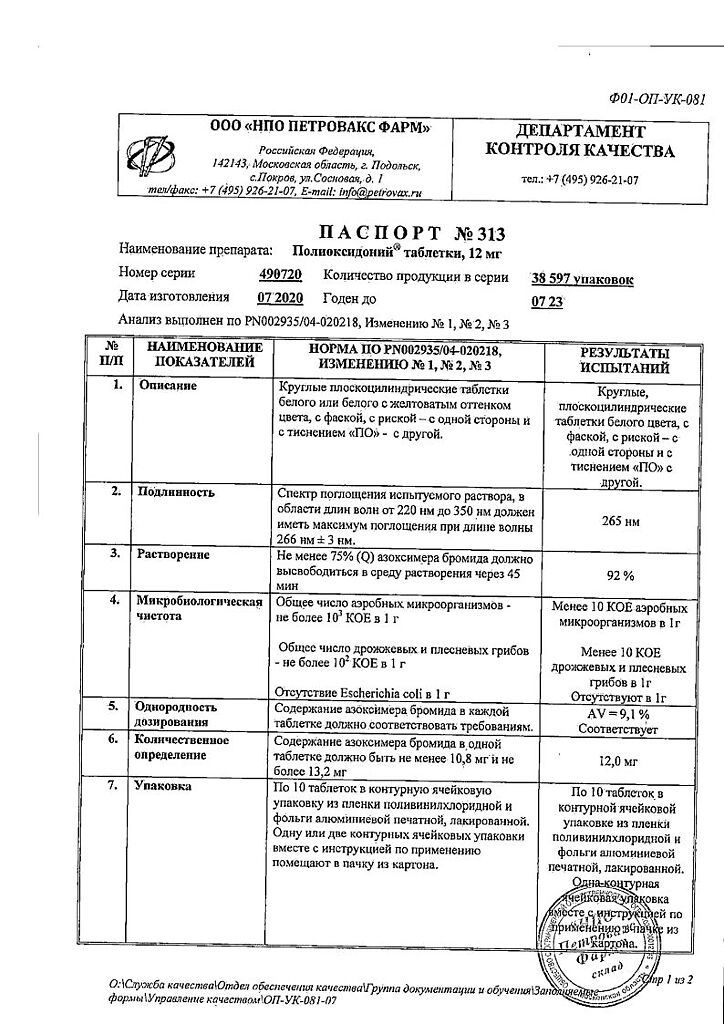 Полиоксидоний обладает иммуномодулирующим действием, увеличивает резистентность организма в отношении локальных и генерализованных инфекций. Основой механизма иммуномодулирующего действия Полиоксидония является прямое воздействие на фагоцитирующие клетки и естественные киллеры, также стимуляция антителообразования.