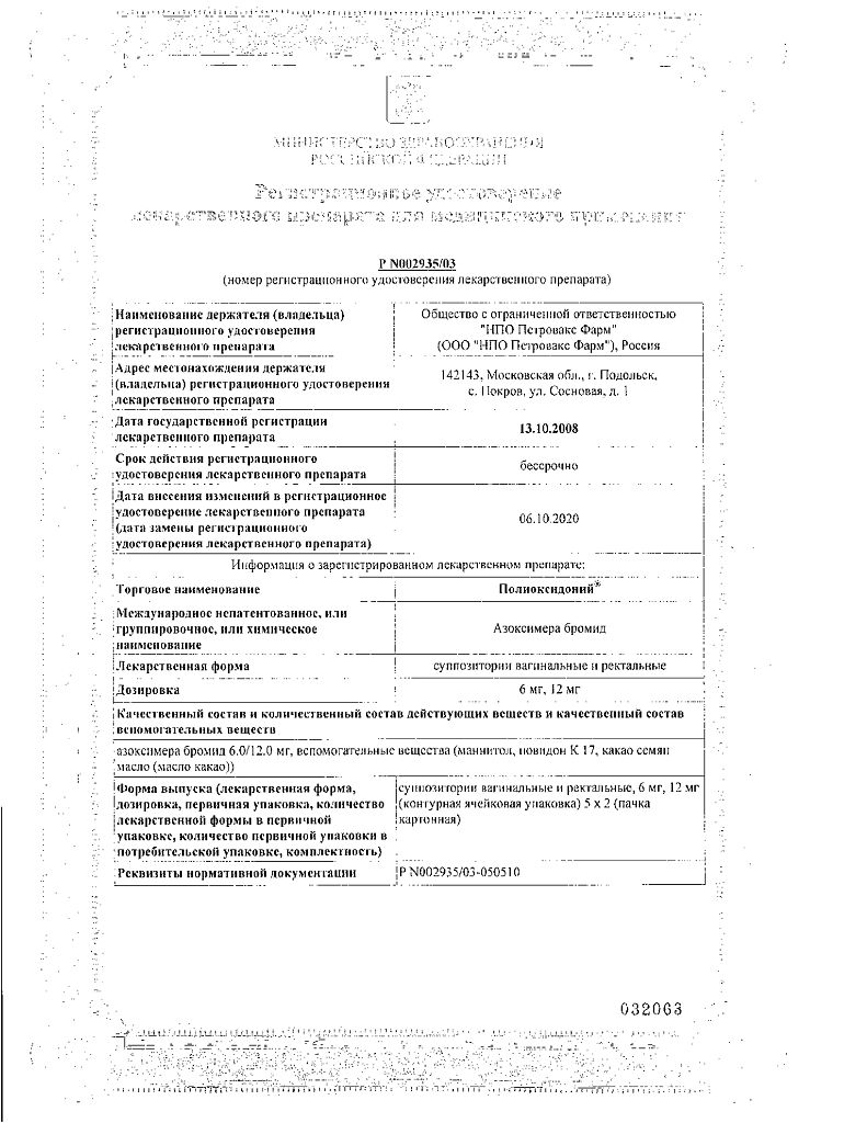 В настоящее время о случаях передозировки препарата Полиоксидоний не сообщалось.