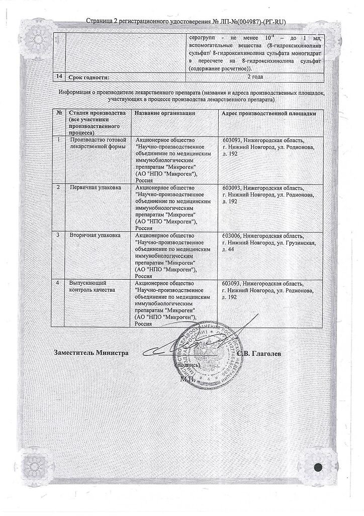 Производитель: Микроген НПО ФГУП, Россия
